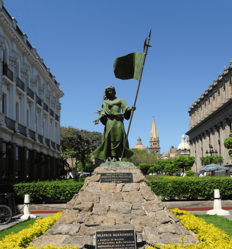 La tarde remota del 14 de febrero de 1542, un séquito de gachupines desorientados vagaba a la deriva de un valle inmenso, indiferente; un yermo de espinas cedido a la inclemencia de los lagartos y los zopilotes, sin otra certeza más que la del sol en el cielo. Era el valle de Atemajac, rodeado de cerros hasta el horizonte delimitado por los precipicios de huizaches y las cordilleras de mezquites de Huentitán.La travesía de aquellos gachupines no tenía ningún rumbo. Llevaban a cuestas, en el ánimo y la memoria, un éxodo de seis años continuos, pero lo que más les pesaba en el alma era el fracaso fundacional de su ciudad prematura. Hasta entonces, Guadalajara existía únicamente como un sinónimo de penitencia, una ciudad de polvo e ilusiones reprimidas, retenida apenas como una hoja a merced del viento.Fue Nuño Beltrán de Guzmán quien nombró Guadalajara a estas tierras, en 1530, cuando se había decidido a conquistar todo cuanto sus ojos veían hasta el horizonte, en un recorrido de masacres, saqueo y sangre. Lo hizo en honor a la ciudad del mismo nombre que se encontraba al otro lado del Atlántico, en España, y donde había nacido. Quizás no supo nunca que el nombre de Guadalajara provenía de los árabes a los que tanto despreciaban en su tierra, y que es el resultado de vocablos que significan "río de piedras", "río que corre entre piedras", o "valle de las fortalezas".La primera vez que Guadalajara fue fundada había sido en 1532, en Nochistlán, apenas habitada por 42 personas, y que no duró siquiera un año, pues la vida era imposible. La segunda ocasión, no más exitosa, se dio en los territorios de Tonalá, donde Guadalajara existió cerca de dos años, pero los constantes ataques de las poblaciones originarias dificultaban el crecimiento y el desarrollo del asentamiento. En el tercer intento, el séquito de españoles e indígenas se estableció en el territorio de Tlacotán, hoy parte del municipio de Ixtlahuacán del Río, y por un momento de la historia pareció que ahí sería la fundación definitiva, pues fue en esas tierras donde el rey Carlos V de España le concedió el título de "ciudad" a Guadalajara, y le asignó un escudo de armas.No obstante, la rebelión indígena de los caxcanes, liderados en parte por el temible Francisco Tenamaztle, imposibilitaba la estabilidad de la ciudad incipiente. Tenamaztle fue una de las principales figuras indígenas que comandaron el movimiento de disidencia conocido como la Guerra del Mixtón, que puso en jaque la relativa paz de la Nueva Galicia, pues los grupos indígenas habían decidido sublevarse contra años de crueldad de los españoles. La inestabilidad creciente obligó a los españoles a abandonar por nueva cuenta el sueño de su ciudad frustrada, y por cuarta ocasión se embarcaron en un largo peregrinaje para darle una nueva tierra a Guadalajara, esta metrópolis sin más leyes que las del sol y el viento. Los españoles se internaron en la inmensidad del Valle de Atemajac, hasta entonces inexplorado. Atemajac no contaba con asentamientos indígenas originarios, era un páramo espinoso que se extendía mucho más allá de donde les alcanzaba la imaginación, y donde tampoco parecía florecer la esperanza. Entre aquel grupo de españoles se encontraba Beatriz Hernández, que no se decepcionó con las condiciones del destino, ni ante la realidad de la ciudad peregrina. La tarde providencial del 14 de febrero de 1542, Beatriz Hernández se sobrepuso al desánimo, al hambre, a la vida y a la misma muerte, y con una resolución que parecía poner en orden al mundo entero, clamó ante los vientos contrariados de Atemajac la siguiente frase: “gente, aquí nos quedamos, el rey es mi gallo y aquí nos quedamos a las buenas o a las malas”.Así se hizo. Guadalajara se estableció a un costado del río San Juan de Dios, y cerca de trescientos habitantes, entre españoles e indígenas, se aferraron a la esperanza para que por primera vez en la vida la única posibilidad ya no fuera la incertidumbre. Poco a poco, como una flor indecisa, la ciudad comenzó a crecer. Las poblaciones indígenas se asentaron a "las afueras" de la ciudad, en los barrios de Analco, Mezquitán, Mexicaltzingo, mientras que los gachupines y la población más adinerada se estableció en lo que hoy conocemos como el Centro Histórico, con sus casonas grandes y palacios floridos. Guadalajara entonces era considerada más bien una ciudad de paso, y a lo largo de los años fue azotada por el hambre, las pestes y las epidemias que diezmaron a la población.No obstante, a la larga la determinación temeraria de Beatriz Hernández resultó ser la correcta, pues para 1560, dieciocho años después, Guadalajara fue nombrada capital del Reino de la Nueva Galicia. Aquel mismo año, ya había comenzado la edificación de la plaza de San Agustín, que después evolucionaría al Teatro Degollado, y doce meses más tarde el rey Felipe II de España ordenaría desde el otro lado del océano que se edificara el conjunto arquitectónico de la Catedral junto con su Plaza de Armas, a cargo de Martín Casillas, y que sería finalizada hasta 1618. Poco a poco Guadalajara fue cobrando mayor importancia dentro de la lógica de la Nueva Galicia. La llegada de órdenes franciscanas, agustinas, dominicas, mercedarias, jesuitas y carmelitas descalzas impulsó un florecimiento religioso y cultural en la ciudad, cuyo legado persiste al día de hoy. Creció el comercio, la seguridad y la estabilidad social, y con ello la población. La estabilidad permitió a su vez el desarrollo de las artes, pues hubo un repunte de arquitectos, filósofos, abogados, científicos, poetas, escritores y oradores.A finales de 1700, llegó a Guadalajara uno de sus personajes más importantes: Fray Antonio Alcalde. Tenía 70 años cuando pisó la ciudad por primera vez, y fallecería 21 años después. Estaba en el otoño de su vida, y en una edad suficiente para concluir que ya lo úni