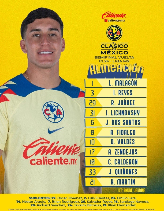 Deportes | América vs Chivas • Momentos Destacados • Semifinal Vuelta • Liga MX Chivas visita al América en el Estadio Azteca para definir el equipo que llegará a la Final y con un marcador global que se encuentra en ceros Sergio Alejandro Velázquez 18 de mayo de 2024 - 19:00 hs AMÉRICA1 ‒ 0CHIVAS Fin del partido Chivas no logra vencer al América y así las Águilas se posicionan en la Final para luchar por el bicampeonato. 90+4' Último cambio en el América Sale Julián Quiñones para dejar entrar a Brian Rodríguez. 90' Se agregan 7 minutos al segundo tiempo 89' Las Águilas realizan más cambios Salen: Jonathan dos Santos y Cristian Calderón. Entran: Santiago Naveda y Luis Fernando Fuentes. 86' Amarilla para Chivas Érick Gutiérrez recibe tarjeta amarilla tras una entrada muy cerca del área del Rebaño. 84' América neutraliza a las Chivas El Rebaño ya luce superado por el América, quienes no permiten el avance de Chivas y se mantienen esperando el espacio para buscar hacer más grande la ventaja. 75' América también con cambios Salen: Diego Valdés y Henry Martín. Entran: Richard Sánchez y Salvador Reyes. 73' Gago realiza modificaciones en Chivas Salen: Fernando González y Alan Mozo. Entran: Érick Gutiérrez y Carlos Cisneros. 69' Chivas no logra avanzar hasta el arco de Malagón El cuadro rojiblanco empieza a mostrar desesperación y no logran avanzar más allá de la mitad de cancha. 60' ¡Goooooooooooooooooooooool del América! Israel Reyes consigue la primera anotación del partido por medio de un remate de cabeza y complica la situación para Chivas. ¡Gooooool del América! �� ¡Gooooool del América! ¡Gooooool del América! �� ��América 1-0 Chivas �� �� EN VIVO: Canal 5 �� https://t.co/h7FgzHgQgB #ElClasicodeMexico #MegaFutbol pic.twitter.com/eYzXPzywca — TUDN MEX (@TUDNMEX) May 19, 2024 59' "Chicharito" se une al encuentro Sale Víctor "Pocho" Guzmán para dejar entrar a Javier "Chicharito" Hernández. 54' Beltrán en búsqueda del primero de Chivas Fernando Beltrán se posiciona frente al arco del América y realiza un disparo desde afuera del área que termina llevando el balón a un costado del palo. Chivas comienza a retomar el ataque poco a poco. No te creo el jugadón que se armó Chivas. Ojo al vs entre Alvarado y Fidalgo �� ��América 0-0 Chivas �� �� EN VIVO: Canal 5 �� https://t.co/h7FgzHgQgB #ElClasicodeMexico #MegaFutbol pic.twitter.com/WIlJdR3WqF — TUDN MEX (@TUDNMEX) May 19, 2024 49' América regresa ejerciendo presión en el área rojiblanca Las Águilas suman minutos dentro del área del Guadalajara, mientras que las Chivas batallan por conseguir tocar el balón. Es así como Quiñones consigue una buena posición para rematar, pero termina volando el balón. Nooooo, Quiñoneeeeeeeees. �� ��América 0-0 Chivas �� �� EN VIVO: Canal 5 �� https://t.co/h7FgzHgQgB #ElClasicodeMexico #MegaFutbol pic.twitter.com/sMCi9vzo57 — TUDN MEX (@TUDNMEX) May 19, 2024 Comienza el segundo tiempo Chivas regresa con un cambio; sale Pável Pérez para dejar entrar a Cade Cowell. Fin del primer tiempo 45' Se agregan 2 minutos al primer tiempo 43' América insiste en los últimos minutos del primer tiempo Los azulcremas utilizan los últimos minutos de la primera mitad para presionar en el área de Chivas, pero la defensa rojiblanca ha logrado rechazar el ataque. 38' Primera amarilla para Chivas Jesús Orozco Quiquete recibe la primera amonestación del partido para el Guadalajara. 31' Ambos conjuntos intercambian turno para atacar El ritmo del partido comienza a aumentar y se desarrolla un constante cambio de la presencia en el área de ambos equipos; Chivas y América toman su respectivo turno para ir en una nueva búsqueda de la primera anotación. 25' Reyes se pierde el primero para el América Tras un tiro de esquina en el área del Rebaño, Reyes hace un remate de cabeza que termina a un costado de la portería luego de no lograr definir bien. 20' El América se mantiene defendiendo Tras el remate del "Piojo" Alvarado, a Chivas le ha costado avanzar una vez más mientras que mantienen el balón, por su parte, el América toca el balón sólo para rechazar las llegadas del Rebaño. 14' ¡Alvarado se queda a nada del primer gol! El "Piojo" Alvarado aprovecha un error de Luis Malagón y realiza un disparo que termina impactando la parte alta del travesaño. Es así como Chivas se queda muy cerca de conseguir la primera anotación del partido. ¡Madre mía! La volea de Alvaradoooooooooo ������ ��América 0-0 Chivas �� �� EN VIVO: Canal 5 �� https://t.co/h7FgzHgQgB #ElClasicodeMexico #MegaFutbol pic.twitter.com/cuk14c79l6 — TUDN MEX (@TUDNMEX) May 19, 2024 11' América toma turno para atacar Las Águilas comienzan a tocar más el balón y generan breves acercamientos al área de Chivas en las que logran generar riesgo. 6' Chivas genera la primera oportunidad Ricardo Marín recibe un pase dentro del área de Chivas, pero no logra definir bien el remate para llevar el balón a la red y termina con facilidad en manos del arquero Luis Malagón. 3' Chivas toma la posesión en el arranque El Guadalajara toma la posesión del balón en los primeros minutos del partido, sin embargo, no logran avanzar más allá de la mitad de campo. Las Águilas, por su parte, tienen breves toques con los que impiden el avance del Rebaño. Comienza el partido El balón empieza a rodar sobre la cancha del Estadio Azteca para que Chivas y América inicien la búsqueda del pase a la Final del Clausura 2024. Alineación de Chivas Alineación de América Temas Chivas Club América Liga MX Futbol Mexicano clausura 2024 Lee También NFL: Sorpresiva derrota de los Eagles ante Giants Futbol hoy 10 de octubre de 2025: ¿Dónde ver los partidos en vivo? Mundial Sub-20: Chivas y Juárez se disputan el futuro del juvenil Diego Ochoa Atlas aprovecha la pausa para recuperar elementos clave