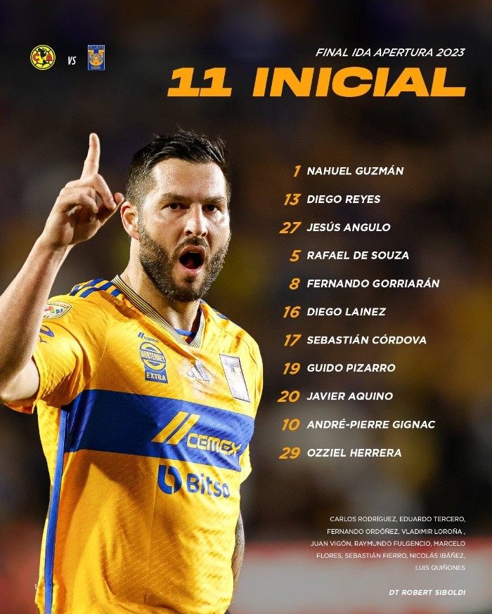 Deportes | América vs Tigres • Momentos destacados • Final de Vuelta • Liga MX Tras un partido de Ida que terminó en 1-1, las Águilas siguen soñando con la catorce y los Felinos con el bicampeonato, el resultado será definido en esta gran final Sergio Alejandro Velázquez 17 de diciembre de 2023 - 19:00 hs AMÉRICA3 ‒ 0TIGRES ¡Fin del partido y América alcanza los 14 títulos de la Liga MX! 120' ¡Gooooooooooooooooooool del América! Rodríguez marca el tercero para las Águilas. ¡¡¡G⚽️⚽️⚽️L!!!! ¡¡Selló el Triunfo!! En los últimos segundos del partido, Jonathan Rodríguez nos regaló este golazo que se convirtió en el 3-0 definitivo para el @ClubAmerica. Global 4-1.#LigaBBVAMX | #GranFinal | #Apertura2023 pic.twitter.com/wemGNgTdeg — Liga BBVA MX (@LigaBBVAMX) December 18, 2023 108' América hace cambios Lichnovsky y Quiñones dejan el partido e ingresan a la cancha Ramón Juárez y Leonardo Suárez. Comienza el segundo tiempo extra Fin del primer tiempo extra 105' Se agregan 2 minutos al primer tiempo extra 103' ¡Goooooooooooooooooool del América! Las Águilas marcan el segundo con un gol de Richard Sánchez. ¡¡¡G⚽️⚽️⚽️L!!!! ¡¡Al Ángulo!! Richard Sánchez recuperó el balón y sacó este derechazo para poner el 2-0 en el Azteca. El global está 3-1 a favor del @ClubAmerica.#LigaBBVAMX | #GranFinal | #Apertura2023 pic.twitter.com/vdkoLtVJyS — Liga BBVA MX (@LigaBBVAMX) December 18, 2023 97' Los Felinos ingresan un nuevo portero Gorriarán sale del campo para dejar entrar al portero Carlos Felipe Rodríguez. 95' ¡Tigres se queda sin portero! Nahuel Guzmán es expulsado del partido tras recibir una segunda tarjeta amarilla. 93' Amarilla para Nahuel Nahuel Guzmán recibe una amonestación tras hacer reclamos al árbitro. 91' ¡Gooooooooooooool del América! Quiñones marca el primero para las Águilas tras un rebote provocado por una atajada de Nahuel Guzmán. ¡¡¡G⚽️⚽️⚽️L!!!! En menos de un minuto del arranque del Tiempo Extra, Julian Quiñones anotó el primero para el @clubamerica. El global está 2-1.#LigaBBVAMX | #GranFinal | #Apertura2023 pic.twitter.com/tU6Vwlk2yb — Liga BBVA MX (@LigaBBVAMX) December 18, 2023 Comienza el primer tiempo extra Fin del segundo tiempo El partido se alargará con tiempo extra y ambos equipos continuarán buscando hacerse con el campeonato. 90+8' Cambios de último momento en América Se van Fuentes y Dos Santos para dejar entrar a Salvador Reyes y Richard Sánchez. 90' Se agregan 9 minutos al segundo tiempo 89' Nahuel vuelve a salvar a Tigres Nahuel Guzmán vuelve a frenar al América y todo apunta a que el partido podría irse a tiempo extra. 85' Los Tigres hacen ajustes tras la expulsión Javier Aquino deja la cancha para dar ingreso a Vladimir Loroña. 82' Se revisa jugada de expulsión en el VAR El árbitro revisa la jugada y decide mantener la expulsión sobre Tigres. 79' ¡Expulsión! Tigres se queda con 10 Fulgencio es expulsado tras un manotazo en la cara sobre Quiñones que se da en medio de un forcejeo. 76' América también hace cambios Layún y Zendejas dejan el campo para dejar entrar a Kevin Álvarez y Jonathan Rodríguez. El público aplaude la salida de Miguel Layún, quien podría estar despidiendose del futbol profesional. Así se despide un grande Los últimos momentos en la cancha de un ídolo del @ClubAmerica, @Miguel_layun se despide ante su afición. pic.twitter.com/lkSROGK3Pt — Liga BBVA MX (@LigaBBVAMX) December 18, 2023 75' Más cambios para Tigres Salen Lainez y Cordova para dar entrada a Fulgencio y Vigón. 70' Tigres impacta el poste Carioca dispara desde fuera del área e impacta en el palo y se vuelven a quedar muy cerca del primero. ¡¡POSTEEE!! ⚽️�� Carioca iba a hacer un golazo. ���� pic.twitter.com/k2Rms1weY6 — Liga BBVA MX (@LigaBBVAMX) December 18, 2023 63' América insiste por la anotación Las Águilas insisten por llevarse la primera anotación al mantener la presión en el área de Tigres. 62' Cambios en Tigres Se va Herrera para dejar entrar a Quiñones. 52' América domina la posesión Las Águilas comienzan a verse más cómodas en la cancha y Tigres, por su parte se muestra replegado. Comienza el segundo tiempo Fin del primer tiempo 45+1' Quiñones falla una clara anotación Tras recibir el balón para un remate de cabeza sin tener ninguna marcación y con Nahuel en el otro extremo del arco, Quiñones no logra concretar la jugada para dejar al América con ventaja. 45' Se agregan 3 minutos al primer tiempo 43' Ambos equipos dejan de buscar profundidad Tigres y América detienen el ritmo del partido al buscar no tomar riesgos previo al descanso. 36' Tigres suma dos amarillas Carioca se lleva una amonestación tras impactar el pecho de Henry Martín con el brazo. 33' Malagón detiene a Gignac Los porteros comienzan a protagonizar el partido con sus atajadas; Malagón detiene el ataque de Tigres con un remate de cabeza de Gignac. ¡¡Respondió Malagón!! ��⚽️ Gran atajada de Ángel Malagón para evitar el primero de Tigres. pic.twitter.com/8JGmcuYBYk — Liga BBVA MX (@LigaBBVAMX) December 18, 2023 31' Primera amarilla de Tigres Diego Reyes se lleva la primera amonestación para los Felinos. 27' Nahuel frena al América Un buen disparo de las Águilas es atajado por Nahuel Guzmán, quien salva a Tigres del primero del América. ¡¡NAHUEEEL!! ��⚽️ Gran reacción de @PatonGuzman para mantener el cero en su arco. �� pic.twitter.com/z1RfGnHDFZ — Liga BBVA MX (@LigaBBVAMX) December 18, 2023 26' Segunda amarilla para el América Miguel Layún se lleva una amarilla tras un encuentro con Ozziel Herrera. 22' Las Águilas se empiezan a enfocar en la defensa Tras una serie de continua de ataques de ambos bandos, el ritmo del partido comienza a bajar y comienza a enfocarse un poco más en el juego defensivo. 16' América y Tigres se mantienen intercambiando el balón La posesión del balón se mantiene camb