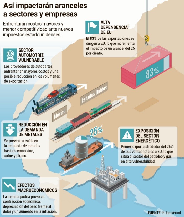 El conflicto arancelario entre México y Estados Unidos encendió alarmas en ambos lados de la frontera, pero la Presidenta Claudia Sheinbaum ha dejado abierta la posibilidad del diálogo para evitar una escalada comercial que afecte a las economías de ambas naciones. Una posibilidad que, según el secretario de Comercio de ese país, Larry Kudlow, podría tener un “punto medio”.Con la reciente imposición de aranceles del 25% por parte de Estados Unidos a las importaciones mexicanas y canadienses, y la respuesta de Canadá con medidas similares, el panorama comercial en Norteamérica ha entrado en una fase de incertidumbre.Desde su conferencia matutina, Sheinbaum subrayó que la postura de México no es de confrontación, sino de defensa de su economía y sus ciudadanos. Pero aunque anticipó represalias comerciales, también recalcó que la prioridad es llegar a un acuerdo negociado con Estados Unidos. “México debe defender a sus ciudadanos y empresas, pero sin cerrar el diálogo”, dijo para dejar en claro que su prioridad es una solución diplomática. En ese sentido, adelantó que este jueves buscará diálogo con su homólogo estadounidense para abonar a la estabilidad económica de la región.Por su parte, el primer ministro de Canadá, Justin Trudeau, optó por una respuesta más inmediata con aranceles que superan los 100 mil millones de dólares en represalia a las medidas estadounidenses. Sin embargo, también ha manifestado su interés en trabajar con México para enfrentar de manera conjunta los efectos de estas políticas proteccionistas. El impacto económico de estos aranceles ha sido inmediato. La American Chamber advirtió que las tensiones comerciales podrían derivar en una recesión para México, dada su alta dependencia de las exportaciones a Estados Unidos, que representan aproximadamente el 80% de su comercio exterior. La consultora Capital Economics, a través de su economista William Jackson, señaló que “México tiene menos flexibilidad económica que Canadá para ajustarse al golpe” y que, incluso si se logra un acuerdo, la constante amenaza de barreras comerciales afectará la confianza de los inversionistas y el crecimiento del Producto Interno Bruto.El peso mexicano ha mostrado volatilidad. Tras la imposición de aranceles, la moneda sufrió una depreciación inicial, aunque posteriormente mostró signos de recuperación tras las declaraciones del secretario Howard Lutnick, quien insinuó la posibilidad de revertir la medida en caso de que México y Canadá cumplan con ciertas condiciones del T-MEC. “El presidente Trump está escuchando y es razonable”, afirmó.En el ámbito empresarial, los efectos comienzan a sentirse con fuerza. El Consejo Nacional de la Industria Manufacturera de Exportación alertó que la medida “desprotege miles de empleos, desequilibrará las cadenas de suministro y generará incertidumbre ante el actual escenario de relocalización empresarial”. Pese al panorama complejo, expertos en comercio internacional como Timothy Wise muestran escepticismo sobre la sostenibilidad de estos aranceles. “No me parece plausible que los corporativos que rodean a Trump se vayan a sentar a permitir que destruya sus mercados externos”, comentó.FRASES“Esta medida es unilateral. Hemos platicado con el Gobierno de Estados Unidos. Durante este mes de pausa de los aranceles han estado trabajando el secretario de Relaciones Exteriores con el secretario del Departamento de Estado y se había llegado a una serie de acuerdos”.Claudia Sheinbaum, Presidenta de México“Hace cinco noches, las autoridades mexicanas, por la política arancelaria que les imponemos, nos entregaron a 29 de los mayores líderes de los cárteles de su país, algo que nunca había ocurrido. Nos quieren hacer felices”.Donald Trump, presidente de Estados Unidos.“Hoy, Estados Unidos puso en marcha una guerra comercial contra Canadá, su socio y aliado más cercano. Al mismo tiempo, habla de trabajar positivamente con Rusia, apaciguando a Vladimir Putin, un dictador mentiroso y asesino. Que alguien explique esto”.Justin Trudeau, primer ministro de Canadá.Tras la entrada en vigor del arancel del 25% a las exportaciones mexicanas y canadienses, impuesto por el presidente Donald Trump, la Presidenta Claudia Sheinbaum Pardo calificó la medida como una “decisión unilateral” y anunció acciones en respuesta.En su conferencia matutina, Sheinbaum afirmó que su Gobierno aplicará “medidas arancelarias y no arancelarias” para proteger la economía nacional. Además, convocó a una asamblea pública en el Zócalo capitalino el próximo domingo 9 de marzo, donde informará sobre las estrategias implementadas.“No buscamos una confrontación económica”, enfatizó la Presidenta. Explicó que la prioridad es mantener el diálogo con Estados Unidos para fortalecer la integración económica, pero subrayó que México no permanecerá pasivo ante una medida que afecta gravemente a su sector productivo.A través de un mensaje en redes sociales, Sheinbaum llamó a la ciudadanía a mantener la calma y permanecer unida. “Es tiempo de unidad y defensa de la soberanía. Convoco a todos al Zócalo este domingo a las 12 del día para informar las acciones que llevaremos a cabo. Juntos saldremos adelante”, expresó.La Mandataria recordó que, en el último mes, su Gobierno ha intensificado operativos contra el tráfico de fentanilo y el crimen organizado, además de sostener reuniones bilaterales con Estados Unidos en materia de seguridad y comercio.Finalmente, Sheinbaum advirtió que la decisión de Trump no sólo impacta a México, sino también a empresas estadounidenses que dependen de la integración comercial con el país. “Este arancel no solo afecta a México, sino a nuestros pueblos y economías”, concluyó.Claudia Sheinbaum Pardo señaló que las medidas “arancelarias y no arancelarias” se darán a conocer el próximo domingo, dejando abierta 