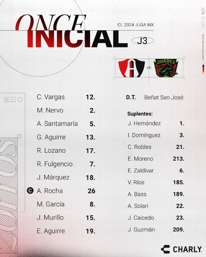 Deportes | Atlas vs Juárez • Momentos Destacados • Jornada 3 • Clausura 2024 • Liga MX Atlas se enfrenta a los Bravos de Juárez en la tercera fecha del Clausura 2024 con la gran necesidad de alcanzar su primera victoria del torneo Sergio Alejandro Velázquez 28 de enero de 2024 - 17:45 hs ATLAS2 ‒ 1JUÁREZ Fin del partido Atlas logra alcanzar la primera victoria del Clausura 2024. El primer tiempo mostró una buena actuación para los Zorros y dos tantos que, sin embargo, pudieron ser más por las oportunidades que se dieron a los rojinegros. Por otro lado, en el segundo tiempo se vio una bajada de ritmo en Atlas que dio lugar a muchas equivocaciones que le brindaron el espacio a Juárez para marcar un gol. Además, la expulsión de Mateo García y Jordy Caicedo dejó a los rojinegros con sólo nueve jugadores en cancha. Una victoria complicada para Atlas que terminó con un marcador de 2-1. 90+1' ¡Otra roja para Atlas! Jordy Caicedo es expulsado y Atlas revive la situación de la Jornada 1 ante Necaxa con sólo nueve hombres en cancha. 90' Se agregan 8 minutos al segundo tiempo 87' Atlas se defiende de la superioridad numérica de Juárez Los Bravos insisten en el ataque y los rojinegros intentan frenarlos para mantener la victoria. 83' Más cambios para Atlas Entra: Idekel Domínguez, Víctor Ríos. Sale: Augusto Solari, Jeremy Márquez. 76' ¡Expulsión para el Atlas! Atlas se queda con sólo 10 jugadores tras la expulsión de Mateo García. 72' Los Bravos no dejan de buscar el empate Ante un bajón en la intensidad del Atlas, los Bravos aprovechan para mantenerse en ataque. 71' Otra amarilla para Atlas Mateo García recibe una amonestación más para los rojinegros. 68' Beñat San José hace cambios en Atlas Entran: Jordy Caicedo, Eduardo Moreno. Salen: Eduardo Aguirre, Raymundo Fulgencio. 62' ¡Gooooooooooooooool de Juárez! Arturo Ortíz consigue el primer gol para los Bravos de Juárez. ⚽ ¡Gooooooooool de Bravos! ⚽ ¡Gooooooooool de Bravos! El Palermo se estrena como goleador y hace el descuento 2-1 EN VIVO: https://t.co/8pN0dzTgmz Afizzionados#Afizzionados | #LoNuestroEsElFutbol pic.twitter.com/duhuxHgahj — TUDN MEX (@TUDNMEX) January 29, 2024 58' Le llueven las amarillas al Atlas Hugo Nervo es amonestado tras un contacto. Atlas ya acumula tres amarillas sólo en los primeros minutos del segundo tiempo. 49' Otro amonestado en Atlas Augusto Solari se lleva la segunda amarilla al poco tiempo de la primera. 47' Primera amarilla para Atlas Gaddi Aguirre se lleva la primera amonestación del partido para los Zorros por una entrada cercana al área del Atlas. Comienza el segundo tiempo Fin del primer tiempo 45+3' Otra posible lesión en Atlas Santamaría se retira del campo por dolor en la rodilla, afortunadamente se retira trotando del campo. 45' Se agregan 4 minutos al primer tiempo 44' Raymundo Fulgencio muy cerca del tercero En una jugada individual, Fulgencio se abre camino entre la defensa de Juárez para disparar y quedar muy cerca del tercero. 34' ¡Gooooooooooooooooooool del Atlas! Augusto Solari le da el segundo al Atlas tras recibir el balón de Fulgencio. ��⚽�� ¡Gooooooool del Atlas! ��⚽�� ¡Gooooooool del Atlas! Solari hace el segundo tras una gran jugada ���� �� 2-0 �� �� EN VIVO: https://t.co/8pN0dzTgmz �� Afizzionados#Afizzionados | #LoNuestroEsElFutbol pic.twitter.com/FcLnfPzj6u — TUDN MEX (@TUDNMEX) January 29, 2024 31' Aguirre falla por segunda ocasión El "Mudo" vuelve a dejar ir una anotación que casi logra concretarse tras errores en el conjunto de los Bravos. 28' Los Zorros se mantienen atacando Juárez no ha conseguido hacerse del balón para generar jugadas y, desde la primera anotación, el Atlas no ha dejado de insistir por incrementar el marcador. 20' Camilo impide el empate Los Bravos comienzan a reaccionar y atacan en el área del Atlas con un remate de cabeza que Camilo Vargas detiene para frenar el empate. 14' El "Mudo" se queda cerca del doblete Un error en la portería de los Bravos deja cerca al Atlas del segundo con un balón que impacta al palo. 10' Posible lesión en las filas del Atlas Jhon Murillo luce adolorido por una posible lesión en la pierna que le hace salir del terreno de juego. Augusto Solari entra a cubrir el puesto. 7' ¡Gooooooooooooooooooool del Atlas! Tras un pase filtrado de Fulgencio, el "Mudo" Aguirre consigue el primero para los Zorros en el arranque del partido. ��⚽�� ¡Gooooooool del Atlas! ��⚽�� ¡Gooooooool del Atlas! Así abrió Aguirre el marcador ������ �� 1-0 �� �� EN VIVO: https://t.co/8pN0dzTgmz �� Afizzionados#Afizzionados | #LoNuestroEsElFutbol pic.twitter.com/8dHkmVtoay — TUDN MEX (@TUDNMEX) January 29, 2024 Comienza el partido El árbitro da el silbatazo y se empieza a disputar el encuentro entre los Bravos y los Zorros en el Estadio Jalisco. Alineación de Atlas Alineación de Juárez Temas Atlas Bravos de Juárez Liga MX Clausura 2024 Lee También Chivas Femenil sufre baja sensible para el cierre del torneo Dueño de Atlas y Santos, es absuelto del proceso penal promovido por el SAT Beca Benito Juárez: ¿Cuál es el último día para realizar el registro? Selección Mexicana Sub-20: ¿Dónde juegan y qué club aporta más futbolistas?