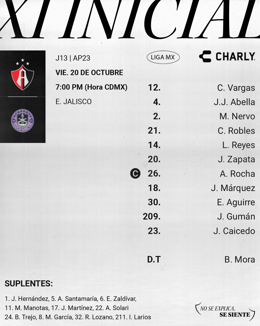 Deportes | Atlas vs Mazatlán • Momentos destacados • Jornada 13 • Liga MX Los rojinegros del Atlas reciben esta noche a Mazatlán en el Estadio Jalisco, en busca de obtener los tres puntos para acercarse a los puestos de liguilla Moisés Figueroa 20 de octubre de 2023 - 19:00 hs ATLAS1 ‒ 3MAZATLÁN Final del Partido Los rojinegros caen ante Mazatlán por marcador de 1-3 en el cancha del Estadio Jalisco y con esto suman tres derrotas consecutivas en la Liga MX. Muy temprano Mazatlán se fue arriba en el marcador con gol de Aké Loba. Minutos después Zapata logró empatar el juego con un buen gol. Sin embargo en otro error de la defensa de Atlas, nuevamente Aké Loba apareció para mandar el balón a las redes y marcar el segundo. Al final Madueña apareció para sentenciar el marcador. La Academia se queda con 15 puntos y comienza a complicarse un poco en la fase final del torneo. El próximo 24 de octubre se enfrenta a León en un partido pendiente que corresponde a la jornada 11. 90'+7 ¡Goooooooooooooooooooooooool de Mazatlán! Madueña marca el tercero para Mazatlán en una terrible marca del Atlas. 90' Se agregan 9 minutos 90' ¡Roja para el Atlas! Rocha se va expulsado tras una fuerte entrada. 86' ¡El Atlas no logra marcar! Trejo dispara al arco y el balón pasa a un lado del poste dejando pasar una gran oportunidad. 70' Intenta el Atlas Reyes manda un buen centro para que Larios remate de cabeza, pero el balón pasa por encima del arco. 61' ¡Camilo salva al Atlas! Bárcenas se anima y prueba con un disparo fuera del área que Camilo desvía de manera espectacular. 60' ¡Otra vez cerca el Atlas! Aguirre saca un tiro-centro que González saca muy bien a mano cambiada y evita el gol del rojinegro. 56' ¡Lo que falló Atlas! La defensiva de Mazatlán le pone un regalo a Caicedo frente al portero y manda el balón a un costado de la portería. Inicia el segundo tiempo El árbitro Ortiz hace sonar su silbato y comienza la parte complementaria en el Estadio Jalisco. 45' Se agregan 6 minutos Atlas se va al descanso con el marcador abajo de 1-2, luego de recibir dos goles tras errores defensivos. 38' ¡Cerca el Atlas! Rocha no logra marcar luego de un balón rechazado por González dentro del área. 31' ¡Goooooooooooooooooooooooooooool de Mazatlán! Aké Loba marca el segundo gol para su equipo en un tiro de esquina tras una pésima marca de la defensa rojinegra. ¡¡¡G⚽⚽⚽L!!! ¡Otra vez Aké Loba! ¡¡Doblete del delantero marfileño!!#LigaBBVAMX | #Apertura2023 | #NoTeLoPierdas pic.twitter.com/jeBCXLiL24 — Liga BBVA MX (@LigaBBVAMX) October 21, 2023 27' El árbitro le quita la roja al jugador de Mazatlán El árbitro va al VAR y decide quitarle la tarjeta al defensor de Mazatlán. 26' ¡Roja para Mazatlán! Díaz se va el expulsado tras cometer una falta a Caicedo. 22' ¡Goooooooooooooooooooooooooooool del Atlas! Zapata empata el juego tras un buen centro de Guzmán y una excelente definición por parte del mediocampista dentro del área. ¡¡¡G⚽⚽⚽L!!! ¡¡Se empató el partido!! Juan Zapata entró a segundo poste y definió de gran manera.#LigaBBVAMX | #Apertura2023 | #NoTeLoPierdas pic.twitter.com/dYWvG2kskQ — Liga BBVA MX (@LigaBBVAMX) October 21, 2023 20' El rojinegro presiona Nervo remata de cabeza tras un buen centro, pero no logra darle dirección y sale a las manos de González. 11' ¡Goooooooooooooooooooooooooool de Mazatlán! Aké Loba le gana a velocidad a la defensa rojinegra que no marca bien, y el delantero de Mazatlán no desaprovecha el balón que lo manda a las redes. ¡¡¡G⚽⚽⚽L!!! ¡¡Aké Loba anotó el primer gol del partido!! Los Cañoneros ya vencen a los Rojinegros.#LigaBBVAMX | #Apertura2023 | #NoTeLoPierdas pic.twitter.com/WSE4CzQvpY — Liga BBVA MX (@LigaBBVAMX) October 21, 2023 4' La primera del Atlas Reyes mandó un buen centro al área chica, pero Aguirre no logra conectar el balón y se pierde una gran oportunidad. Inicia el Partido El árbitro central hace sonar su silbato y comienza a rodar el balón en la cancha del Estadio Jalisco. Alineación de Atlas Así sale el conjunto de Atlas a la cancha: Temas Atlas Mazatlán FC Futbol Mexicano Liga MX Lee También Peso mexicano SALTA sobre el dólar al arranque de este jueves 9 de octubre Muere Miguel Ángel Russo, entrenador de Boca Juniors Futbol hoy 9 de octubre de 2025: ¿Dónde ver los partidos en vivo? Chivas Femenil sufre baja sensible para el cierre del torneo