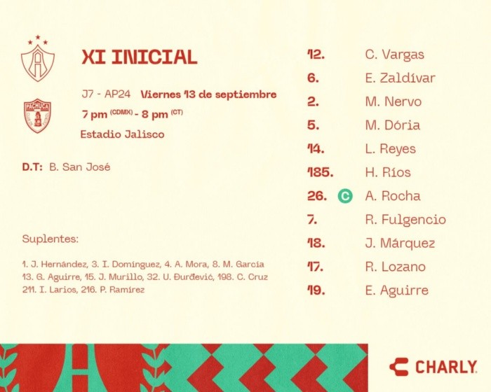 Deportes | Atlas vs Pachuca • Momentos Destacados • Jornada 7 • Apertura 2024 Los rojinegros se enfrentan esta noche a los Tuzos de Pachuca, en el Estadio Jalisco, en busca de obtener los tres puntos que los coloquen en los primeros lugares de la tabla general Moisés Figueroa 13 de septiembre de 2024 - 21:05 hs ATLAS2 ‒ 0PACHUCA Termina el partido Los rojinegros del Atlas se llevan el triunfo tras vencer a los Tuzos del Pachuca por marcador de 2-0. Los dirigidos por Beñat San José marcaron los dos goles del partido muy rápido. Al minuto 12 apareció Ríos para marcar, y al minuto 15 Jeremy Márquez marcó el segundo del partido. Pachuca sufrió con la expulsión de Alfonso González y tuvo muy pocas oportunidades de peligro de gol. Con este triunfo Atlas suma 14 puntos y se posiciona en el cuarto lugar de la tabla general. 90' + 4 ¡Perdona el Atlas! Rocha se pone mano a mano contra el portero Moreno quien tapa el balón con el pecho. 90' Se agregan 5 minutos 89' ¡Se salva el Atlas! Deossa sorprende al rojinegro en un tiro libre y el balón pasa rozando el poste de Camilo Vargas. 85' Baja la intensidad del juego Atlas se siente cómodo con un hombre de más y circula el balón por todo el campo, mientras que Pachuca no encuentra la forma de reaccionar. 81' ¡Cerca el rojinegro! Rocha se anima con un disparo dentro del área, pero el balón pasa por encima del arco. 60’ Atlas se adueña del balón El cuadro rojinegro aprovecha que tiene un hombre de más y se adueña del juego tocando el balón, mientras que Pachuca no reacciona. Inicia el segundo tiempo Santander hace sonar su silbato y se reanudan las acciones en el Estadio Jalisco. Termina el primer tiempo Atlas derrota por el momento a los Tuzos con goles de Ríos y Jeremy Márquez. 45 + 7 ¡Roja para Pachuca! Santander expulsa a Alfonso González tras un golpe con el pie en el rostro de Nervo. 45' Se agregan 8 minutos al primer tiempo 30' Se encienden las alarmas en Atlas Camilo Vargas es atendido tras sentir una molestia en la pierna izquierda; el arquero colombiano sigue en el juego tras ponerle un vendaje. 26' Pachuca busca reaccionar Después de 26 minutos, los Tuzos lograron generar su primera jugada de peligro con un un buen disparo de Faber Gil, pero con una mejor reacción de Camilo Vargas que detiene el balón. 25' Atlas domina el partido Atlas es dueño del juego y busca marcar el tercero, por su parte Pachuca no logra generar jugadas de peligro. 15' ¡Goooooooooooooooooooooooooooooooooool del Atlas! Jeremy Márquez aprovecha un rebote dentro del área grande y saca un disparo potente para marcar el segundo. ¡Disfrútenlo, ROJINEGROS! Así fue el gol de Márquez aprovechando el rechazo del rival. pic.twitter.com/ElBcqnh3EB — Liga BBVA MX (@LigaBBVAMX) September 14, 2024 12' ¡Gooooooooooooooooooooooooooooooooooooooool del Atlas! Fulgencio manda un centro por la banda derecha y Ríos se levanta para conectar el balón y ponerlo en el ángulo de la portería. ¡Gol de estreno! Luego de una gran jugada de Raymundo Fulgencio, así fue el primer gol del joven Víctor Ríos pic.twitter.com/m5SiEhUIKm — Liga BBVA MX (@LigaBBVAMX) September 14, 2024 Inicia el partido El árbitro central hace sonar su silbato y ya rueda el balón en la cancha del Estadio Jalisco. Alineación del Atlas Este es el once del conjunto rojinegro: Temas Liga MX apertura 2024 Atlas Tuzos de Pachuca Lee También Chivas y América calientan en redes el Clásico Nacional de la Fecha FIFA Chivas Femenil sufre baja sensible para el cierre del torneo Dueño de Atlas y Santos, es absuelto del proceso penal promovido por el SAT Selección Mexicana Sub-20: ¿Dónde juegan y qué club aporta más futbolistas?