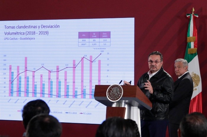 Pese a la reducción en el robo de hidrocarburos anunciado ayer por el Gobierno federal, la producción y el volumen de venta de las gasolinas tuvieron el peor registro desde 2014.Por una parte, Petróleos Mexicanos (Pemex) presumió que tras el operativo iniciado en enero de 2019, el año pasado se registró una reducción de 91% en el “huachicoleo” en el país, por lo que reportó un ahorro de 56 mil millones de pesos.Sin embargo, entre enero y noviembre de 2019 se produjeron 202.7 mil barriles diarios de gasolinas, en promedio, cuando 2018 cerró con una media de 207.1 mil barriles.También hubo una disminución en el volumen de las ventas internas de productos petrolíferos en el periodo mencionado. De acuerdo con las estadísticas de Pemex, el promedio del volumen de venta de las gasolinas Magna y Premium en 2019 fue de 719 mil barriles diarios. En comparación, un año antes se documentaron 763.7 mil barriles (en 2014, la cifra diaria era de 776.3 mil barriles).Lo anterior también significó un menor valor en los ingresos. Entre enero y noviembre de 2019 sumaban 411 mil 178 millones de pesos, mientras 2018 cerró con 512 mil 675 millones de pesos (los datos excluyen el Impuesto Especial sobre Productos y Servicios, el Impuesto al Valor Agregado y la comisión del distribuidor, precisó Pemex).Durante la conferencia de prensa de ayer del Presidente Andrés Manuel López Obrador se confirmó que las autoridades judiciales han sentenciado a 562 personas por el robo de hidrocarburos, a un año de la estrategia del Gobierno federal contra el “huachicol” (que incluso provocó desabasto en diversos Estados como Jalisco), informó el director de Pemex, Octavio Romero Oropeza.Explicó los avances y los resultados contra el robo de combustibles, en donde destacó que se han abierto diversos procedimientos judiciales ante la Fiscalía General de la República.Apuntó que la Unidad de Inteligencia Financiera (UIF) ya bloqueó 811 cuentas bancarias, con un monto congelado de 466.6 millones de pesos y 28 mil dólares, así como 21 denuncias ante la Fiscalía por “lavado” de dinero.Por su parte, López Obrador aceptó que hay un aumento en el número de tomas clandestinas en ductos de gas. Una de las hipótesis es que se busca reducir la capacidad operativa de Pemex. “Sobre el aumento de las tomas clandestinas de gas es un enigma. Hay una hipótesis: que sean los competidores de Pemex los que lleven a cabo estas acciones para reducir la capacidad de distribución de Pemex… no sólo es el robo, sino debilitar la capacidad operativa de Pemex”.Tras cumplirse un año de la implementación de la estrategia del combate al robo de combustibles en México, se logró una reducción de 91% en ese delito, por lo que reportan un ahorro de 56 mil millones de pesos.Para evitar el robo de combustibles, en los primeros días del año pasado el Gobierno de Andrés Manuel López Obrador implementó un cambio en el modelo de suministro de Pemex, que conllevó al cierre de ductos y la transportación del hidrocarburo por camiones cisterna, conocidos como pipas.Esta modificación provocó problemas de abastecimiento en al menos 10 Estados y en la Ciudad de México, así como el cierre de estaciones de servicio y filas de varias horas en las gasolineras.Ayer, en conferencia de prensa, el titular de Petróleos Mexicanos (Pemex), Octavio Romero, presentó los avances del plan conjunto para combatir el robo de hidrocarburos y afirmó que “si bien no hay reducción en el número de tomas clandestinas, sí existió un menor volumen de hidrocarburo sustraído ilegalmente”.Explicó que en 2012, el robo de combustible era equivalente a cuatro millones de barriles. Y en 2018 ascendió a 20 millones de barriles al año, “pero en la actual administración ha disminuido un 91% el robo”.Destacó que la pérdida actual es de cinco mil barriles al día, lo que equivale a poco más de 1.8 millones de barriles al año.En cuanto al gas licuado del petróleo, dijo que bajó en 51% este delito, lo que significó un ahorro de mil 900 millones de pesos.Entre otros resultados del plan, en 2019 se registraron 562 personas que fueron sentenciadas por el robo de combustible y se aplicaron multas por tres millones de pesos.Señaló que en este plan conjunto, en el que participaron los agentes de la Secretaría de la Defensa Nacional y la Marina, tiene como objetivo reducir la desviación de hasta dos mil 500 barriles diarios en 2020. Además de prohibir las válvulas, instalar 175 kilómetros de revestimiento e incrementar las alertas y los sistemas de medición en mil 300 kilómetros de ductos.El “huachicoleo” es el término que refiere la extracción ilegal del combustible que se transporta por la red y que ocasionaba pérdidas millonarias.Antes de venderlo, las personas que se dedican a esta actividad combinan el hidrocarburo con agua o una especie de aceite para hacerlo rendir y así obtener mayores ganancias.Octavio Romero señaló hubo más de 13 mil tomas clandestinas inhabilitadas, se aseguraron 8.3 millones de litros de combustible y se instalaron más de 308 sistemas de alerta.Añadió que, por parte de la Unidad de Inteligencia Financiera (UIF), se detectaron 20 casos de lavado de dinero, se bloquearon 240 personas y 811 cuentas.CLAVESReconocimiento. El director de Petróleos Mexicanos, Octavio Romero, informó que se han detectado 149 kilómetros de ductos conflictivos y se han incrementado las tomas clandestinas de combustibles porque los presuntos delincuentes migran a otros puntos, conforme aumenta el control sobre las redes. “Tenemos 149 kilómetros detectados como los más conflictivos y donde están actualmente más de 95% de las tomas clandestinas”.Operativo. Apuntó que, con la vigilancia mediante el despliegue de elementos de la Secretaría de la Defensa y de la Guardia Nacional, se logró reducir significativamente el robo de carburantes, pero quienes cometen este delito van migrando haci