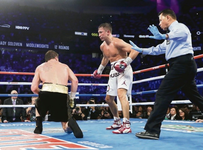 Saúl “Canelo” Álvarez tenía en sus manos la oportunidad de borrar para siempre cualquiera de las críticas que giraban en torno a su carrera boxística, sin embargo hoy, con su polémico triunfo ante Gennady Golovkin, el jalisciense parece haber perpetuado las dudas que lo han acompañado a lo largo de su carrera profesional.Los jueces en Las Vegas vieron ganar a “Canelo” por la vía de la decisión mayoritaria, pero el desempeño del púgil jalisciense sobre el encordado difícilmente hubiera hecho que se antojara un resultado similar en las tarjetas.Quizá en el inicio del combate se pudiera haber pensado algo similar, pues el segundo round fue un asalto en donde “GGG” sufrió el mayor castigo debido a las combinaciones de “Canelo”; un upper tremendo que se estrelló en la humanidad del kazajo hizo que el público se levantara de sus lugares, sin embargo después de esto Saúl jamás volvió a imponer condiciones de manera tan notable.Si bien los rounds siguientes fueron difíciles de calificar por lo cerrado del combate, “GGG” daba la impresión de ser el mejor sobre el ring por el dominio tan marcado que logró imponer con los jabs que tiró a su antojo y que se impactaron cualquier cantidad de veces sobre el rostro del jalisciense.Así como en la primera pelea, la defensa de “Canelo” fue su mejor aliada, pues durante gran parte del combate pudo esquivar con relativa facilidad los embates del que hasta ese momento era campeón mundial de los pesos medianos. Pasados los episodios la condición física parecía pasarle factura a un “Canelo” que fue errático en sus golpes, ya que en diversas ocasiones tiró los puños al aire con más intención que claridad.Los últimos episodios parecían anunciar la derrota del jalisciense, ya que Saúl llegó a la recta final con sangre en la nariz y con la obligación de ir hacia adelante para agenciarse los asaltos restantes.Quizá el último round fue el que más fielmente describió lo que pasó en el combate, ya que el ímpetu de “Canelo” resultó contraproducente y en un intento de impactar al kazajo terminó por resbalar e irse de rodillas a la lona.Al final, una de las tarjetas dictaminó 114-114 y las otras dos le dieron el triunfo a “Canelo” por 115-113. Ahora el jalisciense es el mandamás de los pesos medianos y luce tres nuevos campeonatos mundiales en su haber, pero lastimosamente parece que aún no da el golpe de autoridad que siempre se le ha pedido en su carrera.Si el año pasado desde mi punto de vista le robaron la pelea, este año se le regalaron según mi puntuación; mi tarjeta fue de 112 a 116, pero en lo que vi muy fuerte a “Canelo” fue en su condición física. Le vi mucha valentía y un corazón gigante que nunca le había visto en ninguna pelea anterior. La forma en la que asimiló el castigo también fue impresionante, porque los golpes de poder de “GGG” los asimiló todos y eso habla de una condición física de altísimo nivel. Por desgracia para él jamás cambió de estrategia, desarrolló una pelea monorrítmica.Su mejor roundEl segundo asalto fue sin duda el mejor para “Canelo”, pues en él conectó sus mejores golpes del combate e hizo que todos se ilusionaran con una posible guerra sobre el encordado. El jalisciense sorprendió con un upper que se estrelló pleno en Golovkin y que hizo estallar la T-Mobile Arena de Las Vegas. Buen trabajo de esquinaLos golpes de poder de “GGG” pasaron factura pronto al rostro de “Canelo”, ya que desde temprano en la pelea la ceja izquierda de Álvarez se abrió debido a un impacto. Por fortuna para el tapatío, su esquina realizó un buen trabajo para evitar que la sangre brotara por su rostro.De rodillasEl último asalto fue desesperante para los aficionados de Saúl “Canelo” Álvarez, ya que el púgil jalisciense no encontraba claridad para conectar de lleno a su rival y en uno de sus intentos por ir al frente terminó por resbalar e irse de rodillas a la lona.
