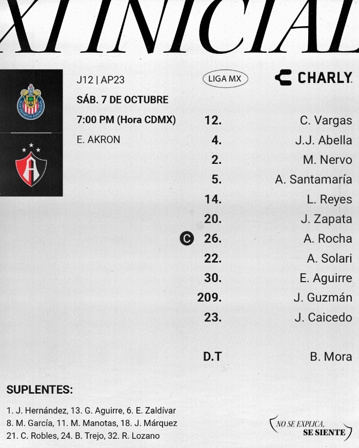 Deportes | Chivas vs Atlas • Momentos destacados • Jornada 12 • Liga MX Chivas y Atlas se enfrentan en una edición más del Clásico Tapatío, en donde ambos equipos buscarán llevarse los tres puntos que los ayude a posicionarse en los primeros lugares de la tabla Moisés Figueroa 7 de octubre de 2023 - 20:00 hs CHIVAS4 ‒ 1ATLAS Final del Partido El Guadalajara se lleva el Clásico Tapatío tras vencer a los rojinegros con marcador de 4-1. El Rebaño regresa a la senda del triunfo en una semana llena de indisciplinas por parte de algunos jugadores. Con dos goles de Marín, uno de Beltrán y otro más de Alvarado. Aldo Rocha marcó un golazo para los rojinegros que muy poco le sirvió. Con este triunfo, el cuadro rojiblanco es quinto lugar momentáneamente con 18 puntos, mientras que los zorros en la posición 9 con 15 puntos. 90+2 ¡Goooooooooooooooooooooooooool de Chivas! Alvarado engaña a Camilo Vargas y el Guadalajara ya golea al rojinegro. ¡Goool de las Chivas! Roberto Alvarado marca desde la vía del penalti.#MásAcciónMásDiversión #ChivasvsAtlas #SábadoSagrado @calientesports te presenta los mejores momentos mientras apuestas y ganas en #LigaMX https://t.co/UvZD9hks6G pic.twitter.com/6rM4hPwHK0 — TV Azteca Deportes (@AztecaDeportes) October 8, 2023 90+1 ¡Penal para Chivas! Alvarado es derribado dentro del área y el árbitro marca penal. 84' ¡Goooooooooooooooooooooooooooool de Chivas! Alvarado manda un pase largo Marín que lo deja solo frente a la portería para vencer a Camilo Vargas. ¡Goool de las Chivas! Doblete de Ricardo Marín para sentenciar el juego.#MásAcciónMásDiversión #ChivasvsAtlas #SábadoSagrado @calientesports te presenta los mejores momentos mientras apuestas y ganas en #LigaMX https://t.co/UvZD9hkZWe EN VIVO: https://t.co/1e18mTpuyz pic.twitter.com/5vb7qzKhGN — TV Azteca Deportes (@AztecaDeportes) October 8, 2023 77' Lo intenta el Atlas Reyes saca un disparo de larga distancia y balón pasó al lado de la portería tras un desvío de la defensa de Chivas. 75' El rojinegro busca el empate Atlas se va con todo al ataque en busca del empate; Chivas se defiende de buena manera. 68' Cambio de Atlas Trejo entra al terreno de juego tras la dura lesión de Lozano. 65' ¡Se encienden las alarmas en Atlas! Brian Lozano sufre un dolorosa lesión en la rodilla. 62' ¡Goooooooooooooooooooooooooool de Chivas! Víctor Guzmán pone un gran centro a Marín quien no perdona y remata de cabeza para mandar el balón a las redes. ¡Goool de las Chivas! Ricardo Marín le devuelve la ventaja al 'Rebaño'.#MásAcciónMásDiversión #ChivasvsAtlas #SábadoSagrado @calientesports te presenta los mejores momentos mientras apuestas y ganas en #LigaMX https://t.co/UvZD9hks6G EN VIVO: https://t.co/1e18mToWJ1 pic.twitter.com/vitm4Gjot0 — TV Azteca Deportes (@AztecaDeportes) October 8, 2023 55' ¡Perdona Chivas! Brizuela desperdició una jugada que era de gol al mandar el balón por un costado del arco cuando estaba solo. ¡Se salva el Atlas! Remate de Brizuela que se va por un costado.#MásAcciónMásDiversión #ChivasvsAtlas #SábadoSagrado �� @calientesports te presenta los mejores momentos mientras apuestas y ganas en #LigaMX https://t.co/UvZD9hks6G �� EN VIVO: https://t.co/1e18mToWJ1 pic.twitter.com/id3SEL9mqB — TV Azteca Deportes (@AztecaDeportes) October 8, 2023 50' Avisa el Guadalajara Alvarado saca un disparo tras un gran recorte, pero Camilo Vargas rechaza el balón con ambas manos. ¡Lo intenta Chivas! Tiro de Alvarado que detiene Camilo en el fondo.#MásAcciónMásDiversión #ChivasvsAtlas #SábadoSagrado �� @calientesports te presenta los mejores momentos mientras apuestas y ganas en #LigaMX https://t.co/UvZD9hks6G �� EN VIVO: https://t.co/1e18mToWJ1 pic.twitter.com/PJKgPcvKZ3 — TV Azteca Deportes (@AztecaDeportes) October 8, 2023 Comienza el segundo tiempo Se reanudan las acciones en el Estadio AKRON; ambos equipos salen a la cancha con los mismos 11 jugadores. Final del primer tiempo Chivas y Atlas se van al descanso con el marcador 1-1 en un gran primer tiempo lleno de intensidad. 45' Se agregan 8 minutos al primer tiempo 43' ¡Gooooooooooooooooooooooooool del Atlas! Aldo Rocha hace un golazo tras prender el balón de bote pronto y poniéndolo en el ángulo de la portería de Chivas. ¡Golaaazooo del Atlas! Aldo Rocha empata el partido antes del descanso.#MásAcciónMásDiversión #ChivasvsAtlas #SábadoSagrado �� @calientesports te presenta los mejores momentos mientras apuestas y ganas en #LigaMX https://t.co/UvZD9hks6G �� EN VIVO: https://t.co/1e18mToWJ1 pic.twitter.com/fnAzYr6nG8 — TV Azteca Deportes (@AztecaDeportes) October 8, 2023 35' Dura entrada contra Alvarado Anderson Santamaría hace una dura entrada contra Alvarado; el árbitro lo deja en tarjeta amarilla. ¿Era de roja? �� Fuerte entrada que es sancionada con amarilla.#MásAcciónMásDiversión #ChivasvsAtlas #SábadoSagrado �� @calientesports te presenta los mejores momentos mientras apuestas y ganas en #LigaMX https://t.co/UvZD9hks6G �� EN VIVO: https://t.co/1e18mToWJ1 pic.twitter.com/Lbw28ZKlKY — TV Azteca Deportes (@AztecaDeportes) October 8, 2023 26' Comienza la lluvia en el Estadio AKRON La lluvia y el aire con gran intensidad se hacen presente en la cancha del AKRON. 20' Atlas presiona El cuadro rojinegro comienza a adueñarse del balón en mediocampo y ataca el arco rival en busca del gol que empate el juego. 15' Malas noticias para el Rebaño El portero de Chivas, "Tala" Rangel saldrá del juego luego de un fuerte choque con el "Pollo" Briseño; entra en su lugar el "Wacho" Jiménez. 8' ¡Gooooooooooooooooooooooooooool de Chivas! Fernando Beltrán saca un disparo de larga distancia pegado al poste que hace imposible la llegada de Camilo Vargas. ¡¡G⚽⚽⚽L!!! ¡¡El ‘Nene’ Beltrán!! ¡¡Ya gana Chivas el #ClásicoTapatío!!#LigaBBVAMX | #Apertura2023 | ��#NoTeLoPierdas pic.twitter.com/POJSyLa1VW — Liga BBVA MX (@LigaBBV