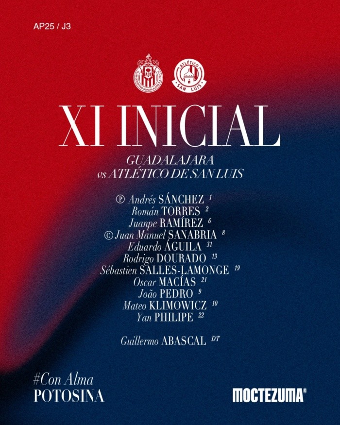 Deportes | Chivas vs Atlético San Luis • Momentos Destacados • Jornada 3 • Apertura 2025 Las Chivas del Guadalajara se alistan para debutar en casa en el torneo Apertura 2025, recibiendo al Atlético San Luis en el estadio Akron Sergio Alejandro Velázquez 26 de julio de 2025 - 17:00 hs CHIVAS4 ‒ 3ATLÉTICO SAN LUIS Fin del partido En un duelo lleno de emociones y volteretas, Guadalajara se impuso 4-3 a Atlético San Luis en un partido vibrante. El Rebaño tomó ventaja con un autogol de Sanabria y un tanto de Cade Cowell, pero los potosinos reaccionaron con goles de Eduardo Águila, João Pedro (penal) y Benjamín Galdames para darle la vuelta. Sin embargo, en la recta final, Armando González se convirtió en el héroe con un doblete que selló la remontada y la victoria para Chivas. 90' Se agregan 7 minutos al segundo tiempo 90' ¡Gooooool de Chivas! Armando González firmó su doblete con un remate de zurda desde el centro del área, colocando el balón en la escuadra derecha. La jugada se gestó tras una asistencia de Efraín Álvarez, poniendo el 4-3 a favor del Rebaño en un cierre vibrante. 84' ¡Chivas empata el encuentro! Armando González igualó el marcador 3-3 con un remate de cabeza desde muy cerca, regresando al Rebaño a la búsqueda de la victoria en los minutos finales del encuentro. 81' Más cambios en el Rebaño Salen: Bryan González y Alan Pulido. Entran: Hugo Camberos y Armando González. 75' ¡El Atlético San Luis le da la vuelta! Benjamín Galdames completó la remontada con un remate cruzado de derecha desde el sector izquierdo, poniendo el 3-2 a favor del conjunto potosino. ¡Qué técnica la de Galdames para definir así con la cabeza!⚽ Aquí está el tercero del San Luis.#J3 #AP25 | #LaLigaDeLaAfición pic.twitter.com/Rw5nuZ45hL — Liga BBVA MX (@LigaBBVAMX) July 27, 2025 69' ¡San Luis empata el encuentro! João Pedro empató el partido 2-2 al convertir el penal con un remate raso y colocado junto al palo izquierdo, imposible para el "Tala" Rangel. ¡Ese João Pedro anda implacable!���� ¡Qué delantero el que tienes, @AtletideSanLuis! #J3 #AP25 | #LaLigaDeLaAfición pic.twitter.com/BU0nccP74t — Liga BBVA MX (@LigaBBVAMX) July 27, 2025 67' Penal en favor del Atlético San Luis Tras la revisión, el árbitro confirma el penal tras la falta sobre João Pedro. 66' Posible penal en revisión Una posible falta de Érick Gutiérrez dentro del área se revisa en el VAR. 65' San Luis cerca del empate Miguel García intentó igualar el marcador con un remate desde el lado izquierdo del área, pero su disparo con la derecha fue detenido por el arquero. 62' San Luis también con modificaciones Sale Yan Phillipe para dejar entrar a Miguel García. 54' El Rebaño realiza cambios Salen: Richard Ledezma y Cade Cowell Entran: Alan Mozo y Efraín Álvarez. 50' ¡Goooooool del San Luis! Eduardo Águila descontó con un remate de cabeza a quemarropa desde el lado derecho del área durante una jugada de tiro de esquina, poniendo el 2-1 y acercando a su equipo en el marcador. ¡Tiene un martillo en la cabeza!���� Aquí está el gol de Eduardo Águila�� con el que descontó el @AtletideSanLuis.#J3 #AP25 | #LaLigaDeLaAfición pic.twitter.com/dFeqXDpViU — Liga BBVA MX (@LigaBBVAMX) July 27, 2025 Comienza el segundo tiempo Chivas regresa con una modificación, sale Daniel Aguirre para dejar entrar a Diego Campillo. Se termina la primera mitad Chivas se impone 2-0 sobre Atlético San Luis gracias a un autogol de Juan Manuel Sanabria y un remate de cabeza de Cade Cowell tras un tiro de esquina. El Rebaño dominó los primeros minutos con posesión y llegadas claras, mientras que el conjunto potosino reaccionó con algunas aproximaciones y disparos que exigieron al "Tala" Rangel. Sin embargo, Guadalajara mostró mayor contundencia y se fue al descanso con una ventaja cómoda. 45' Agregan 2 minutos al primer tiempo 45' ¡Gooooool de Chivas! Cade Cowell amplió la ventaja con un remate de cabeza desde muy cerca, colocando el balón en la escuadra derecha. La jugada se originó tras un tiro de esquina de Roberto Alvarado, en el que Daniel Aguirre asistió también de cabeza para concretar el 2-0 a favor del Rebaño. *Marcan tiro de esquina *Un señor de la nada: "dos cabezazos en el área, siempre terminan en gol".�� Acá está el tanto del Vaquero de las @Chivas, Cade Cowell.����⚪#J3 #AP25 | #LaLigaDeLaAfición pic.twitter.com/NdzqDXY6AY — Liga BBVA MX (@LigaBBVAMX) July 27, 2025 34' Ledezma se queda a nada Richard Ledezma tuvo una buena oportunidad para Chivas con un remate raso desde el centro del área, tras una asistencia de cabeza de Cade Cowell, pero el disparo fue detenido por el arquero. 24' San Luis retoma la presión El conjunto potosino retomó la iniciativa, generando jugadas y moviendo la defensa de Chivas. San Luis logró sumar algunas aproximaciones al área rival en su intento por empatar el marcador. 15' Cowell se queda cerca del segundo Cade Cowell estuvo cerca de ampliar la ventaja con un potente disparo desde fuera del área, dirigido al palo izquierdo. Sin embargo, el arquero Andrés Sánchez reaccionó a tiempo y evitó el segundo gol al quedarse con el balón. 11' ¡Chivas abre el marcador! Guadalajara abrió el marcador gracias a un autogol de Juan Manuel Sanabria. El jugador de Atlético San Luis desvió el balón hacia su propia portería, poniendo el 1-0 a favor del Rebaño. Etiqueta a tu Chivahermano favorito para que vea cómo abrieron el marcador las @Chivas.����⚪ Aquí les dejo el primero del Rebaño esta tarde. Autogol de Sanabria.#J3 #AP25 | #LaLigaDeLaAfición pic.twitter.com/rhy509wMK1 — Liga BBVA MX (@LigaBBVAMX) July 26, 2025 9' San Luis obliga al "Tala" a aparecer Atlético San Luis toma su turno para atacar. Primero, Mateo Klimowicz intentó sorprender con un disparo raso desde fuera del área, que fue contenido con seguridad por el "Tala" Rángel. Momentos después, Yan Phillipe tuvo 