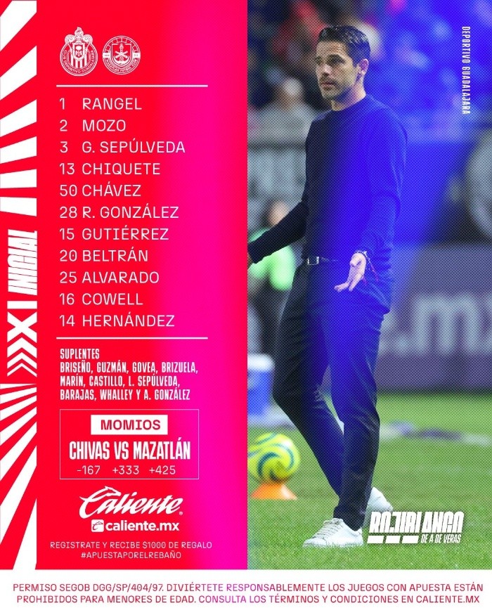Deportes | Chivas vs Mazatlán • Momentos Destacados • Jornada 4 • Apertura 2024 Chivas buscará sumar una victoria, previo a los compromisos de la League Cup, al enfrentarse a Mazatlán dentro de la cancha del Estadio Akron Sergio Alejandro Velázquez 20 de julio de 2024 - 16:00 hs CHIVAS2 ‒ 0MAZATLÁN Fin del partido 90+2’ Amonestación para el Mazatlán Bryan Colula recibe tarjeta amarilla por una fuerte entrada sobre el "Pocho" Guzmán. 90’ Se agregan 7 minutos al segundo tiempo 81’ Más cambios en el Rebaño Sale Fernando Beltrán, Roberto Alvarado y Cade Cowell para dejar entrar a Omar Govea, Fidel Barajas y Leonardo Sepúlveda. 79’ ¡Goooooooooooooooooooooool de Chivas! Armando González le da dirección a un tiro libre del "Pocho" Guzmán y conduce el balón hacia la portería del Mazatlán. ¡LA 'HORMIGA' ESTUVO EN EL LUGAR EXACTO EN EL MOMENTO EXACTO PARA DEFINIR EL SEGUNDO GOL DE LA TARDE! Así lo gritamos todos en la señal de @Chivastvmx Sigue el partido EN VIVO con tu suscripción activa en https://t.co/CxXH0lnnRY https://t.co/FTFoxMquUy pic.twitter.com/sCIisBxlQz — CHIVAS (@Chivas) July 21, 2024 78’ Otra amonestación para el Mazatlán Ramiro Franco recibe tarjeta amarilla por un jalón de camiseta sobre Mateo Chávez. 68’ Gago hace modificaciones Sale Javier "Chicharito" Hernández para dejar entrar a Armando González. 61’ El "Tala" Rangel detiene el empate En un duelo uno a uno, Raúl Rangel logra frenar el disparo del jugador de Mazatlán para mantener la ventaja de Chivas. ️ ESPECTACULAR, @RANGELRAUL1 ️ Sigue el partido EN VIVO con tu suscripción activa en https://t.co/CxXH0lnnRY https://t.co/FTFoxMquUy pic.twitter.com/vT4t8vb0Ud — CHIVAS (@Chivas) July 21, 2024 57’ Amonestación para el Rebaño Roberto Alvarado recibe tarjeta amarilla, la segunda para el conjunto rojiblanco. 51’ ¡Goooooooooooooooooooooool de Chivas! Cade Cowell consigue el primer gol del encuentro tras colarse hasta el centro del área para realizar un disparo que termina dando la ventaja al Rebaño. NECESITAMOS CROQUETAS Y CORREA PARA ESTE GOLAZO DE @CC4OFFICIAL Así definió nuestro 'Vaquero' el primer gol del partido ⚽️ Sigue el partido EN VIVO con tu suscripción activa en https://t.co/CxXH0lnnRY https://t.co/FTFoxMquUy pic.twitter.com/PUeTK80WdB — CHIVAS (@Chivas) July 21, 2024 Comienza el segundo tiempo Fin del primer tiempo 45+7’ Chicharito se queda cerca del primero de Chivas Con servicio de Cade Cowell, "Chicharito" Hernández hace un remate de cabeza que termina siendo frenado por la reacción rápida del arquero Hugo González. La dupla y se quedaron a nada del primero#FUTENCHIVASTV https://t.co/anm1ofogwZ @TelemundoSports* pic.twitter.com/Fymurv6zsb — CHIVASTV (@chivastvmx) July 21, 2024 45+5’ Chiquete pide su cambio por lesión Jesús Orozco Chiquete se tira sobre la cancha y recibe una tarjeta amarilla por matar tiempo dentro de los últimos minutos del primer tiempo. El jugador sale del encuentro por un dolor en el muslo derecho y Víctor Guzmán entra en su lugar al terreno de juego. 45’ Se agregan 7 minutos al primer tiempo 42’ Amarilla para el Mazatlán Edgar Bárcenas recibe la segunda amonestación del partido por una falta sobre Alan Mozo. 29’ Chivas no logra concretar sus llegadas El conjunto rojiblanco mantiene la pelota, pero no logra coordinar su ataque para lograr sacar provecho a sus constantes llegadas. Mazatlán, por su parte, consigue balones para generar contragolpes que hasta el momento han generado diversos peligros para Chivas. 20’ Mazatlán empieza a despertar Poco a poco, el Mazatlán comienza a ganar más el balón y ya empieza a generar algunos riesgos para los rojiblancos. 14’ El Rebaño no deja de buscar Mazatlán ha conseguido posesiones muy cortas con las que sólo han logrado hacer ataques a larga distancia, mientras que Chivas insiste de manera constante, pero no logra dar con la jugada necesaria para llevar el balón a la red. 9’ Primera amonestación del partido para Mazatlán Gustavo del Prete recibe la primera amarilla del partido 5’ Chivas mantiene el balón en los primeros minutos El Rebaño se mantiene insistiendo en el arranque del partido por conseguir el primer tanto y ya empiezan a presionar en el área del Mazatlán con diversas llegadas. Comienza el partido Alineación de Chivas Alineación de Mazatlán Mantente al día con las noticias, únete a nuestro canal de WhatsApp SV Temas Chivas Mazatlán FC Liga MX Futbol Mexicano apertura 2024 Torneo Apertura 2024 Lee También Peso mexicano SALTA sobre el dólar al arranque de este jueves 9 de octubre Muere Miguel Ángel Russo, entrenador de Boca Juniors Futbol hoy 9 de octubre de 2025: ¿Dónde ver los partidos en vivo? Chivas Femenil sufre baja sensible para el cierre del torneo