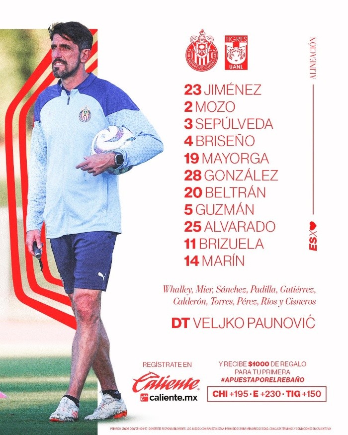 Deportes | Chivas vs Tigres • Momentos destacados • Jornada 14 • Liga MX Chivas volverá al Estadio Jalisco, el que fue su antigua casa, para recibir a Tigres en un partido que promete estar lleno de nostalgia en la Jornada 14 del toreno Apertura 2023 Sergio Alejandro Velázquez 28 de octubre de 2023 - 18:00 hs CHIVAS0 ‒ 4TIGRES Fin del partido El festejo por el regreso de Chivas al Estadio Jalisco se vio frenado por una goleada de Tigres al conjunto rojiblanco. Con doblete de Nicolás Ibáñez y goles de Lainez y Marcelo Flores, el Rebaño ve obstaculizado su pase directo a la liguilla. 96' ¡Goooooooooooooooool de Tigres! Marcelo Flores consigue el cuarto en esta goleada que está recibiendo Chivas. ¡¡¡G⚽⚽⚽L!!! ¡Primer gol de Marcelo Flores en la #LigaBBVAMX!#Apertura2023 | ��#NoTeLoPierdas pic.twitter.com/EKsBOOkGDQ — Liga BBVA MX (@LigaBBVAMX) October 29, 2023 45' Se suman 6 minutos al segundo tiempo 86' ¡Goooooooooooooooool de Tigres! Diego Lainez consigue el tercero para Tigres. ¡¡¡G⚽⚽⚽LAZOOOO!!! ¡¡Apareció Diego Lainez para anotar el tercero de los Tigres!!#LigaBBVAMX | #Apertura2023 | ��#NoTeLoPierdas pic.twitter.com/ptibfvl2fk — Liga BBVA MX (@LigaBBVAMX) October 29, 2023 78' Nahuel logra una gran atajada tras un tiro de esquina Después de un tiro de esquina del "Piojo" Alvarado Chivas queda cerca del primer gol, pero la barrera de Nahuel Guzmán le quita esperanzas a la afición rojiblanca. 74' Más cambios en Chivas Se van Fernando González, Isaác Brizuela y Alejandro Mayorga para que entren Érick Gutiérrez, Yael Padilla y Cristian Calderón. 59' Cambios en la alineación de Chivas Se va Víctor Guzmán para dejar lugar a Ronaldo Cisneros. 53' ¡Goooooooooooooooooooool de Tigres! Tigres domina el partido con la segunda anotación de Nico Ibáñez. ¡¡¡G⚽⚽⚽L!!! ¡¡Doblete de Nico Ibáñez!! Tigres aumentó la ventaja en el Jalisco.#LigaBBVAMX | #Apertura2023 | ��#NoTeLoPierdas pic.twitter.com/7r7hjUV9tQ — Liga BBVA MX (@LigaBBVAMX) October 29, 2023 52' Otra amarilla para Chivas 50' La intensidad se reanuda con el segundo tiempo La segunda mitad de este partido regresa con la intensidad de Chivas buscando igualar el encuentro. Comienza el segundo tiempo Fin del primer tiempo 48' Amonestación para Chivas Alan Mozo recibe tarjeta tras argumentar con el árbitro tras una jugada polémica que se queda cerca de la portería de Tigres en la línea de fondo. 45' Se agregan 4 minutos al primer tiempo 44' Amonestan a Nahuel por confrontar al público rojiblanco Tras el clásico grito controversial en las gradas de la afición de Chivas, Nahuel Guzmán reacciona confrontando al público. 38' Primera amarilla del partido para Chivas Alejandro Mayorga es amonestado tras su reingreso a la cancha después de salir lastimado. 31' El "Piojo" casi consigue el primero para Chivas Alvarado consigue una buena posición para marcar en la portería de Nahuel Guzmán, pero el balón es desviado por la defensa de Tigres. 24' Chivas insiste para igualar el marcador Chivas propone diversas jugadas tras perder la intensidad del principio del partido, pero no logra concretar la anotación. 18' Tigres se queda cerca del segundo Córdova encuentra el balón perfecto para una anotación, pero lo deja ir. 15' ¡Gooooooooooooooooooool de Tigres! Cae el primer gol del partido para Tigres de la mano de Nicolás Ibáñez. ¡¡¡G⚽⚽⚽L!!! ¡¡ ‘Nico’ Ibáñez definió dentro del área y ya gana Tigres en el Jalisco!!#LigaBBVAMX | #Apertura2023 | ��#NoTeLoPierdas pic.twitter.com/YiA0Cfd4jY — Liga BBVA MX (@LigaBBVAMX) October 29, 2023 8' El partido comienza con intensidad y con un posible lesionado en Chivas Alejandro Mayorga sale de la cancha para recuperarse de una posible lesión en el tobillo. Comienza el partido El árbitro da la señal y empieza a rodar el balón en la cancha del Estadio Jalisco en posesión de Chivas. Alineación de Chivas Temas Chivas Tigres Estadio Jalisco Liga MX Futbol Mexicano Lee También Chivas Femenil, a una victoria de asegurar su lugar en Liguilla Jalisco reporta una tendencia a la baja en desapariciones Darán capacitación a ingenieros para transparentar la obra pública México busca frenar el paso perfecto de Argentina en Mundial Sub-20