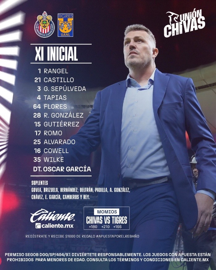 Deportes | Chivas vs Tigres • Momentos Destacados • Jornada 3 • Clausura 2025 Chivas recibirá a Tigres en un duelo correspondiente a la tercera jornada en la cancha del Estadio Akron Sergio Alejandro Velázquez 25 de enero de 2025 - 17:45 hs CHIVAS1 ‒ 1TIGRES Fin del partido 90+1' Cambio en Tigres Sale Joaquim para dejar entrar a José Juan Purata. 90' Agregan 8 minutos al segundo tiempo 81' Tigres realiza una modificación Sale Nicolás Ibáñez para dejar entrar a Juan Pablo Vigón. 80' Cambios en las filas de Chivas Salen: Teun Wilke y Fernando González. Entran: Javier Hernández y Omar Govea. 70' Nahuel salva a Tigres Nahuel desvía un disparo de Camberos y Chivas se mantiene cerca de tomar ventaja. 64' Chivas también con cambios Entran: Cade Cowell y Roberto Alvarado. Salen: Hugo Camberos y Yael Padilla. 63' Modificaciones en Tigres Salen: Diego Lainez, Jesús Garza y Sebastián Córdova. Entran: Jonathan Herrera, Jesús Ángulo y Uriel Antuna. 61' Tigres cerca de conseguir la ventaja Garza saca un potente disparo desde afuera del área y "Tala" Rangel aparece para frenar a los Felinos. 53' Chivas pide penal Los jugadores rojiblancos reclaman una mano en el área de Tigres, sin embargo, el árbitro decide continuar con el encuentro. 47' Primera amonestación del encuentro José Castillo recibe la primera amonestación del encuentro para Chivas. Comienza el segundo tiempo Fin del primer tiempo 45+3' ¡Goooooooooooooooooooooooooool de Tigres! Juan Brunetta remata un pase de Diego Lainez para llevar el balón al arco y empatar el encuentro. ¿Creyeron que los dejábamos sin el empate de La U? Claro que no, aquí les traemos el gol de los TI-GUE-RES. Así anotó Brunetta:@Chivas 1-1 @TigresOficial#Jornada3 #Clausura2025. pic.twitter.com/m2hoqvBzhy — Liga BBVA MX (@LigaBBVAMX) January 26, 2025 45' Se agregan 5 minutos al primer tiempo 40' Ambos conjuntos insisten en el ataque El Rebaño y los Felinos toman turno para posicionarse en el área rival para buscar el segundo tanto del partido. 32' Tigres vuelve aparecer en el área rojiblanca Lainez manda un centro en diagonal, sin embargo, nadie de Tigres aparece para rematar el balón. 25' Chivas mantiene presión Luis Romo aparece para cabecear el balón, pero sale desviado. 20' Wilke vuelve a atacar la portería de Nahuel Wilke se posiciona frente a la portería de Tigres para realizar un disparo cruzado que termina rechazado por Nahuel Guzmán. 14' Primer cambio en Chivas por lesión Sale Daniel Flores por lesión en su debut con Chivas para dejar entrar a Mateo Chávez. 12' Tigres busca el empate Tigres empieza a tomar un poco más el balón y acumula dos ataques de peligro para el Rebaño; un tiro a larga distancia de Garza queda cerca de convertirse en un golazo de los Felinos. 5' ¡Goooooooooooooooooooooooooool de Chivas! Chivas aprovecha un erros de los visitantes y Teun Wilke marca el primero para el Rebaño en los primeros minutos del encuentro. Apréndanse su nombre: Teun Wilke marcó su primer tanto en nuestra Liga y se lo hizo nada más y nada menos que a Nahuel Guzmán.@Chivas 1-0 @TigresOficial #Jornada3 #Clausura2025. pic.twitter.com/bBK6eCcKEW — Liga BBVA MX (@LigaBBVAMX) January 26, 2025 Pauno recibe abucheos de la afición rojiblanca Comienza el partido El árbitro da el silbatazo y se empieza a disputar el encuentro correspondiente a la Jornada 3 del Clausura 2025 sobre la cancha del Estadio Akron. Alan Pulido en el Estadio Akron Alineación de Chivas Alineación de Tigres Cuadro titular listo para el enfrentamiento de esta noche ante las Chivas. Alineación @CEMEXMx.#SiempreContigo #EstoEsTigres pic.twitter.com/i36ecwa6T5 — Club Tigres (@TigresOficial) January 26, 2025 Transmisión del partido Tras su derrota ante Necaxa, el Rebaño buscará redimirse frente a su afición en el Estadio Akron. Esta noche recibirán a Tigres en un duelo correspondiente a la tercera jornada del Clausura 2025. Los rojiblancos enfrentarán un desafío complicado, ya que los felinos llegan con dos triunfos consecutivos ante Atlético de San Luis y Mazatlán. Sin embargo, la ausencia de André-Pierre Gignac, debido a una lesión en el tendón de Aquiles, podría jugar a favor de los dirigidos por Óscar García. El enfrentamiento será clave para que Chivas logre su segunda victoria en el torneo y sume tres puntos importantes. El partido está programado para este sábado, 25 de enero, a las 19:05 horas (tiempo del centro de México) y podrá disfrutarse a través de la plataforma Amazon Prime Video. SV Temas Chivas Tigres Liga MX Futbol Mexicano Lee También Futbol hoy 10 de octubre de 2025: ¿Dónde ver los partidos en vivo? Mundial Sub-20: Chivas y Juárez se disputan el futuro del juvenil Diego Ochoa Atlas aprovecha la pausa para recuperar elementos clave Chivas viaja con ‘Chicharito’ y Robinho al amistoso ante América en Estados Unidos