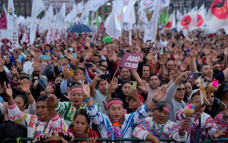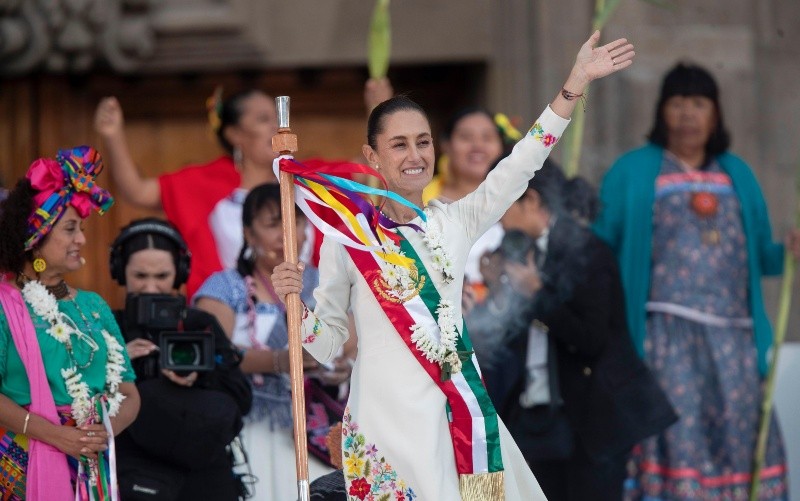 Los vientos de una nueva época comienzan a sentirse en México. La Presidenta, Claudia Sheinbaum “debutó” con su nuevo puesto ante las masas ayer, ante un Zócalo repleto con partidarios de Morena y quienes depositaron su voto en ella confiando en que el “segundo piso” de la llamada Cuarta Transformación traiga la prosperidad que tanto anhela la nación.Sonriente, con un vestido blanco y rodeada por sus fieles en el templete principal de la plaza central de la Ciudad de México, Claudia Sheinbaum expresó para arrancar: “Amigas y amigos, el día de hoy inicia el segundo piso de la Cuarta Transformación de la vida pública de México”.La primera Mandataria de México protagonizó el evento masivo en la mayor plaza pública del país, en el que leyó sus 100 puntos de Gobierno, tras recibir en la Cámara de Diputados la banda presidencial.Sin ruptura con el pasado inmediato, la jefa de Estado aseguró que seguirá con las principales consignas que caracterizaron a su predecesor, que se han convertido en el mantra para quienes apoyan el llamado “movimiento transformador: “Por el bien de todos, primero los pobres”, “no puede haber gobierno rico, con pueblo pobre”, y “con el pueblo todo, sin el pueblo nada”.A cada frase, una porra. Y a cada promesa, una sonrisa del público congregado en el corazón capitalino.La Presidenta procuró delinear con claridad lo que viene para su Gobierno: “¿Qué significa el segundo piso de la transformación? Significa mantener nuestros principios, nuestras causas, las que dieron origen a nuestro movimiento, vamos a gobernar con los principios de la Cuarta Transformación”.Sheinbaum destacó la naturaleza histórica de su mandato por ser la primera mujer presidenta en los más de 200 años de la república y los 500 años desde la conquista española, aunque sin dejar de reconocer que su triunfo electoral emanó de un movimiento político y electoral altamente exitoso.Prometió por ello la continuidad en las políticas que se venían realizando, como la austeridad en el Gobierno, becas para estudiantes y pensiones para adultos mayores y personas con discapacidad.En esa línea de continuar con lo acostumbrado en el anterior sexenio, ya adelantó que hoy ofrecerá su primera conferencia matutina, la llamada “mañanera”, pactada a las 07:30 horas en el Palacio Nacional. Uno de los temas que tendrá atención especial en la agenda de la Presidenta será el tema de combate a los delitos, al respecto, Sheinbaum adelantó: “la próxima semana estaremos anunciado la estrategia nacional de seguridad”. Remarcó que consolidará la estrategia de seguridad que inició su antecesor y tiene como base la atención a las causas, fortalecimiento de la Guardia Nacional, además de inteligencia e investigación y coordinación.El pasado 21 de septiembre, se publicó un primer adelanto de la estrategia de seguridad de Sheinbaum para reducir la violencia generada por el crimen organizado y pacificar el país.El plan, que se implementará durante sus primeros cien días de gobierno, tiene tres objetivos: Disminución de homicidios dolosos y delitos de alto impacto, neutralización de generadores de violencia (con especial atención en regiones con alta incidencia delictiva) y la mejora de la percepción ciudadana sobre el respaldo del gobierno ante hechos violentos.Ante las críticas de “militarización”, argumentó que la “comandanta suprema de las Fuerzas Armadas de México es una civil y es mujer”.“Nunca vamos dar una orden para reprimir al pueblo, haremos un sistema nacional de inteligencia e investigación para la seguridad pública y aumentaremos la coordinación con estados, municipios y con el Ministerio Público”.Claudia Sheinbaum recibió ayer el tradicional bastón de mando de los 70 pueblos indígenas y la comunidad afromexicana en el Zócalo de Ciudad de México.La entrega del bastón significa la transmisión del poder político y espiritual de los pueblos originarios para reconocerla como su legítima gobernante, un hecho que ocurrió durante el mensaje que la Presidenta ofreció tras su toma de posesión.Según explicaron las líderes, Sheinbaum se convierte también en la primera mujer en recibir el bastón de mando por parte de los pueblos indígenas y afromexicanos, con lo que depositan en ella su confianza en el sexenio que comienza.