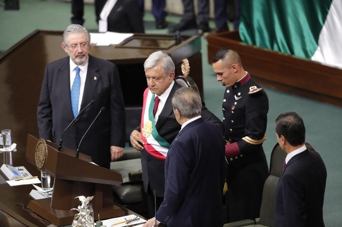 En su primer discurso ante la máxima tribuna del país y ya como Presidente de la República portando la banda presidencial en el pecho, Andrés Manuel López Obrador dijo que por mandato del pueblo hoy se inicia la cuarta transformación política de México y con ello, comienza un cambio de régimen político y una transformación pacífica y ordenada. "Por mandato del pueblo, iniciamos hoy la Cuarta Transformación política de México, puede parecer pretencioso o exagerado, peor hoy no sólo inicia un nuevo gobierno, hoy comienza un cambio de régimen político, a partir de ahora inicia una transformación pacífica y ordenada, pero al mismo tiempo profunda y radical porque se acabará con la corrupción y con la impunidad que impiden el renacimiento de México", explicó. Con la presencia de su gabinete, de gobernadores y titulares de los órganos autónomos, López Obrador reconoció al presidente saliente, Enrique Peña Nieto que haya respetado la voluntad del pueblo de México. "Valoramos el que el Presidente en funciones respete la voluntad del pueblo, por eso muchas gracias, licenciado Peña Nieto", dijo López Obrador. Explicó que con la Cuarta Transformación va porque la honestidad y la fraternidad sean la forma de vida del gobierno. "Si definimos el pocas palabras las tres grandes transformaciones de nuestra historia, podríamos resumir que en la Independencia se luchó por abolir la esclavitud y alcanzar la soberanía nacional; en la reforma, por el predominio del poder civil y por la restauración de la República; y en la Revolución, nuestro pueblo y sus extraordinarios dirigentes lucharon por la justicia y la democracia, ahora nosotros queremos convertir la honestidad y la fraternidad en forma de vida y de gobierno, no se trata de un asunto retórico o propagandístico, estos postulados de sustentan", dijo López Obrador.OA