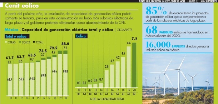 México llegará a una capacidad instalada de 7mil 800 megawatts eólicos al cierre del 2021, lo que implicará un incremento anual de 9%, con un aumento máximo de 700 megawatts que entrarán en operación a lo largo del año. Sin embargo, esto será todo el incremento esperado a lo largo de la presente administración, dadas las condiciones de incertidumbre jurídica, como un total de 400 amparos en proceso contra la reforma a la Ley de la Industria Eléctrica, y falta de robustez en la red de transmisión nacional.Así lo expuso Leopoldo Rodríguez Olivé, presidente de la Asociación Mexicana de Energía Eólica (AMDEE) durante la presentación del Congreso Digital México Windpower 2021, que el 26 y 27 de mayo cumplirá 10 años de celebrarse en el país.Desde la primera emisión de este congreso en el país, el aumento en la capacidad instalada eólica ha sido de prácticamente cero a 7 mil 154 megawatts al cierre del 2020, con 68 parques instalados y en operación en 14 entidades del país, explicó el empresario. En ese lapso se han reducido en 70% los costos de generación de esta tecnología y hoy se generan 16 mil empleos directos relacionados con esta industria.Sin embargo, en juzgados especializados en competencia se analizan el día de hoy un total de 400 amparos por parte de distintas empresas que argumentaron violación a derechos adquiridos luego de la modificación del poder ejecutivo aprobada por el Congreso para cambiar el orden de prelación de despacho privilegiando la generación de la Comisión Federal de Electricidad. Además, la Comisión Federal de Competencia Económica interpuso también ante la Suprema Corte su controversia constitucional por la invasión de sus facultades que representarían los cambios a este ordenamiento.“Hay dos cosas importantes que no podemos perder de vista: no en todo el país se genera la misma cantidad de energía por tecnología, la eólica tiene puntos específicos con un alto potencial, pero se necesita una red robusta que permita transportarla, además de que las inversiones se paralizan si no hay certidumbre jurídica y reglas claras a lo largo del tiempo”, dijo el empresario.Rodríguez Olivé explicó que aunque se encuentran suspendidos los ordenamientos de la reforma, los inversionistas analizan las posibilidades de llegar al país, dado que no existen sentencias que anulen definitivamente las modificaciones, mientras que la presente administración continúa emitiendo ordenamientos que afectan la inversión privada, como la reforma a la Ley de Hidrocarburos.Por lo pronto, la instalación de parques eólicos contratados a largo plazo por la CFE dentro de las tres subastas de la administración pasada lleva un avance de 85% y únicamente falta un megaproyecto que se mantiene en el trámite de consulta libre e informada a los pueblos indígenas de la región.Los 700 megawatts que entrarán en operación en 2021 prácticamente ya están construidos y forman parte de la contratación de estas subastas por lo que sólo están en espera de pruebas para interconexión y arranque de operaciones.Hasta el momento, en México se han invertido 13 mil millones de dólares en la capacidad eólica actual, que representa poco más del 8% de la instalación eléctrica nacional. Al concluir la administración pasada, y dado el potencial del viento en regiones como Tamaulipas y Oaxaca, entre otros, se esperaba superar el 10% de la capacidad instalada al 2024, pero los arreglos que se obtuvieron como exceso de socios de autoabasto o exención del pago de transmisión por considerarse energía renovable, han llevado a que la CFE tenga pérdidas al otorgar apoyos a privados que invierten en el sector, lo que ha provocado los desacuerdos y las modificaciones legales que hoy se desahogan en el poder judicial.La capacidad eólica instalada hasta el año pasado se quedó 12% por debajo de la última prospectiva del sector eléctrico de la administración pasada, que llegaría a 8 mil 128 megawatts instalados.La Comisión Federal de Competencia Económica (Cofece) estimó que México no alcanzaría para 2024 el 35% de generación limpia comprometida en el Acuerdo de París y estipulado en la Ley de Transición Energética quedando, en un escenario conservador, en 29.8%; esto es 5.2 puntos porcentuales por debajo de la meta, aun antes de la reforma a la Ley de la Industria Eléctrica que hoy se contiende en el poder judicial.El regulador antimonpolios publicó este martes la versión final del documento Transición hacia los mercados competidos de energía: Los Certificados de Energías Limpias en la industria eléctrica mexicana. Esta versión atiende los comentarios recibidos en la consulta pública que se realizó en enero de este año.Cabe destacar que este análisis fue elaborado previo a la aprobación y publicación de la reciente reforma a la Ley de la Industria Eléctrica (LIE), publicada en el Diario Oficial de la Federación el 8 de marzo del 2021, la que, desde la perspectiva de la Cofece, elimina las condiciones necesarias para que exista una dinámica de competencia en el mercado eléctrico.“Con la reforma es previsible que inevitablemente se tendrá un escenario de incumplimiento incluso más pronunciado de las metas comprometidas”, aseguró la Cofece, “esto porque el logro de los objetivos de protección al medio ambiente planteados por México en materia eléctrica quedó anclado a la existencia de una dinámica de competencia en la generación de electricidad, como medio para producirla de manera eficiente y a los menores costos sociales posibles, incluyendo los ambientales. Dado los cambios tecnológicos en esta industria, la generación de electricidad menos costosa suele ser precisamente la que proviene de fuentes limpias”.Cofece consideró que en línea con esta intersección entre competencia y sustentabilidad ambiental, la Ley de la Industria Eléctrica y la Ley de Transición Energética contemplan a los Certificad