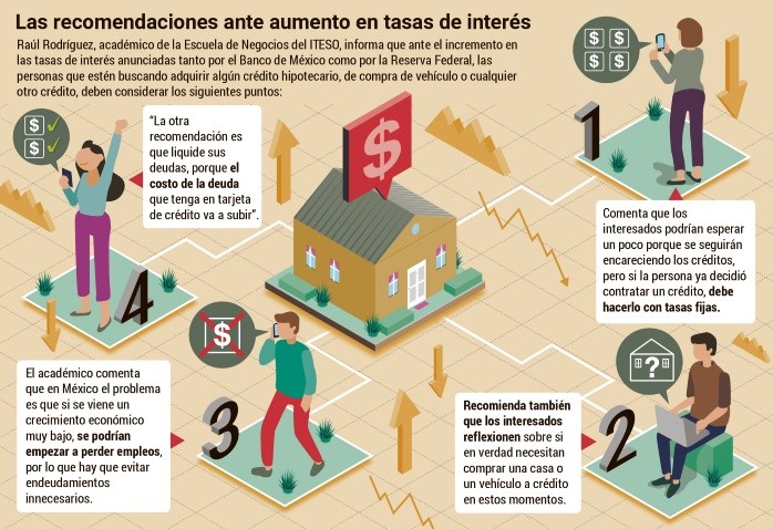 La cartera vencida de la banca múltiple aumentó en Jalisco. La morosidad de los créditos comerciales, consumo y vivienda pasó de cuatro mil 417 millones de pesos (MDP) al cierre del año pasado a seis mil 924.3 MDP en el primer trimestre del actual, según el Banco de México (Banxico).Ante el alza de las tasas de interés anunciadas por Banxico y la Reserva Federal de Estados Unidos, Israel Macías López, investigador de la Universidad Panamericana (UP), recomienda a la gente que liquide sus deudas. El Banco de México ya incrementó la tasa de interés de referencia a 7.75 por ciento.Raúl Rodríguez, académico del ITESO, considera que la subida de las tasas de interés establecidas por los bancos centrales no son el mejor instrumento para combatir una inflación que viene por el lado de la oferta. De acuerdo con el último reporte de estabilidad financiera (junio 2022) del Banco de México (Banxico), la banca múltiple cuenta con niveles de capital y de liquidez que exceden con holgura los mínimos regulatorios.“No obstante, el sistema enfrenta retos relevantes ante la coyuntura actual, la cual combina los efectos remanentes derivados de la pandemia por COVID-19, con nuevos desafíos provenientes de la situación geopolítica entre Rusia y Ucrania, así como persistentes presiones inflacionarias globales”.Esto ha provocado el retiro del estímulo monetario en diversas economías y, en general, el apretamiento de las condiciones financieras.Se reporta que durante la primera mitad de este año, la actividad económica global ha registrado una desaceleración más marcada de lo previsto y las estimaciones de crecimiento del Fondo Monetario Internacional (FMI) para la economía mundial se revisaron significativamente a la baja para este año.En tanto, el otorgamiento del crédito continúa sin registrar una reactivación robusta y generalizada que pueda acompañar e impulsar el crecimiento económico.“El saldo del financiamiento total recibido por los hogares, registró una caída marginal en términos reales anuales durante el primer trimestre de 2022. No obstante lo anterior, el crédito al consumo otorgado por la banca y sus Sofomes subsidiarias mostró una recuperación”.Sin embargo, se informa que durante el primer semestre de este año la actividad económica ha continuado su proceso de recuperación. “El producto aún no alcanza los niveles previos al impacto de la pandemia. Además, a pesar de dicha recuperación, continúa sin observarse una reactivación acorde en el otorgamiento del crédito”.LA VOZ DEL EXPERTOIsrael Macías López, investigador de la Facultad de Empresariales de la Universidad Panamericana.Aunque la morosidad con los bancos seguirá en aumento, ante la crisis económica que se vive en el país y a nivel mundial tras la pandemia, Israel Macías López, académico de la Universidad Panamericana (UP), aclara que ésta no se elevará “de tal forma que ponga en riesgo la existencia de los bancos”.Actualmente, dice, se habla de una recesión, de un incremento en tasas de interés y una baja en la actividad económica “que todos lo vamos a resentir, pero no tanto para poner a la banca en un contexto de crisis general”.Ante el aumento en la cartera vencida, agrega, los bancos deberán mostrar sus fortalezas; es decir, las reservas que tienen, el tipo de financiamiento, “en fin, ya habla mucho del manejo interno de cada banco”.El problema, comenta, es para los casos más complicados en los que las personas ya estaban al límite para pagar sus deudas, “sumando el hecho de que todo lo demás está subiendo de precio. Hoy se necesita más dinero para llenar un tanque de gasolina, para tener acceso a gas, para pagar energía eléctrica, para comer”.Añade que se requieren más recursos para cubrir cualquier necesidad. “Y si le sumamos el hecho de que ahora se va a requerir más dinero para poder estar en condiciones normales ante las deudas que tenemos, la presión aumentará”.El alza de la inflación que se ha presentado desde finales del año pasado es preocupante por el impacto en el nivel de vida de la gente, destaca Israel Macías López, investigador de la Facultad de Empresariales de la Universidad Panamericana (UP).“Porque ya con esta inflación que estamos teniendo está repercutiendo en muchas cosas, sobre todo porque es una inflación que se ha concentrado en la comida. Sería distinto si estuviera concentrada en cosas que no todo mundo compra; por ejemplo, en boletos de avión, boletos de cruceros o consolas de videojuegos”, resalta. Lo lamentable, dice, es que esa escalada de precios está concentrada en los granos, harina, leche, huevo, carne, verduras, frutas, entre otros alimentos de la canasta básica, “y por eso está siendo mucho más empobrecedora, porque quién se escapa de comer. Si sube un boleto de avión, bueno, muchos no se enteran, pero si comer sale más caro ahora, pues muchos los padecen”. De acuerdo con información de Banxico, durante el último cuatrimestre del año pasado la inflación general anual se ubicó en 6.99% en promedio y aumentó a 7.27% durante el primer trimestre de este año.“En abril de 2022 el indicador registró 7.68%, mientras que en mayo se ubicó en 7.65%. El complejo entorno para la inflación de principios de año se tornó aún más complicado, pues además de que los efectos asociados a la pandemia no se terminaron de disipar, surgieron presiones adicionales sobre los precios de las materias primas, alimenticias y energéticas, por el conflicto bélico entre Rusia y Ucrania”, precisa el Banco de México.PARA SABERLA VOZ DEL EXPERTORaúl Rodríguez, académico de la Escuela de Negocios del ITESO.El origen actual del fenómeno que se observa con la subida de tasas de interés tiene que ver con el incremento inflacionario que ha provocado que los bancos centrales empiecen a actuar, declara Raúl Rodríguez, académico del ITESO. Puntualiza que el origen de la inflación
