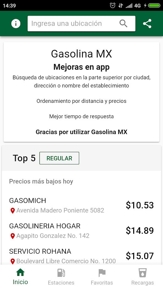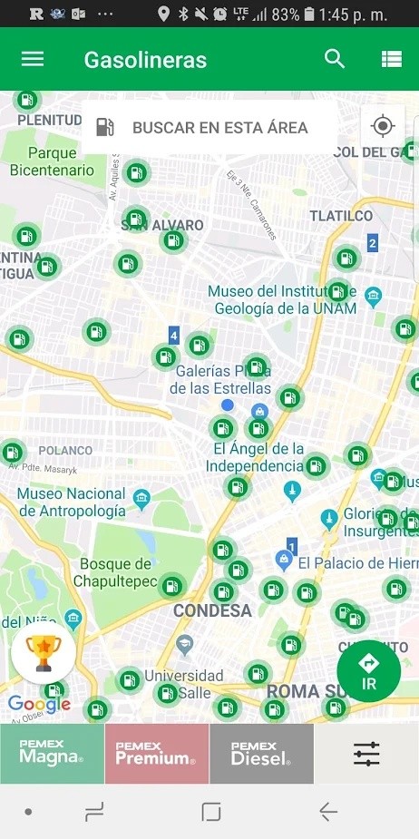 Tecnología | Cuatro "apps" para localizar precios y venta de gasolina En México existen diversas aplicaciones móviles que puedes descargar en tu teléfono celular para conocer precios, ubicación y servicio de diversas gasolineras SUN 9 de enero de 2019 - 13:46 hs 1 Gasoapp Es la aplicación oficial de la Comisión Reguladora de Energía (CRE) y permite localizar la gasolinera más cercana a tu ubicación así como conocer los precios más baratos y caros del combustible en la zona donde te encuentras.Además te permite mandar reportes ciudadanos sobre el servicio y veracidad de la información. 2 Gasolina MX versión clásica Cuenta con los precios de la gasolina y diésel en un listado donde brinda las gasolineras cercanas a tu ubicación ordenadas desde el menor precio hasta el mayor.Incluye la fecha en la que se actualizó el dato del precio, el mapa de la gasolinera y calculadora para convertir litros y costo. 3 Tanque lleno Esta aplicación informa sobre las gasolineras que dan litros completos y cuenta con el historial de revisiones realizadas por la Procuraduría Federal del Consumidor (Profeco).Permite almacenar tus datos de recarga de gasolina y conocer cuánto gastas en combustible mensualmente. 4 Guía Pemex Esta plataforma cuenta con la información de las gasolineras que pertenecen a la franquicia Pemex a nivel nacional.Informa sobre la ubicación, tipo de combustible, precios, medios de pago que reciben, negocios que hay en la gasolinera y permite dejar comentarios.