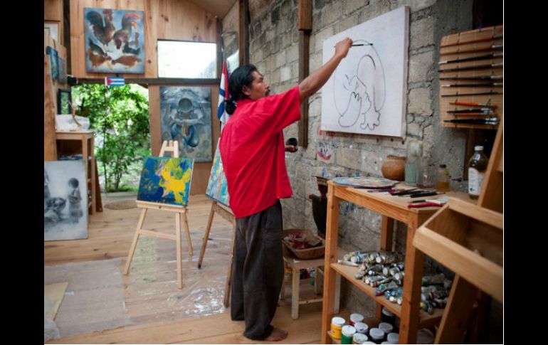De Antún Kotjom, artista maya tzeltal, se exhibe "Ch´ulel", una serie de 20 obras en las que se rescata el telar como soporte en el que plasma las formas que adopta la espiritualidad maya tzeltal, básicamente en cuanto a la dualidad. Esa característica del "Ch´ulel" consiste en que la energía se comparte con otros seres, como animales, por lo cual en su obra destacan diversas especies como el jaguar, precisó el pintor y muralista autodidacta. Kotjom retoma la tradición oral para recuperar la memoria y tradición de los pueblos tzeltales, como el uso del telar, indumentaria típica de su comunidad, el color y la temática para aludir a rituales y ceremonias. Entre las piezas del artista, que también participará en la realización de murales en este encuentro, destacan "Jaguar solar" y "Luna mujer", que dan cuenta de la visión de dualidad del "Ch´ulel", que comprende energía, cosmovisión y consciencia. Por su parte, Arbey Rivera presenta la muestra "Camino de sueños", con 13 obras en las que ofrece una novedosa propuesta al emplear una técnica mixta de hilos sobre madera y papel encerado, bajo un enfoque temático sobre el proceso de transformación. Además, el próximo jueves hará un recital del poemario "Volver a Itaca", obra que ganó el Premio regional de poesía "Rodulfo Figueroa 2013" y que contiene 74 poemas en los que evoca al viaje interior en el camino de la vida, a partir de diversos enfoques temáticos como la migración. A través de su obra pictórica y poética, Rivera concibe el arte como un acto mágico, creativo y curativo, y bajo esa premisa hace una catarsis, para mirarse a sí mismo. Tanto Antún Kojtom y Arbey Rivera participarán durante la semana en este encuentro cultural, con la creación de "Mahahual, un museo a cielo abierto", una serie de murales sobre el medio ambiente que serán elaborados en cinco páneles junto con miembros del colectivo Gráfica maya, así como otros artistas.