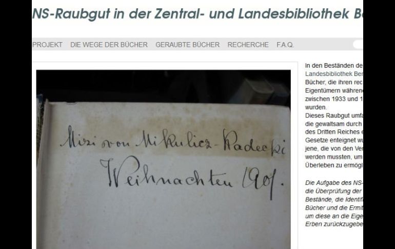 Cultura | Los artículos tienen un valor incalculable para los supervivientes Biblioteca de Berlín busca propietarios de libros robados por nazis Estos bienes incluyen no sólo objetos sustraídos de forma violenta sino también aquellas obras que los perseguidos se vieron obligados a vender para poder huir Por: EFE 7 de junio de 2012 - 08:08 hs El portal se puede consultar bajo la dirección http:raubgut.zlb.de. ESPECIAL / BERLÍN, ALEMANIA (07/JUN/2012).- La Biblioteca Central y Regional de Berlín ha colgado en internet una base de datos para utilizar en la búsqueda de los legítimos propietarios de los más de 200 mil libros susceptibles de ser bienes culturales robados por los nazis, informó hoy esta institución. "Aunque la mayoría de ellos no tengan un gran valor monetario, son de un valor incalculable como objetos de recuerdo para los supervivientes del Holocausto y para los familiares de los asesinados" por el régimen nazi, subrayó la responsable de la colección, Annette Gerlach. El portal, que se puede consultar bajo la dirección http://raubgut.zlb.de, incluye por el momento la descripción detallada de mas de cuatro mil 500 ejemplares. Estos bienes incluyen no sólo objetos sustraídos de forma violenta de manos de sus propietarios por los órganos ejecutivos del Tercer Reich entre 1933 y 1945 o expropiados por leyes discriminatorias, sino también aquellas obras que los perseguidos se vieron obligados a vender para poder huir o simplemente sobrevivir. El proceso arranca con la búsqueda de cada uno de los más de 200 mil ejemplares susceptibles de constituir bienes culturales robados por los nazis en las estanterías de la biblioteca. Una vez localizados, los libros son fotografiados, en especial cualquier marca característica del ejemplar, e incluidos en la base de datos. Un sello, una firma, una dedicatoria, un pequeño comentario al margen, "cualquier pista puede ayudar a restituir un libro robado a su propietario legítimo" o contribuir a determinar que no se trata de un bien sustraído, sino de un ejemplar propiedad de la biblioteca, subrayó Gerlach. Aquellos libros que no contengan ninguna marca distintiva continuarán manteniendo de momento la clasificación de bienes culturales robados. Temas Literatura Libros Holocausto Recibe las últimas noticias en tu e-mail Todo lo que necesitas saber para comenzar tu día Registrarse implica aceptar los Términos y Condiciones