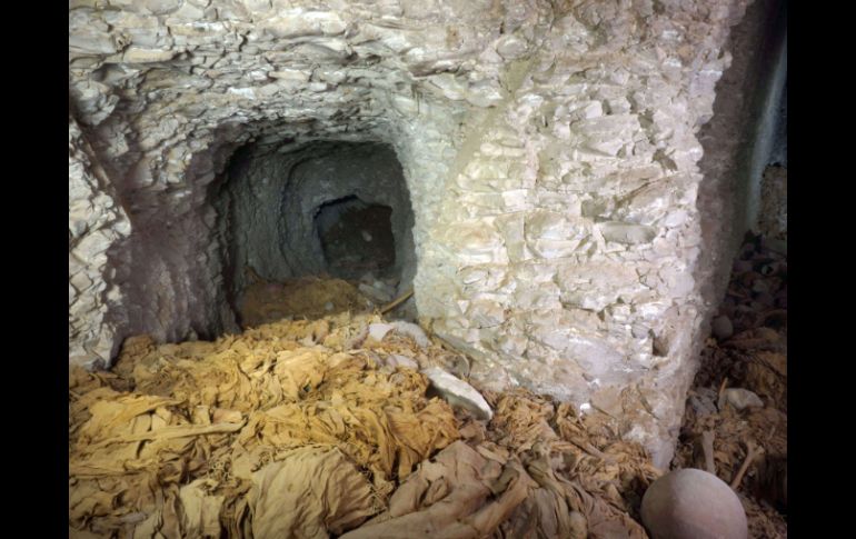 La tumba podría haber servido de fosa común dado el gran número de restos humanos. AFP /