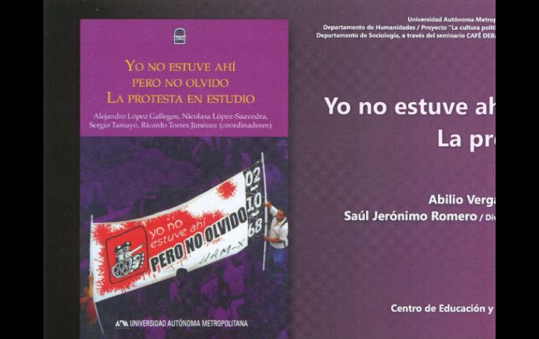 Cultura | El autor asegura que las marchas son huellas indelebles dentro del paisaje urbano Editan libro sobre la cultura de la protesta en México La indagación del tema vale desde el punto de saber por qué la gente sale a las calles a protestar, qué sentido y su importancia Por: NTX 30 de septiembre de 2011 - 21:29 hs Se trata de un libro que implica un trabajo con mucha información, trabajo acumulado que se refleja en 570 páginas. ESPECIAL / CIUDAD DE MÉXICO (30/SEP/2011).- Como resultado del Séptimo Taller de Etnografía Urbana y Cultura Política, se publicó el libro 'Yo no estuve ahí, pero no olvido. La protesta en estudio', coordinado por Alejandro López Gallegos, Nicolasa López-Saavedra y Ricardo Torres Jiménez, que hoy se presentó acompañado de la exposición homónima. Durante la presentación del libro, que se realizó en una sala de la Rectoría General de la Universidad Autónoma Metropolitana (UAM), López Gallegos, doctor en Estudios Sociales con especialidad en Procesos Políticos, comentó que el taller se llevó a cabo entre septiembre y noviembre de 2008. Mencionó que en dicho curso se abordó un evento al mismo tiempo recurrente y excepcional: la marcha para conmemorar los sucesos del 2 de octubre de 1968 en Tlatelolco, es una huella indeleble dentro del paisaje social urbano. "Pero la que se realizó en 2008, en el 40 aniversario de este negro acontecimiento de nuestra historia, también fue excepcional, por, entre otras cosas, ser parte de un trabajo que pretendía entrar en la respuesta de preguntas centrales en la investigación social", aseguró Gallegos. La indagación del tema vale desde el punto de saber por qué la gente sale a las calles a protestar, qué sentido objetivo y subjetivo tiene ésto, su importancia, lo mismo que cómo se entrelaza la memoria y el presente en las consignas coreadas por los manifestantes, anotó. "Múltiples fueron las miradas y múltiples las interpretaciones, así como múltiples fueron finalmente las temáticas contenidas en este libro", apuntó Gallegos, ante la presencia de Enrique Fernández Fassnacht, Rector de la UAM, quien elogió el trabajo de los coordinadores del libro y de los participantes en el taller. Por su parte, el sociólogo José Othón Quiroz mencionó que se trata de un libro que implica un trabajo con mucha información, trabajo acumulado que se refleja en 570 páginas, acompañado por dos DVD que contienen todo el material fotográfico y una presentación audiovisual de la muestra homónima, que antes se exhibió en la UAM Azcapotzalco. Apuntó que por los resultados, 'se nota el trabajo de equipo, estos años de experiencia conjunta de investigaciones que trasciende los límites de grupos o colectivos que va desde la sociología hasta el arte y que realmente es como una orquesta'. Momentos después fue inaugurada la exposición homónima en la Galería 'Manuel Felguérez' de esta institución educativa, que está conformada por más de 40 imágenes, que incluye un fotomural. "La muestra tiene como objetivo darle un discurso curatorial atractivo para los visitantes y que refleje una memoria visual de lo que es la protesta estudiantil", explicó al respecto a Notimex Alejandro López Gallegos. La muestra está conformada por fotografías en mediano formato a color, que fueron captadas durante la marcha del 2 de octubre de 2008 por estudiantes e investigadores. Temas Literatura Investigación cultural Lee También Mariana Etchegaray escribe “Hasta donde suene mi voz” Esto dijo Israel sobre la extradición de Zerón a México Presentan a los cinco finalistas del Premio Adolf B Horn László Krasznahorkai: Libros para adentrarse al mundo del nuevo Nobel de Literatura Recibe las últimas noticias en tu e-mail Todo lo que necesitas saber para comenzar tu día Registrarse implica aceptar los Términos y Condiciones