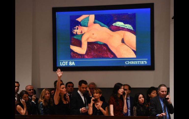 Cultura | La obra fue vendida el lunes en casa de subastas de Christie's, en Nueva York El 'Desnudo' de Modigliani se une a las 10 obras más caras La obra fue vendida el lunes en casa de subastas de Christie's, en Nueva York Por: AFP 10 de noviembre de 2015 - 10:09 hs NUEVA YORK, ESTADOS UNIDOS (10/NOV/2015).- El ''Desnudo acostado'' del pintor italiano Amedeo Modigliani, vendido a un precio récord la noche del lunes, se colocó en segunda posición de las 10 obras de arte más caras de la historia vendidas en subastas, todas por encima de 100 millones de dólares. La lista completa es la siguiente: 1- Pablo Picasso, ''Las mujeres de Argel (versión 0)'', vendido por 179.36 millones de dólares el 11 de mayo de 2015 en Christie's de Nueva York. 2- Amedeo Modigliani, ''Desnudo acostado'', vendido por 170.4 millones de dólares el 9 de noviembre de 2015 en Christie's de Nueva York. 3- Francis Bacon, ''Tres estudios de Lucian Freud'', tríptico vendido por 142.4 millones de dólares el 12 de noviembre de 2013 en Christie's de Nueva York. 4- Alberto Giacometti, ''El hombre que apunta'', escultura vendida por 141.28 millones de dólares el 11 de mayo de 2015 en Christie's de Nueva York. 5- Edvard Munch, ''El grito'', vendido por 119.92 millones de dólares el 2 de mayo de 2012 en Sotheby's de Nueva York. 6- Pablo Picasso, ''Desnudo, hojas verdes y busto'', vendido por 106.48 millones de dólares el 4 de mayo de 2010 en Christie's de Nueva York. 7- Andy Warhol, ''Accidente de auto plateado (doble desastre)'', vendido por 105.44 millones de dólares, 13 de noviembre de 2013 en Sotheby's de Nueva York. 8- Pablo Picasso, ''Muchacho con pipa'', 104.16 millones de dólares el 5 de mayo de 2004 en Sotheby's de Nueva York. 9- Alberto Giacometti, ''El hombre que camina I'', escultura vendida en 65 millones de libras esterlinas (103.93 millones de dólares al cambio de entonces) el 3 de febrero de 2010 en Sotheby's de Londres. 10- Alberto Giacometti, ''Carro'', escultura vendida en 100.96 millones de dólares el 4 de noviembre de 2014 en Sotheby's de Nueva York. Temas Artes Plásticas Pintura Subastas Escultura Modigliani Christies Sotheby´s Lee También El Festín de los Muñecos cumple 20 años; anuncian el cierre de un ciclo Cantos de tierra y exilio: Illapu vuelve a Guadalajara Un octubre artístico para celebrar los 31 años del MUSA Guadalajara: la ciudad que respira arte Recibe las últimas noticias en tu e-mail Todo lo que necesitas saber para comenzar tu día Registrarse implica aceptar los Términos y Condiciones