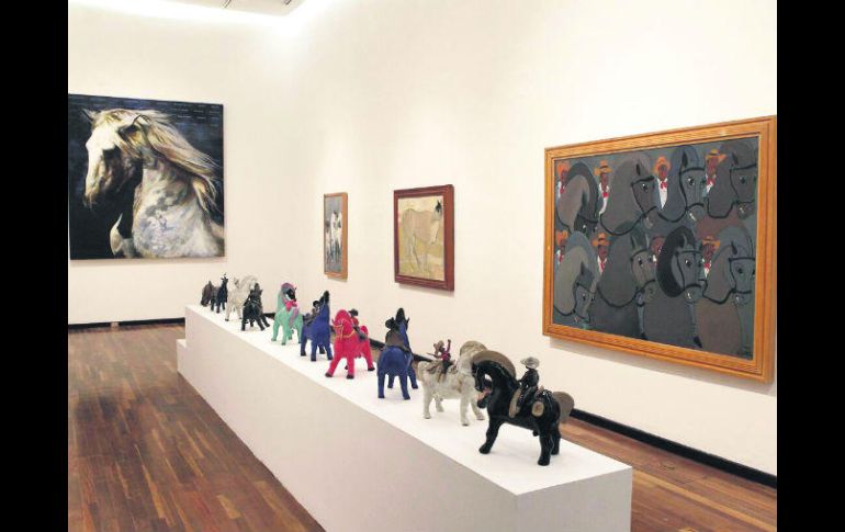 GUADALAJARA, JALISCO (02/AGO/2017).- La cultura es un elemento indispensable en la vida cotidiana de la ciudad, y como tal, ha sido motivo de atención en las páginas de EL INFORMADOR. Por ello, para celebrar el centenario del periódico se contempló una exposición de artes plásticas que engloba temáticamente un tema presente desde los inicios del arte: los caballos.La figura de los equinos ha sido protagonista de innumerables obras de arte, al mismo tiempo que representa el deporte nacional con la charrería. En la exposición “Equinos 100”, que estará en el Instituto Cultural Cabañas, se verá un centenar de obras que tienen a estos animales como eje, con referencias a la mitología, religión y cultura popular.Son cuatro las salas que acogen la exposición “Equinos 100”, dentro del Instituto Cultural Cabañas. La obra “Chamán y caballos en luna llena”, de Ramiro Torreblanca da la bienvenida a los asistentes, acompañado del texto introductorio de Dolores Tapia.Nacido en Guerrero, Torreblanca fue maestro de múltiples pintores en Jalisco, de allí la decisión de colocar su obra al comienzo de la exposición, afirmó Luis Eduardo López, uno de los curadores de la muestra. La primera sala honra a los grandes maestros del siglo XX, con piezas de Ernesto Icaza, Gabriel Flores, José Clemente Orozco, Diego Rivera, María Izquierdo, Rufino Tamayo y Jorge Monroy.De Monroy, destacó López, se observa “Estampida”, una pieza al óleo de gran formato en donde se aprecian los trazos del artista. Para Luis Eduardo López, la diversidad de lienzos ofrece una mirada a la importancia y los diferentes roles que han tenido los caballos en la sociedad: como el comercio, trabajo y deporte. El camino a la segunda sala no es un corte abrupto entre pintores consagrados y artistas contemporáneos, pues se propone un avance paulatino entre cada una de las secciones, afirmó Luis Eduardo. A la mitad del recorrido, resalta una serie de obras que representan a Santiago Matamoros, con obras anónimas del siglo XVII y XVIII.Piezas de volumenLas esculturas aumentan conforme el espectador avanza en el recorrido de “Equinos 100”. La primera en apreciarse es “Modelado de caballo”, de Juan Soriano. Una de las esculturas que tiene un lugar especial es “Saltos hacia afuera”, de Diego Martínez Negrete. Compuesta por una serie de 14 piezas de plata de pequeño formato, esta obra ofrece un retrato artístico de las diferentes posturas que toman los caballos durante los saltos.Dos de los lienzos de mayor tamaño son “Caballeros de luna” y “Cien años de soledad”, ambos de Waldo Saavedra. Sobre este último, Luis Eduardo citó la anécdota de su origen: Waldo conoció a Gabriel García Márquez, autor de “Cien años de soledad”.En la charla, el escritor le dijo al pintor que algún día haría una pintura, al igual que el pintor haría una novela. Tras la muerte del Premio Nobel de Literatura colombiano, Saavedra comenzó el lienzo, donde ha pintado un mundo de personajes (el propio Gabo, el Che, integrantes de los Beatles, Juan Rulfo y varios caballos, por supuesto).Entre el centenar de piezas, el diálogo propuesto incluye “historias de amor”, como las calificó Luis Eduardo López: en “Equinos 100” se encuentran contiguos lienzos de Izquierdo y Tamayo, quienes tuvieron una relación personal. Igualmente se exponen pinturas de la pareja de artistas Domi y Antonio Ramírez.ASISTE“Equinos 100”, exposición para celebrar el primer centenario de EL INFORMADOR, se inaugura el 3 de agosto a las 20:00 horas en el Patio Los Naranjos —concluye el 29 de octubre— en el Instituto Cultural Cabañas. Ocupará las salas 1, 2, 3 y 4.LA EXPOSICIÓN EN IMÁGENES (Fotos: A. Camacho)Saltos hacia afuera. Obra de Diego Martínez Negrete.Bronce. Al frente, caballo de Julio de la Peña; al fondo, “Caballo con rombo”, de José Fors.Esculturas. Los caballos y los cuadros a sus espaldas son obra de Marco Aldaco; la pintura al fondo es de Waldo Saavedra.Candelabro. Obra de Jesús Guerrero Santos: incluye a Santo Santiago, San Martín y San Jorge.Santo Santiago. Estafodo en madera del Siglo XVII, el autor es anónimo.Escultura. Al frente obra de Diego Martínez Negrete; al fondo “Cien años de soledad”, de Waldo Saavedra.