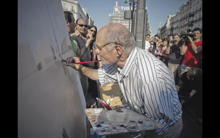 Cultura | Reliza su arte en verano entre las 18:00 y 20:00 hrs El pintor Antonio López retrata de nuevo a Madrid El pintor acaba de empezar este año, que le lleva a retratar de nuevo Madrid desde la céntrica Puerta del Sol Por: EFE 20 de agosto de 2010 - 18:45 hs El pintor indicó que esa luz que necesita sólo se consigue durante el verano.EFE / MADRID, ESPAÑA (20/AGO/2010).- El pintor español Antonio López se encuentra inmerso en una nueva obra que acaba de empezar este año, que le lleva a retratar de nuevo Madrid desde la céntrica Puerta del Sol en un trabajo que necesita "una luz muy especial". En una conversación con EFE, López (1936) indicó que esa luz que necesita sólo se consigue durante el verano, "en los meses de julio y agosto" y, especialmente, "entre las seis y las ocho" de la tarde. Así, desde hace días es habitual ver al maestro de la pintura realista española en la madrileña Puerta del Sol, rodeado por decenas de curiosos que siguen con interés sus trazos. Conocido por su meticulosidad y por la gran cantidad de tiempo que dedica a sus cuadros -ha llegado a pasar décadas pintando una misma obra-, López llegó hoy a la Puerta de Sol, que pinta desde diversos puntos, a las 16.10 horas GMT. El pintor se situó, un día más, sobre las marcas que ha dejado delineadas en el suelo, y que le indican la ubicación exacta desde la que pintar. Ataviado con unos pantalones cortos de color beige, camiseta a rayas remangada hasta los codos, gorro rojo y gafas de ver, el Premio Príncipe de Asturias de las Artes comienza a realizar los primeros trazos de movimientos lentos bajo la atenta mirada de un centenar de curiosos, entre turistas y paseantes. No han transcurrido ni cinco minutos cuando tímidamente el veterano artista pide al público que se aparte, porque le es imposible ver. Pero el espacio que queda libre tras el aviso no tarda ni un minuto en volver a ser ocupado por nuevos curiosos. Regla en mano, López mira hacia el edificio que sostiene el conocido anuncio del "Tío Pepe" en la Puerta de Sol y traza con ayuda de una larga regla diferentes líneas orientativas sobre el lienzo. Luego despliega sus pinceles y delinea diferentes trazos de tonos pasteles -azules, marrones y marfiles- sobre el cuadro. El círculo de gente alrededor del artista se va haciendo cada vez más numeroso, decenas de brazos se elevan para intentar capturar una fotografía del maestro en plena actividad. Y el pintor vuelve a insistir, esta vez más enérgico, que se aparten porque así le es imposible pintar. López sabe que llama la atención y asume que el público se acercará para verlo desarrollar su arte. "Sé que es así", responde el maestro a la pregunta sobre si no se siente agobiado al estar completamente rodeado de curiosos. "La gente debe estar allí, y yo voy a donde está la gente", añade. La frase más recurrente entre los que se aproximan, es la que indica admiración ante la capacidad del artista para pintar rodeado de decenas de personas. "Yo no podría pintar entre tanta gente", repiten muchos. A las 20.00 horas (18.00 GMT) en punto en el reloj de la Puerta del Sol, el artista retira el cuadro, recoge el trípode y sus instrumentos. Alguno lo aplauden, y otros no dudan en seguirlo mientras sube por la calle aledaña a guardar el lienzo. Temas Artes Plásticas Exposiciones Pintura Pintores Recibe las últimas noticias en tu e-mail Todo lo que necesitas saber para comenzar tu día Registrarse implica aceptar los Términos y Condiciones