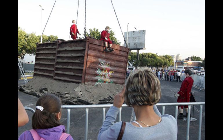Cultura | Por la tarde, el perro azteca Xolo irá en busca de la Pequeña gigante Emerge sarcófago de la tierra Por la tarde, el perro azteca Xolo irá en busca de la Pequeña gigante al cruce de las avenidas Hidalgo y 16 de Septiembre Por: EL INFORMADOR 26 de noviembre de 2010 - 02:05 hs Seis personajes custodian el sarcófago de El Campesino. A.CAMACHO / GUADALAJARA, JALISCO (26/NOV/2010).- Ante la sorpresa de vecinos, transeúntes y automovilistas, un sarcófago comenzó a emerger de la tierra 200 años después de haber sido sepultado con El Campesino en su interior. La tercera pista de la historia El gigante de Guadalajara fue dada a conocer ayer por la mañana, con lo que ya comienza a tomar forma el performance que la compañía francesa Royal de Luxe realiza en Guadalajara desde el martes pasado. “¿Qué es eso, mamá?”, preguntó Adonahi Verges, de ocho años de edad, tras salir de la escuela. “Es la historia de los gigantes que están en Guadalajara. Ahí dentro debe estar un señor enorme que fue enterrado hace muchos años”, respondió su madre, Josefina Vilches. La aparición del sarcófago se suma al mural que “cayó del cielo” el pasado martes 23 de noviembre frente al Teatro Degollado, y a la colocación del bloque de hielo que contiene al perro Xolo, en la Plaza del Santuario de Guadalupe, un día después. Las tres pistas son el preámbulo de la historia que Royal de Luxe comenzará a desarrollar de hoy al domingo 28 de noviembre, con su figura central, la Pequeña gigante, en las principales calles, avenidas y plazas de la ciudad. Esta mañana Xolo, tras quedar liberado del bloque de hielo que lo mantuvo aprisionado durante tres días, irá en busca de la niña gigante, que se encuentra dormida en el cruce de las avenidas Hidalgo y 16 de Septiembre, luego de que arribó a la ciudad durante las primeras horas de este viernes. Según la historia, hace 200 años, cuando Hidalgo dio el Grito de Dolores, su voz resonó en todo México, más allá y a través del tiempo. Cuenta la leyenda que, en aquella época, un gigante en la montaña lo escuchó. Era un campesino solitario de madre indígena y padre criollo. Cuando el gigante apareció ante el ejército rebelde, los hombres tuvieron tanto miedo que, para evitar que lo mataran, Hidalgo lo mandó meter en un sarcófago y lo escondió en algún lugar de Guadalajara. No se sabe a ciencia cierta quienes le ayudaron con esta tarea porque murieron en alguna de las batallas que sacudían al país. Cien años más tarde, en 1910, la sobrina de este Gigante, llamada Pequeña gigante, se instaló en el Estado de Morelos. Algunos cuentan que ella había hecho el viaje para buscar a su tío. Qué Dios decidió este año dejar caer desde el cielo en la ciudad de Guadalajara un mural que podría haber sido creado por Diego Rivera para advertir a la Pequeña gigante que había llegado la hora de conocer a su tío ¿Acaso este sarcófago que emerge es el del tío que regresa a la vida? Poco a poco, el sarcófago estará sobre la superficie por completo. Hasta ahora se ve solamente una parte del contenedor. El sarcófago es custiodado por seis personajes vestidos con trajes rojos, que se muestran inmóviles. Hasta ayer, aproximarse al contenedor era todo un reto para los espectadores, ya que se encontraba justo en medio de dos vialidades (avenidas Alcalde y Ávila Camacho) sobre las que la afluencia vehicular es bastante densa. “Hay que acercarnos a las vallas”, decía José Luis a sus dos amigos que lo acompañaban. “Espera. No podemos cruzar, mejor venimos mañana (hoy), cuando estén cerradas las avenidas y el sarcófago esté complemente sobre el suelo”, replicó Gerardo Guzmán, quien ha estado bien enterado sobre la historia de gigantes que se cuenta en Guadalajara. “No me imagino a los gigantes caminando por las calles. Ha de ser impresionante verlos. Simplemente haber visto al el perro congelado fue muy emocionante”, explicó Hugo Benítez, quien acompañaba a sus dos amigos. Las afectaciones viales hasta el día de ayer fueron menores. Los automovilistas se mostraron en gran medida pacientes y apenas en un par de ocasiones se escuchó el cláxon, en momentos en que el tráfico suele estar pesado, principalmente al mediodía. Algunos conductores atendieron las indicaciones que oficiales de la Secretaría de Vialidad les daban al paso de los vehículos sobre Avenida Alcalde. “Si va para el rumbo de Plaza Patria por Ávila Camacho, rodee la glorieta porque está cerrado aquí”, repetía un oficial. Otros automovilistas hicieron caso omiso de las mantas que colocó el Ayumtamiento de Guadalajara en las aproximaciones de las calles, avenidas y plazas, por donde El gigante de Guadalajara pasará entre hoy y el domingo. Para hoy Se prevé que a las 14:00 horas, Xolo, el perro azteca, despierte con música de mariachi y salga de la Plaza del Santuario de Guadalupe en busca de la Pequeña gigante, quien pasó la noche del jueves dormida a la intemperie en el cruce de las avenidas Hidalgo y 16 de Septiembre, tras su arribo a la ciudad, procedente del Estado de Morelos. A las 14:30 horas, el perro despierta a la niña, quien se viste con ropa mexicana para comenzar la búsqueda de su tío. Antes llegará al mural de piedra que se encuentra frente al Teatro Degollado (calle Belén). Posteriormente, se irán a dormir al terreno del Circo de los hermanos Fuentes Gasca (Ávila Camacho y Magisterio),a la vista de la gente, la cual podrá verlos descansar. PARA TOMAR EN CUENTA Hoy Comienza el recorrido de los gigantes por avenida Alcalde - 16 de Septiembre a las 14:30 horas, se dirigen al Teatro Degollado, regresan a la Plaza del Santuario y termina su recorrido a las 17:30 horas en el Circo, ubicado en Ávila Camacho y Magisterio. Sábado 27 Habrá dos recorridos por Alcalde; uno a las 10:00 horas, y el segundo a las 16:00 horas. Por la mañana la Pequeña gigante y Xolo se van del circo a las 10:00 horas al cruce la