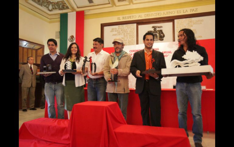 Cultura | El monto para el primer premio es de 600 mil pesos y para los demás de 120 mil Entregan I Premio de Escultura Juan Soriano El arquitecto urbanista Juan Palomar Verea leyó la determinación del jurado y los requisitos que deberían tener las piezas ganadoras Por: EL INFORMADOR 30 de julio de 2012 - 15:41 hs Los ganadores posan con su obra. / GUADALAJARA, JALISCO (30/JUL/2012).- Cuando subió al estrado el ganador del primer lugar del I Premio de Escultura Juan Soriano, Alfredo López Casanova, se mostró gustoso de por el esfuerzo de llevar el arte a las calles y se entrevere con las personas. Llamó a ver la ciudad como la gran casa de todos. Apostó porque en la segunda edición de escultura urbana, los esfuerzos sean dirigidos a llevar obras a los barrios que tienen mayor concentración de pobreza. Al terminar su participación, con voz firme y lenta, el creador de "Ave" dedicó su galardón a los periodistas asesinados y desaparecidos en el sexenio. La ceremonia se llevó a cabo en el Salón de Cabildo del Ayuntamiento de Guadalajara minutos después de las 11:00 horas. La mesa estuvo conformada por el artista plástico Alejandro Colunga; el presidente municipal de Guadalajara, Francisco Ayón; el arquitecto urbano Juan Palomar Verea y la titular de la Secretaría de Cultura, Myriam Vachez. En el evento estuvieron presentes Balo Pulido, José Francisco Bernal, Pablo Lecuanda Miloslavich, Selene Morales Marín y Arturo Valencia González, quienes conformaron toda la terna de ganadores y cuyo premio asciende a los 120 mil pesos. Francisco Ayón puso de relieve la trayectoria artística de Juan Soriano cuyo trabajo se basa en el "lirismo" y que ha recibido ingentes premios a nivel nacional e internacional. Dijo que la actual administración ve el arte como inclusión que trasciende cualquier visión política. Resaltó que el Premio Juan Soriano se creó con doble intención: por una parte, para rendir homenaje a Juan Soriano; y para incentivar la creación escultórica de los tapatíos. Por su parte, Myriam Vachez dijo que si algo distingue a una ciudad moderna de otra es su espacio público y cómo se apropia la población de éste y cómo el gobierno trabaja para hacerlo digno. Vachez afirmó que para la presente administración, la mejora de los espacios públicos fue una tarea constante realizada con el fin de que los tapatíos estén orgullosos de su ciudad. EL INFORMADOR / GONZALO JÁUREGUI Temas Artes Plásticas Escultura Juan Soriano Lee También ¿Cuál es el mercado techado más grande de Hispanoamérica? La UdeG celebra centenario de su refundación con un homenaje a sus figuras destacadas Abogado de presunta víctima espera vinculación a proceso de Omar "N" Esta es la verdadera identidad del "Juan Gabriel" captado en París Recibe las últimas noticias en tu e-mail Todo lo que necesitas saber para comenzar tu día Registrarse implica aceptar los Términos y Condiciones