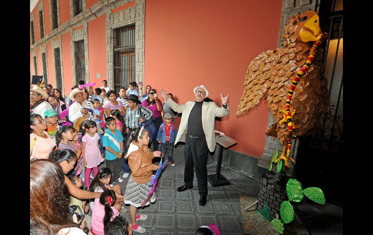 Cultura | Las coloridas figuras recrean la evolución del Escudo Nacional a través del tiempo Esculturas de águilas hechas por niños invaden el Palacio Nacional Las coloridas figuras recrean la evolución del Escudo Nacional a través del tiempo Por: NTX 21 de septiembre de 2014 - 21:38 hs El cuentacuentos Guillermo Henry rodeado de niños realiza recorrido por el recinto. ESPECIAL conaculta.gob.mx / CIUDAD DE MÉXICO (21/SEP/2014).- Una decena de águilas hechas por niños mexicanos con la técnica de cartonería conforman la muestra '¿Dónde se paró el águila?', inaugurada la víspera en los pasillos de Palacio Nacional, donde se podrá visitar hasta el 30 de noviembre. La exhibición está conformada por figuras tridimensionales del águila real, las cuales recrean la evolución que ha tenido con el paso del tiempo el icono central del Escudo Nacional mexicano. Durante la ceremonia, de la cual da cuenta el Consejo Nacional para la Cultura y las Artes ( Conaculta), Edwin Triujeque, secretario ejecutivo del programa Alas y Raíces, destacó que la idea fue acercar a los niños a la historia de México de una manera creativa. Durante la jornada, el cuentacuentos Guillermo Henry, rodeado por más de 50 niños, realizó un festivo primer recorrido por el Patio central y por el jardín del recinto, lugares donde se sitúan las esculturas. Al llegar al jardín trasero, los menores de edad junto con sus familiares, se sentaron para escuchar música del Trío Aguacero y del grupo de son jarocho Los Parientes de Playa Vicente. José Ramón San Cristóbal, director general de Promoción Cultural y Acervo Patrimonial de la Secretaría de Hacienda y Crédito Público, expresó que era una gran alegría recibir a los niños en el Palacio Nacional, y puntualizó: "Estas 10 águilas monumentales resumen 500 años de evolución del símbolo". Las coloridas figuras se realizaron con papel kraft y pinturas de agua en un taller impartido en el Museo del Caracol, ubicado en Chapultepec, que fue dirigido por el maestro cartonero Sotero Lemus, quien estuvo a cargo de más de 500 niños y niñas. Temas Artes Plásticas Exposiciones Conaculta Escultura Niños Lee También Un museo vivo: Experiencias y arte en el Cabañas Unicef revela cifras de la obesidad infantil en México La UdeG celebra centenario de su refundación con un homenaje a sus figuras destacadas Ángel Covarrubias, la voz infantil que conquistó Zapopan Recibe las últimas noticias en tu e-mail Todo lo que necesitas saber para comenzar tu día Registrarse implica aceptar los Términos y Condiciones