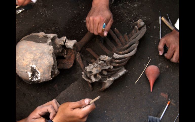 Cultura | Los restos pertenecen a la cultura olmeca Hallan osamentas de 800 años de antigüedad en Cholula Por las características físicas se dedujo que los huesos encontrados corresponden a un hombre de 35 años que tenía las piernas flexionadas Por: SUN 25 de enero de 2013 - 20:29 hs En suma, hay 30 osamentas o más en la región cholulteca donde se ejecutan algunas obras públicas. SUN / CHOLULA, PUEBLA (25/ENE/2013).- Hasta esta semana un total de treinta osamentas con una antigüedad de 800 años fueron descubiertas en el Centro Histórico de San Andrés Cholula, en Puebla. Fuentes extraoficiales señalaron que los restos pertenecen a la cultura olmeca y corresponden al periodo postclásico-medio. Por las características físicas se dedujo que los huesos encontrados la tarde del jueves pasado corresponden a un hombre de aproximadamente 35 años de edad que tenía las piernas flexionadas. Ashuni Romero, arqueólogo del Instituto Nacional de Antropología e Historia (INAH), confirmó el descubrimiento más reciente aunque mantuvo en secrecía el número exacto y antigüedad de las piezas. El especialista argumentó que el INAH emitirá un comunicado durante las siguientes horas para detallar el caso. Cabe recordar que en diciembre pasado, se encontró una docena de osamentas del periodo postclásico que igualmente datan de hace 800 años. Durante los trabajos para la colocación de drenaje en este municipio poblano se realizó el hallazgo de los 12 vestigios que se atribuyen a personas adultas y niños. Esta ocasión y la anterior, se ubicaron en la calle Maximino Ávila Camacho de la ciudad cholulteca, donde hubo asentamientos de culturas prehispánicas como olmecas, toltecas-chichimecas. En suma, hay 30 osamentas o más en la región cholulteca donde se ejecutan algunas obras públicas y que, durante la excavación, han dejado a la vista los vestigios. Temas INAH Antropología Patrimonio Recibe las últimas noticias en tu e-mail Todo lo que necesitas saber para comenzar tu día Registrarse implica aceptar los Términos y Condiciones
