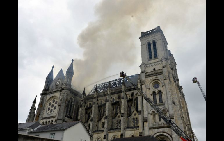 Cultura | El fuego comenzó antes de iniciar misa, pero la gente fue evacuada del lugar Incendio daña parte del techo de basílica Saint-Donatien de Nantes El fuego comenzó antes de iniciar misa, pero la gente fue evacuada del lugar Por: EFE 15 de junio de 2015 - 06:56 hs PARÍS, FRANCIA (15/JUN/2015).- Un incendio desencadenado hoy en el techo de la basílica Saint-Donatien de Nantes, en el oeste de Francia, acabó hoy con parte de la estructura de ese edificio, que data del siglo XIX. El fuego, según indicó a la cadena "BFM TV" el vicario general de la diócesis de Nantes, Benoît Bertrand, comenzó poco después del inicio de la misa, pero la gente fue evacuada y no se han producido víctimas. El diario "Ouest-France" precisó en su edición digital que se trata de un accidente fortuito, que tuvo lugar en un momento en que distintos obreros reparaban el techo de ese centro religioso. Esta basílica es una de las dos con las que cuenta la ciudad, en la que hay además una catedral, y fue construida entre 1872 y 1889, sobre un antiguo edificio que se remontaba al siglo XVIII. Temas Francia Incendios Patrimonio Lee También Bomberos de Guadalajara controlan incendio en Lomas de Polanco Perro tira un cilindro de gas LP y provoca explosión en Zapopan Pipa se vuelca e incendia en Tlaquepaque, colapsa vialidades Bomberos de Guadalajara controlan incendio en Jardines del Sur (VIDEO) Recibe las últimas noticias en tu e-mail Todo lo que necesitas saber para comenzar tu día Registrarse implica aceptar los Términos y Condiciones