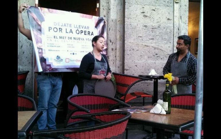 Cultura | Cantantes promocionan la temporada de ópera 2013-2014 que estará en vivo desde el Met La ópera se hace presente en el Café Degollado Cantantes promocionan la temporada de ópera 2013-2014 que estará en vivo desde el Met de Nueva York Por: EL INFORMADOR 4 de febrero de 2014 - 18:13 hs Dos meseros cantan para atraer la atención de las personas. / GUADALAJARA, JALISCO (04/FEB/2014).- En el Café Degollado es una tarde tranquila, la gente ahí presente bebe café, platica, escucha música. Una joven mesera se acerca a una de las mesas, de repente comienza a escucharse una voz melodiosa interpretando una canción de ópera, todos voltean, buscando el origen, se sorprenden al ver que es la joven mesera quien los está deleitando con su voz. La joven continúa cantando mientras se mueve por las mesas, en sus manos trae una charola. La gente comienza a reunirse, la observa con detenimiento, incluso los niños han dejado de juguetear para escuchar con atención. La canción termina, la gente aplaude. Inmediatamente ella sigue como si nada, interpreta otra canción. La gente sigue y sigue llegando, ya son más de 40. La mujer que cantaba norteño en ese momento en la Plaza de la Liberación ha perdido la atención de su público, quienes ahora voltean con atención hacia el Café. La 'mesera' cantante termina su canción y en medio de aplausos una nueva sorpresa aparece: un hombre con mandil también de mesero aparece en la escena y empieza una nueva interpretación. Todos lo miran sorprendidos. Volantes comienzan a ser repartidos en los que promocionan la temporada de ópera 2013-2014 que estará en vivo desde el Met de Nueva York a partir del 8 de febrero en el Teatro Diana, el público los lee con atención mientras de fondo escuchan al hombre que con una voz casi de ángel se mueve entre las mesas del lugar. Aplausos y más aplausos cuando la interpretación del hombre termina. Una nueva comienza, hay más público; jóvenes, adultos mayores, familias completas e incluso turistas alemanas contemplan el espectáculo. El 'mesero' se reúne con la 'mesera' y entablan juntos una nueva canción. Una lona es desplegada en el fondo en la que se lee "déjate llevar por la ópera". La interpretación termina, los cantantes se retiran. El público se mira entre sí algo decepcionado, se quedaron con ganas de más. Las personas comienzan a irse, una madre de familia ofrece su versión de la última canción a modo de silbido mientras sus hijos la observan atentos mientras cruzan la calle. EL INFORMADOR / PAOLA CORTÉS Temas Artes Escénicas Teatro Diana Ópera Lee También La UdeG celebra centenario de su refundación con un homenaje a sus figuras destacadas Los mejores eventos de entretenimiento del 10 al 16 de octubre de 2025 Lista de conciertos en Guadalajara que están al 2x1 en Ticketmaster OFJ prepara su tercera temporada llena de sorpresas y alma jalisciense Recibe las últimas noticias en tu e-mail Todo lo que necesitas saber para comenzar tu día Registrarse implica aceptar los Términos y Condiciones