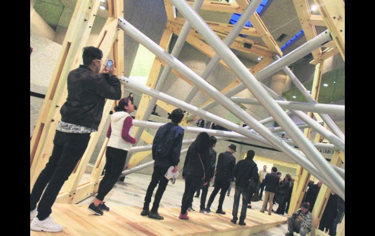 GUADALAJARA, JALISCO (01/OCT/2016).- El Instituto Nacional de Bellas Artes (INBA) y la Secretaría de Cultura de la Ciudad de México presentaron la escultura efímera “Cubo transitable de seis metros. Formado por seis triángulos egipcios conectados por 12 tubos”, del arquitecto Teodoro González de León (1926-2016), en el Museo Tamayo Arte Contemporáneo.La monumental pieza fue diseñada por el creador mexicano, con motivo de las celebraciones por sus 90 años, que se cumplieron en mayo pasado, en ocasión con la que se organizó un Homenaje Nacional, para reconocer la vida, obra y aportaciones artísticas de uno de los arquitectos más notables y prolíficos en México de mediados del siglo XX y hasta hoy.La directora del INBA, María Cristina García Cepeda, mencionó que se trata de una escultura en la que el público podrá transitar y experimentar las impresiones y emociones que Teodoro González de León deseó compartir.Se trata dijo, de un ejercicio, de un testimonio de su ingenio y sensibilidad, de talento y dotes creativas.Señaló que es una pieza con motivo de los 90 años del arquitecto, y recordó que cuando “fuimos a verlo, platicamos de varios proyectos y que más allá de la arquitectura y otros trabajos, le propusimos elaborara una pieza en la que mostrara su lado plástico.“Me respondió: déjeme pensarlo. Y a los dos días me llamó muy entusiasmado y me dijo, ‘Maraki me has puesto realmente a pensar y estoy entusiasmado y hare una obra escultórica para que sea expuesta en el Museo Tamayo’”, dijo la titular del INBA, quien reveló que desde ese instante el artista comenzó a trabajar en su próxima creación.“Nos decía que haría una escultura transitable y disfrutable, que el público la sienta; y no me imaginaba, todo lo vimos en bocetos, en trazos; él parecía un niño chiquito entusiasmado con un nuevo juguete”, refirió.El proyecto escultórico consiste en un cubo de grandes dimensiones (6x6x6 metros) fabricado en madera de pino y tubos de acero, conformado por seis triángulos egipcios.Los dos grupos de tres triángulos se unen entre sí a través de 12 tubos de acero, apoyados en seis nodos de la hipotenusa, que dan forma a un paraboloide hiperbólico, el cual otorga la sensación de un túnel, el que podrá ser recorrido por el público.Todo un retoSegún el INBA, la proyección, el diseño y la construcción de la pieza resultó un reto desde el punto de vista arquitectónico y de ingeniería, con el fin de lograr la estabilidad de las armaduras en posición angulada y que pudieran unirse entre sí.La experiencia y los conocimientos de Teodoro González de León le permitieron explorar formas nuevas que facilitaron de manera lúdica materializar el proyecto.Para el secretario de Cultura capitalino, Eduardo Vázquez Martín, el cubo está llamado a ser un icono de la ciudad y agregó que tendrá una vida de peregrinaje, pues de este museo (Tamayo Arte Contemporáneo) “se trasladará al de la Ciudad de México y estamos trabajando para que encuentre una casa o recinto en la ciudad, de manera que los habitantes la reconozcan y forme parte de ese universo Teodoro González de León”.La obra estará expuesta hasta el próximo 30 de octubre y estará acompañada por una serie de actividades: visitas guiadas, recorridos por edificios del arquitecto homenajeado y talleres para todo el público.Entre los trabajos arquitectónicos de González de León que destacan el Museo Rufino Tamayo, El Colegio de México, la Universidad Pedagógica Nacional, Arcos Bosques Corporativo, Torre I “El Pantalón”, el Museo Universitario de Arte Contemporáneo (MUAC) y la remodelación del Auditorio Nacional, entre otros.