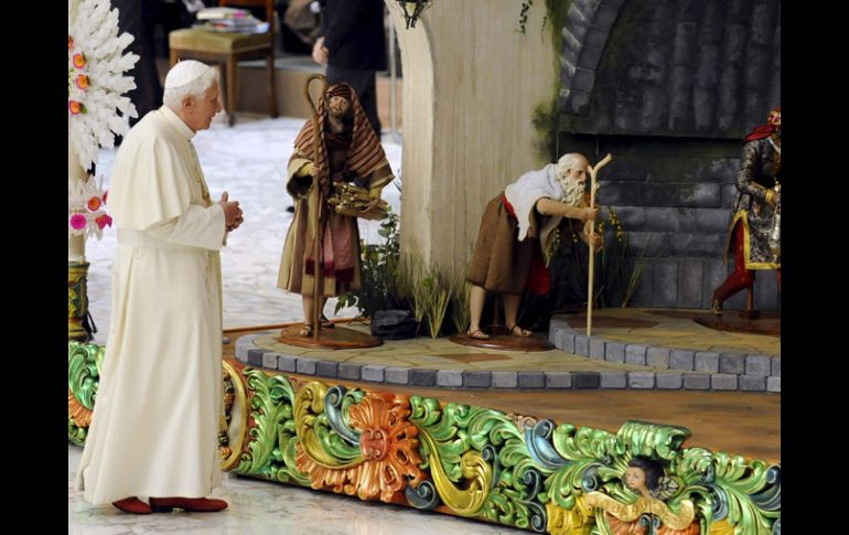 Cultura | Expresó su gratitud hacia los guanajuatenses ante unas ocho mil personas Papa Benedicto XVI agradece regalo de artesanos mexicanos El nacimiento hecho de figuras de cera de hasta un metro de altura forma parte de la exposición ''Navidad mexicana del Bicentenario. Guanajuato en el Vaticano'' Por: EFE 15 de diciembre de 2010 - 15:05 hs El papa Benedicto XVI contempla el belén fabricado por los artesanos mexicanos de Guanajuato. EFE / CIUDAD DE MÉXICO (15/DIC/2010).- El papa Benedicto XVI agradeció hoy a los artesanos de Guanajuato (México) el nacimiento que le han regalado y que ha sido instalado en el atrio del Aula Pablo VI, donde permanecerá durante todo este tiempo de Navidad. El agradecimiento lo expresó ante unas ocho mil personas que asistieron en el Aula Pablo VI a la audiencia pública de los miércoles, entre ellas los artesanos de Guanajuato, encabezados por el gobernador de ese estado mexicano, Juan Manuel Oliva Ramírez, y el arzobispo de León, José Guadalupe Martín Rábago. El nacimiento, de figuras de cera de hasta un metro de altura, forma parte junto con otras mil 250 piezas de la exposición ''Navidad mexicana del Bicentenario. Guanajuato en el Vaticano'', con la que los artesanos guanajuatenses celebran en el Vaticano el bicentenario de la independencia de México y el centenario de la revolución mexicana. El portal de belén -de 18 metros cuadrados- y las piezas de artesanía se exhibirán hasta el próximo 2 de febrero en el Atrio del Aula Pablo VI y los Museos Vaticano, respectivamente, y después serán mostrados de forma permanente en el museo etnológico de los Museos Vaticanos. Entre las piezas hay un centenar de cestería que representan flores de Nochebuena elaboradas de palma y flores de carrizo, unas 500 esferas de cerámica y 200 figuras de tibores, pájaros y palomas realizados en técnica mayólica. También se encuentran 350 piezas en metal -entre esferas, ángeles, palomas, estrellas, corazones, candelabros y medallones- y dos de madera, que representan una cenefa tallada. Asimismo ha sido colocada una réplica de la fachada de la iglesia de la localidad de Dolores Hidalgo, considerada un edificio emblema de la independencia de México, que forma parte del nacimiento. Las obras han sido realizadas por artesanos de Dolores Hidalgo, Salamanca, Tierra Alta, San Miguel de Allende, Tarandacuao y otras localidades de Guanajuato. La presencia del estado mexicano en el Vaticano se completa con una muestra fotográfica que incluye cincuenta obras del artista mexicano Gibrán Peña. De las 50 fotografías de Peña, que ilustran diferentes lugares históricos del estado de Guanajuato, quince se exponen en los Museos Vaticano, veinte a lo largo de la Vía de la Conciliación -la amplia calle que une el Vaticano con Italia- y el resto en la entrada del Aula Pablo VI. Ya el pasado año, el estado de México adornó el Vaticano con un nacimiento de barro y estaño, un árbol de Navidad y un "árbol de la vida" , obras de artesanos locales. El pesebre estaba compuesto por veinticinco figuras de barro decoradas con piezas de estaño, ante un decorado inspirado en las típicas haciendas mexicanas. Temas Papa Benedicto Patrimonio Cultura Mexicana Navidad 2010 Lee También Zague aseguró que "no existe calidad" en el futbol mexicano La aparente estabilidad mexicana Nos quedamos con sensaciones cortas: Eduardo Arce Hay jugadores que no estuvieron a la altura: Javier Aguirre Recibe las últimas noticias en tu e-mail Todo lo que necesitas saber para comenzar tu día Registrarse implica aceptar los Términos y Condiciones