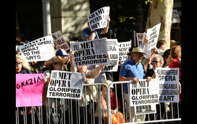 Cultura | Protestan contra 'La muerte de Klinghoffer' por glorificar a asesinos Políticos protestan contra ópera en la Met en Nueva York Inconformes protestan contra presentación de 'La muerte de Klinghoffer', acusando a la obra de glorificar a los asesinos palestinos de un discapacitado judío Por: AP 20 de octubre de 2014 - 20:23 hs Los manifestantes llevan letreros que dicen 'La Met glorifica a los terroristas'. AP / E. Agostini NUEVA YORK, ESTADOS UNIDOS (20/OCT/2014).- Políticos como el ex alcalde de Nueva York Rudolph Giuliani y los congresistas Carolyn Maloney y Peter King se unieron el lunes a una multitud de manifestantes afuera de la Ópera Metropolitana como parte de las protestas contra una obra que se concentra en la muerte de un hombre judío y que, según sus críticos, glorifica a sus asesinos palestinos. Unas 400 personas se reunieron detrás de las barricadas entonando el cántico "Vergüenza en la Met" y llevando pancartas en las que se leía "La Met glorifica el terrorismo" antes de la primera presentación programada de "La muerte de Klinghoffer". La ópera se basa en el asesinato en 1985 del pasajero discapacitado Leon Klinghoffer en el Achille Lauro, un crucero italiano secuestrado por cuatro miembros del Frente para la Liberación de Palestina. El pasajero de 69 años recibió un disparo en su silla de ruedas y fue empujado por la borda. La ópera creada en 1991 por el compositor estadounidense John Adams ha despertado controversia desde febrero, cuando se programó su presentación en esta temporada. La primera gran manifestación se produjo cuando la Met inauguró la temporada el 22 de septiembre. Entonces, manifestantes portaron carteles en los que decía "Ópera de Klinghoffer/Propaganda disfrazada de arte" y abuchearon a los espectadores que llegaban. Giuliani, de pie al otro lado de la calle del Lincoln Center el lunes, dijo que quería advertir a la gente que la ópera Klinghoffer "es una obra distorsionada". "Si usted escucha, usted verá que el contexto emocional de la ópera romantiza realmente a los terroristas", dijo. "... Y romantizar el terrorismo sólo lo ha convertido en una mayor amenaza". Pero el experto en ópera Fred Plotkin dice que la obra muestra a los Klinghoffer como la columna moral. "¿Presenta esta ópera a los asesinos bajo una luz favorable? No", dice. "¿Son los Klinghoffer de lejos los personajes más empáticos en la ópera, aquellos por los que más nos preocupamos? Yo creo que sí". Más temprano en la jornada, un rabino prominente en Nueva York encabezó una vigilia de oración. Adolescentes de escuelas judías acompañaron al rabino Avi Weiss en un sitio de plegaria improvisado frente a la Met. A lo largo del día, discutieron escrituras hebreas en turnos de unos 12. La Met ya canceló las transmisiones en vivo previstas para noviembre en estaciones de radio y salas de cine y teatro de decenas de países, ante la presión de grupos judíos, especialmente la Liga Antidifamación (ADL por sus siglas en inglés), cuyos miembros dicen que la música romantiza a los asesinos de Klinghoffer, junto con el inaugural "Coro de exiliados palestinos". El gerente general de la Met Peter Gelb advirtió que las transmisiones podrían generar antisemitismo en ultramar. Las hijas de Klinghoffer, Lisa e Ilsa Klinghoffer, emitieron una declaración que se incluirá en el programa de mano de la ópera, anunció la ADL en un comunicado. En parte dice que aunque creen que el arte "puede desempeñar un papel crítico para examinar y comprender sucesos mundiales importantes, 'La muerte de Klinghoffer' no lo hace. Presenta igualdades morales falsas sin contexto, y no ofrece ningún verdadero entendimiento a la realidad de la historia y el insensato asesinato de un judío estadounidense". "Nuestra familia no fue consultada por el compositor y libretista y no tuvo ningún papel en el desarrollo de la ópera", agregaron las hermanas. Plotkin apunta que muchos opositores de "Klinghoffer" nunca han visto la ópera. La Met la promociona con el lema: "Mírala. Entonces decide". "La muerte de Klinghoffer" se estrenó en Bruselas en 1991, con poca controversia, y posteriormente se presentó en varias ciudades europeas así como en la Academia de Música de Brooklyn, donde generó tanto elogios como críticas, especialmente de las hijas de Klinghoffer. "La muerte de Klinghoffer" tiene presentaciones previstas en la Met hasta el 15 de noviembre. Temas Artes Escénicas Ópera Manifestaciones en el mundo Nueva York Recibe las últimas noticias en tu e-mail Todo lo que necesitas saber para comenzar tu día Registrarse implica aceptar los Términos y Condiciones