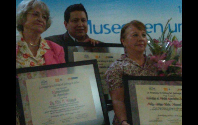 Cultura | Recuerdan a Weigand Reconocen labor museística de Ricardo Duarte y Gladys Abascal El galardón lo otorga la Secretaría de Cultura de Jalisco Por: EL INFORMADOR 18 de mayo de 2012 - 19:00 hs La ceremonia se lleva a cabo cada año dentro de las actividades del Día Internacional del Museo. / GUADALAJARA, JALISCO (18/MAY/2012).- Los museos son el motivo de trabajo de dos promotores de la ciudad: Ricardo Duarte, director de Cultura de Tonalá, y Gladys Abascal, curadora del área de Etnografía del Museo Regional de Guadalajara, quienes fueron reconocidos esta tarde -de viernes- con el Galardón al Mérito Museístico 2012, que otorga la Secretaría de Cultura (SC) de Jalisco. La ceremonia, que se lleva a cabo cada año dentro de las actividades del Día Internacional del Museo, estuvo encabeza por la directora de Vinculación de la SC del Estado, María Elena Ramos, quien destacó el trabajo de los galardonados. Ricardo Duarte tomó la palabra para expresar que cree en los museos como "detonante de la libertad de pensamiento". Añadió que "este galardón es para mi familia extendida en los museos, donde he pasado". El homenaje póstumo estuvo dedicado al arqueólogo y descubridor de la Zona Arqueológica Guachimontones, Phil Weigand. Este reconocimiento fue entregado a la esposa del investigador, Arcelia García. EL INFORMADOR / MAYRA TORRES DE LA O Temas Museos Homenaje Secretaría de Cultura de Jalisco Artes Visuales Recibe las últimas noticias en tu e-mail Todo lo que necesitas saber para comenzar tu día Registrarse implica aceptar los Términos y Condiciones