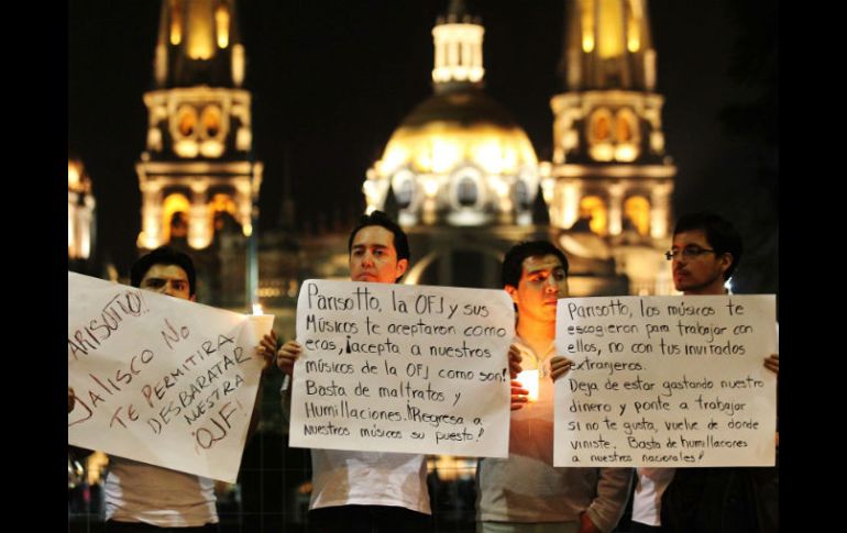 Cultura | Miembros de la Orquesta Filarmónica de Jalisco denuncian irregularidades en el ensamble Silente protesta contra Marco Parisotto en el Degollado Myriam Vachez Plagnol, Secretaria de Cultura, afirma que la mayoría de los músicos están conformes con el director Por: EL INFORMADOR 31 de octubre de 2014 - 05:16 hs Jóvenes se manifestaron por supuestos malos tratos del director de la OFJ, Marco Parisotto, hacia los músicos de la misma. EL INFORMADOR / E. Barrera GUADALAJARA, JALISCO (31/OCT/2014).- Con cartulinas solicitando respeto a los integrantes de la Orquesta Filarmónica de Jalisco (OFJ), y denuncias sobre el ego de su director, Marco Parisotto, anoche se manifestó una veintena de jóvenes al ingreso del Teatro Degollado, minutos antes de que comenzara el concierto en beneficio de los músicos jubilados del ensamble. No hubo consignas en voz alta, sólo silencio ante los asistentes al concierto que apenas miraron de reojo a los jóvenes comandados por el guitarrista David Mozqueda, uno de los músicos que ha denunciado supuestos “desplazamientos” de los intérpretes al interior de la orquesta, así como malos tratos y faltas de respeto por parte de su titular. Dentro del teatro, a la espera del ingreso a la sala de conciertos, la secretaria de Cultura de Jalisco, Myriam Vachez Plagnol, manifestó su respeto a los manifestantes y aseguró que “sin duda alguna no tienen la menor idea de todas las aristas y todos los temas del problema”. Respecto a la situación actual con los integrantes de la OFJ, advirtió que sostuvo una plática con los músicos, y la mayoría se encuentran satisfechos con el trabajo de Parisotto y “dicen que el maestro jamás ha tenido una actitud grosera o (ha) faltado al respeto”. No obstante, cada caso se tratará por separado para dar solución a todos: “Esperemos que todo esto se tranquilice. El compromiso es hablar caso por caso con los músicos y con el maestro”. La funcionaria destacó que se revisará del reglamento de la orquesta, “que es antiquísimo”, con todos los involucrados: la comisión artística, la representación técnica, el administrador, el director administrativo, el director artístico y con la propia Secretaría de Cultura. Temas Manifestaciones en Jalisco Secretaría de Cultura de Jalisco Música Clásica OFJ Recibe las últimas noticias en tu e-mail Todo lo que necesitas saber para comenzar tu día Registrarse implica aceptar los Términos y Condiciones