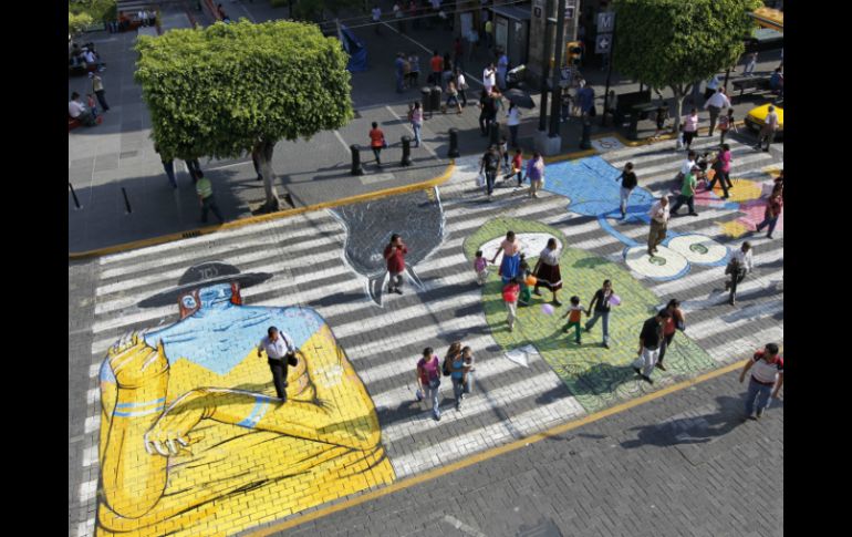 Cultura | Arte urbano Sorpresivos pasos de cebra La organización Ciudad para todos es la responsable de darle un toque artístico a los pasos peatonales en el centro histórico Por: EL INFORMADOR 5 de agosto de 2011 - 02:13 hs Paso peatonal sobre Avenida Hidalgo, en su cruce con Pedro Loza. S. NÚÑEZ / GUADALAJARA, JALISCO (05/AGO/2011).- Karen va cargando a un niño de dos años que dice que se llama Santiago. Son las dos de la tarde y el sol de Guadalajara le perla la frente. Espera el pitido del semáforo colocado en las confluencias del andador Pedro Loza y la avenida Hidalgo. Al momento que cruza la calle se detiene, bajo sus tenis rosas hay figuras. La gente alrededor sigue caminando pero ella está viendo el piso. El semáforo advierte que pronto cambiará de color y ella sigue ahí. Antes de echarse a correr sonríe. Y después dice: Qué bonito, pero ¿qué son? Desde el pasado fin de semana, tres cruces viales en el centro histórico de la ciudad tienen sobre el paso de cebra piezas de arte urbano que la organización civil Ciudad para todos ha promovido como parte del programa Un centro para todos, un proyecto en el que buscan recuperar espacios públicos que los automovilistas han tomado como suyos solamente, afirma en entrevista Joy Nuño, quien fue el encargado de las actividades artísticas de la organización. “Hicimos tres pasos de cebra en tres noches distintas… contamos con el apoyo de la Secretaria de Vialidad y aún nos faltan dos “cebras” más que esperamos hacer en la próxima semana, si es que la lluvia nos deja” afirma el activista. Ganar terreno para todos Alejandro González tiene 24 años y su imaginación da para toda la ciudad. Desde hace un par de años este estudiante del Instituto de Estudios Superiores de Occidente (ITESO) ofrece talleres como parte de un programa del Consejo Nacional para la Cultura y las Artes (Conaculta) en donde les dice a sus estudiantes cómo hacer intervenciones en los muros de la ciudad “en donde se refleje el arte y no sólo el grafitti. Esas cosas las respeto, pero yo soy un poco más elaborado, los detalles son lo que hace la diferencia entre arte urbano y lo demás”. Alejandro fue una de las personas que pintó los pasos de cebra que ahora son piezas de arte efímero sobre el asfalto. Dice que este tipo de intervenciones “lo que te permite es recuperar espacios, entre más grande sea el espacio de la cebra para que las personas pasen, más grande es el lienzo en el que nosotros trabajamos. Si te pones a pensar, entre más espacio gana el peatón, también el arte gana terreno”. González es uno de esos artistas arrepentidos. Estudia diseño porque no le quedó otro remedio “tenía una beca en el ITESO, hice trámites la primera vez a arquitectura pero el primer día de clases no me presenté, decidí viajar y conocer otras técnicas y ahora estoy muy contento de que estas intervenciones se hagan en buenos espacios como el centro histórico”. Amanecer pintando Alejandro no es el único que pintó los pasos de cebra, le ayudaron amigos suyos que el tiempo le ha regalado. En las confluencias de la avenida 16 de septiembre y la calle Prisciliano Sánchez, Fernando fue quien ideo pintar un elefante arriba de un triciclo. En Juárez y Federalismo Alejandro pinto un chimpancé subiendo una escalera… “(la gente de Ciudad para todos) nos dijo que lo único que querían era reflejar la gente que va pasando por el lugar para que ellos también se apropiaran de la pintura”. Las figuras son personajes que salen de la imaginación de Alejandro una noche antes de pintarlas, aunque confiesa: “cómo no te vas a inspirar si el centro es un caldo de personas que fácil pueden ser personajes”. De 10:30 de la noche a 5 de la mañana, los agentes de vialidad de la zona cerraban las calles para que Alejandro y sus cinco amigos hicieran una pintura a contrareloj. Temas Exposiciones Artes Visuales Lee También Pequeñas grandes aventuras en las Fiestas de Octubre Un museo vivo: Experiencias y arte en el Cabañas La UdeG celebra centenario de su refundación con un homenaje a sus figuras destacadas El Festín de los Muñecos cumple 20 años; anuncian el cierre de un ciclo Recibe las últimas noticias en tu e-mail Todo lo que necesitas saber para comenzar tu día Registrarse implica aceptar los Términos y Condiciones