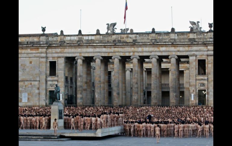 Cultura | Más de seis mil personas son fotografiadas sin ropa frente al Congreso de Colombia Spencer Tunick desnuda a Colombia Más de seis mil personas son fotografiadas sin ropa frente al Congreso de Colombia Por: AFP 5 de junio de 2016 - 09:33 hs BOGOTÁ, COLOMBIA (05/JUN/2016).- El fotógrafo estadounidense Spencer Tunick desnudó en la madrugada de este domingo a más de seis mil personas para hacer una de sus conocidas imágenes de multitudes sin ropa frente al Congreso de Colombia, en la bogotana plaza de Bolívar. Hacia las tres de la madrugada comenzaron a llegar a la céntrica y conocida plaza las seis mil 132 personas que finalmente participaron de la actividad y posaron sin ropa para el fotógrafo, a pesar del característico frío de Bogotá, donde Tunick trabajó este domingo por primera vez en su carrera. "Estuvimos dispuestos con nuestra desnudez, tranquilos, calmados y es un momento de paz y de tranquilidad entre nosotros. Un momento de unión también, de eliminar prejuicios y de estar todos de un mismo color. Todos unidos", dijo Claudia Barrientos, de unos cuarenta años y quien participó de la actividad. A su vez, el veinteañero Carlos Beltrán aseguró que "el evento estuvo genial". "Totalmente fue otra experiencia en mi vida y yo creo que todos vivieron lo mismo, el soltarse de las vestiduras y ser como vinimos a este mundo", dijo. En entrevista esta semana, Tunick dijo que con sus imágenes buscaba "mostrar el cuerpo como una hermosa entidad orgánica que transforma el espacio, el espacio gubernamental de la plaza" de Bolívar, también rodeada por los edificios de la alcaldía de Bogotá, la Corte Suprema de Justicia y la Catedral. Preguntado sobre si su trabajo en Colombia reflejaría el momento que atraviesa el país, cercano a la firma de la paz con la guerrilla FARC tras más de medio siglo de conflicto, Tunick dijo que sí y que, para ello, en una de sus tomas elevaría "un poco los cuerpos en el aire para mostrar una imagen edificante de la gente, de los más altos valores, de mentalidades superiores: de igualdad, paz y unidad". Efectivamente para una de las imágenes que el fotógrafo tomó este domingo, muchos de los participantes se subieron a una tabla y quedaron un poco suspendidos en el aire, con el Congreso como fondo y dando la impresión de que estaban sobre una tabla de surf. Para otra de las instantáneas, que serán luego expuestas en el Museo de Arte Moderno de Bogotá, posaron solo mujeres también con el edificio del capitolio de fondo. Temas Artes Plásticas Colombia Fotografía Spencer Tunick Lee También ¿Dónde ver EN VIVO el partido amistoso México vs Colombia? El Festín de los Muñecos cumple 20 años; anuncian el cierre de un ciclo Camilo Vargas, el gran ausente de Colombia ante México Cantos de tierra y exilio: Illapu vuelve a Guadalajara Recibe las últimas noticias en tu e-mail Todo lo que necesitas saber para comenzar tu día Registrarse implica aceptar los Términos y Condiciones