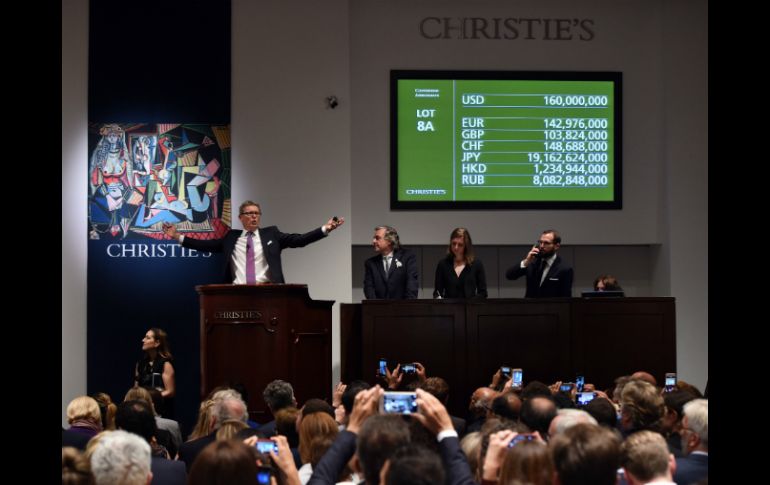 Cultura | El récord fue alcanzado tras once minutos de puja en el marco de la inédita subasta Subastan 'Las mujeres de Argel' de Picasso en 179 MDD, nuevo récord mundial El récord fue alcanzado tras once minutos de puja en el marco de la inédita subasta Por: AFP 11 de mayo de 2015 - 19:04 hs La obra pintada por el genio español destronó la obra 'Tres estudios de Lucian Freud' de Francis Bacon. AFP / T. Clary NUEVA YORK, ESTADOS UNIDOS (11/MAY/2015).-La icónica tela "Las mujeres de Argel" de Picasso pulverizó este lunes en Nueva York el récord mundial de la pintura más cara vendida en una subasta alcanzando 179.3 millones de dólares, en una histórica velada en Christie's. La obra pintada por el genio español en 1955 y que representa una escena en un harén destronó así al tríptico "Tres estudios de Lucian Freud", del británico Francis Bacon, que detentaba ese récord desde noviembre de 2013 con un precio de 142.4 millones de dólares. El récord fue alcanzado tras once minutos de puja en el marco de la inédita subasta "Explorando el futuro a través del pasado", que incluye una selecta colección de obras que van desde inicios del siglo XIX hasta la actualidad y se espera que ronde en total más de 970 millones de dólares, algo jamás visto en la historia de remates de arte. La subasta tiene como otra estelar atracción a la escultura "El hombre que apunta" de Alberto Giacometti, que podría batir a su turno todos los récords, partiendo de un precio estimado en 130 millones de dólares. "Las mujeres de Argel (Version 0)" (Les femmes d'Alger) está inspirado en una obra de Eugène Delacroix, las "Mujeres de Argel en su apartamento", y es el último de una serie de 15 cuadros pintados por el maestro español en homenaje al pintor francés del siglo XIX, al que admiraba, y al compatriota Henri Matisse, fallecido un año antes en 1954. "Es una obra maestra a la altura de 'Guernica' y 'Las señoritas de Aviñón", es historia del arte", según el vicepresidente de Christie's, Loic Gouzer. El récord para un Picasso era de la tela "Desnudo, hojas verdes y busto", vendida en 106.4 millones de dólares en 2010. "Es un punto de inflexión en la historia del arte. Es la subasta del siglo", dijo de cara a la velada Thierry Ehrmann, presidente de Artprice, líder mundial de información del mercado. Temas Artes Plásticas Pablo Picasso Pintura Subastas Lee También Gobernador reconoce diálogo con coordinadores parlamentarios Lemus respalda a productores de maíz y reconoce su reclamo 'por un precio justo' Intervención de la Policía de La Huerta, por posible desaparición forzada: Pablo Lemus Canirac busca impulsar industria restaurantera de Jalisco Recibe las últimas noticias en tu e-mail Todo lo que necesitas saber para comenzar tu día Registrarse implica aceptar los Términos y Condiciones
