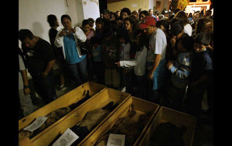 Cultura | Recorridos nocturnos en el Cementerio de Zapopan Un paseo de terror En Santa Ana, en Zapopan, se ubica un recorrido muy singular en donde se muestran momias poco comunes en la ciudad Por: EL INFORMADOR 18 de julio de 2010 - 01:42 hs El recorrido por el panteón cierra con cuatro zapopanos momificados.E. BARRERA / GUADALAJARA, JALISCO (18/JUL/2010).- La familia de María se fue completita al panteón. Acto seguido, abuela, papá, mamá, María y su hermano se agarran de la mano para hacer un recorrido nocturno por el sitio. El padre pregunta muy serio que si habrá bromas, porque su hijo está a punto de desertar. Ninguna, lo tranquilizan, pero no hay nada que le quite el rostro de susto a Juan, quien mejor se acurruca con su padre. La gente se aprieta, formando una masa compacta de personas aterradas que caminan en orden a la entrada del Cementerio de Zapopan, en donde el paseo está por comenzar. Por lo menos 150 personas se congregaron en el pasillo que conduce a los jardines con lápidas blancas. El espacio tiene a los lados 20 salas con gavetas verticales, pero la luz es insuficiente y nadie se anima a entrar ni para sentarse en las bancas que las salas sí ofrecen y el pasillo no. Algunos niños se asoman y salen corriendo. Los adolescentes caminan unos pasos al interior, pero ni su actitud brava los salva: salen de inmediato. El guía es Jesús Ornelas, administrador del cementerio de Tesistán, uno de los 11 que hay en Zapopan. Vestido de traje negro, toma un altavoz y ordena que se apaguen las luces. La gente se aglutina aún más, anhelante, con ganas de experiencias terroríficas, pero la noche a muchos les juega una mala pasada: no hay relámpagos y la luna ilumina la noche, que le sacude el terror al entorno. Sin embargo, Ornelas pone el ambiente tenebroso con sus historias, como la del Brujo Zacarías, quien nunca se quedaba quieto: su cuerpo siempre amanecía afuera de la gaveta, hasta que un sacerdote aconsejó a los enterradores que dejaran afuera su cabeza; o el relato de los franciscanos, que todas las noches salen a deambular y regresan en punto de las cinco de la mañana. Los niños se pegan a sus padres. Las chicas a sus novios. Todos caminan contentos detrás del guía, entre los naranjos, los limones y las rosas que adornan los caminos. No es un cementerio muy grande, pero tiene lo suyo, con personajes célebres y tumbas lujosas. Ahí está enterrado el fundador de la Cruz Roja en el municipio, Fernando Banda, y un atleta alemán que vino a las Olimpiadas de 1968 y que se enamoró de Zapopan con tal fuerza que pidió ser enterrado en esta ciudad. Quién sabe quién pague para este extranjero los 86 pesos de mantenimiento de la tumba, pero alguien lo hace, porque sigue ahí, ya que si no hay aportación por el espacio en seis años, se puede disponer del mismo, explica José Luis Ortiz, director de Cementerios municipales. El recorrido duró poco más de una hora. Hubo gritos, sustos y mucha deserción (al final del paseo llegó sólo la mitad de la gente), pero la experiencia vale la pena y hay promesa del Ayuntamiento de Zapopan para repetirla cada mes, con todo y broche de oro: al final del recorrido, los administradores muestran orgullosos el tesoro del panteón: los cuerpos de cuatro momificados. Para saber: El 26 de julio habrá una exhibición de momias en la plaza pública de la delegación de Santa Ana, en Zapopan. El Cementerio de Zapopan está ubicado en Pedro Moreno, casi esquina con Sarcófago, atrás de Avenida Laureles. Temas Artes Plásticas Cementerios Lee También El Festín de los Muñecos cumple 20 años; anuncian el cierre de un ciclo Cantos de tierra y exilio: Illapu vuelve a Guadalajara Un octubre artístico para celebrar los 31 años del MUSA Guadalajara: la ciudad que respira arte Recibe las últimas noticias en tu e-mail Todo lo que necesitas saber para comenzar tu día Registrarse implica aceptar los Términos y Condiciones