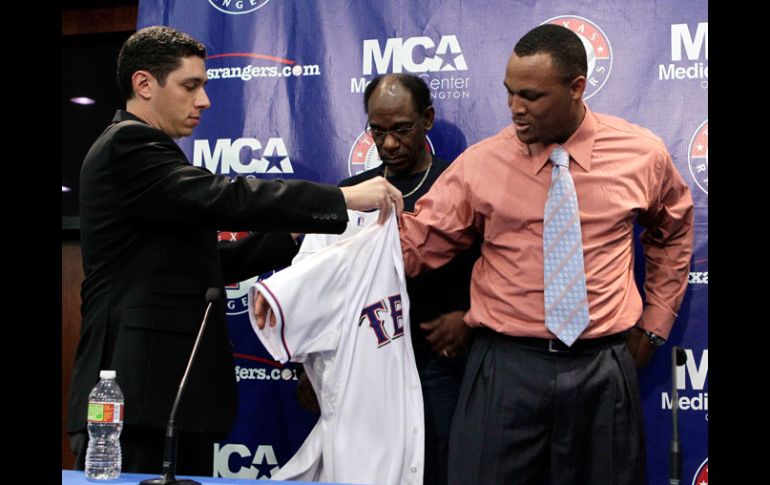 Deportes | El dominicano dos veces ganador del Guante de Oro era jugador de Boston Adrián Beltré firma con los Rangers de Texas El dominicano dos veces ganador del Guante de Oro era jugador de Boston Por: AP 6 de enero de 2011 - 02:32 hs Beltré (der.) se pone la playera de Texas, ayudado por del gerente general de Texas Jon Daniels y por el mánager Ron Washington. AP / ARLINGTON, ESTADOS UNIDOS (06/ENE/2011).- Adrián Beltré fue presentado ayer por los Rangers de Texas tras pactar un contrato de seis años y 96 millones de dólares con los campeones de la Liha Americana. “Todos sabemos que los Rangers tienen un excelente equipo”, afirmó el tercera base dominicano. “Quiero ganar. El equipo está dispuesto hacer lo que sea para dar el siguiente paso. Ese fue uno de los factores que hicieron más fácil mi decisión de venir aquí”. Dos veces ganador del Guante de Oro, el dominicano bateó para .321 con 49 dobles, 28 jonrones y 102 carreras producidas en 154 partidos en su única temporada con los Medias Rojas de Boston. Fue integrante del Juego de Estrellas por primera vez en su carrera de 13 temporadas. Beltré devengará un salario de 14 millones de dólares este año, y se incrementará en un millón por cada año que pase en Texas. Los Rangers tendrá la posibilidad de anular la temporada final del contrato si Beltré no logra acumular mil 200 apariciones al plato en 2014-15 o 600 en 2015. Beltré se convirtió en agente libre tras rechazar una opción de 10 millones de dólares que tenía como jugador para quedarse con Boston. Texas viene de una temporada en la que por primera vez alcanzó la Serie Mundial, donde perdió en cinco juegos ante los Gigantes de San Francisco. Los Rangers vencieron a los Yankees de Nueva York en la serie de campeonato de la Liga Americana. “El club tuvo un sorbo de algo el año pasado, nos quedamos cortos por unos juegos de nuestro objetivo final”, mencionó el gerente Jon Daniel. “Todo lo que hemos gestionado este receso de temporada ha sido en procura de mejorar el equipo con el fin de ganar la división, volver a la Serie Mundial y ganarla. Esta contratación apunta a ese objetivo”. Los Rangers fueron rechazados en su intento por conservar los servicios del lanzador Cliff Lee, incluso después de ofrecerle al as zurdo 138 millones de dólares en seis años. Lee prefirió regresar a Filadelfia. Datos de Adrián Beltré Año de debut: 1998 Porcentaje de bateo: .275 Partidos jugados: 1,835 Juegos de estrellas: 1 Guantes de Oro: 2 Edad: 32 años Equipos: Los Ángeles Dodgers, Seattle y Boston Temas Beisbol MLB Rangers de Texas Recibe las últimas noticias en tu e-mail Todo lo que necesitas saber para comenzar tu día Registrarse implica aceptar los Términos y Condiciones