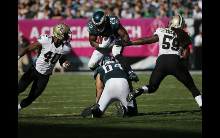 Deportes | Filadelfia derrota 39-17 a Nueva Orleans Águilas vencen a Santos Filadelfia derrota 39-17 a Nueva Orleans Por: AP 11 de octubre de 2015 - 15:53 hs Ryan Mathews y DeMarco Murray (29) anotaron sendos touchdowns mediante acarreos. AP / M. Perez FILADELFIA, PENSILVANIA (11/OCT/2015).- Sam Bradford supo reaccionar tras sufrir intercepciones en la zona roja y lanzó para 333 yardas y dos touchdowns, Fletcher Cox provocó un par de balones sueltos y las Águilas de Filadelfia derrotaron el domingo 39-17 a los Santos de Nueva Orleans. Ryan Mathews y DeMarco Murray anotaron sendos touchdowns mediante acarreos para que las Águilas (2-3) saliesen de su letargo ofensivo. También rompieron una racha de tres derrotas seguidas como locales y que se remontaba a la pasada campaña. Drew Brees perdió el balón tres veces, derivando en 17 puntos de Filadelfia. Los Santos quedaron con foja de 1-4, una semana después de vencer en tiempo extra a Dallas. Temas NFL Futbol Americano Águilas de Filadelfia Santos de Nueva Orleans Lee También Futbol hoy 12 de octubre de 2025: ¿Dónde ver los partidos en vivo? Chivas y América empatan en partido amistoso Nos quedamos con sensaciones cortas: Eduardo Arce Hay jugadores que no estuvieron a la altura: Javier Aguirre Recibe las últimas noticias en tu e-mail Todo lo que necesitas saber para comenzar tu día Registrarse implica aceptar los Términos y Condiciones