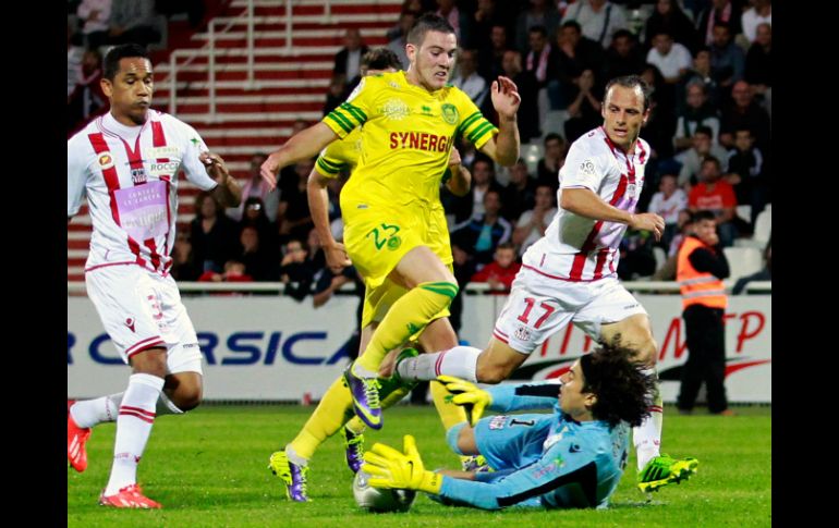 Deportes | Error del portero mexicano en jugada del gol fue la diferencia en duelo ante el Nantes Ajaccio pierde por culpa de Ochoa Error del portero mexicano en jugada del gol fue la diferencia en duelo ante el Nantes Por: NTX 19 de octubre de 2013 - 16:10 hs Memo Ochoa influyó directamente en la derrota del Ajaccio. AFP / AJACCIO, FRANCIA (19/OCT/2013).- Ajaccio, con el portero mexicano Guillermo Ochoa, sumó este día su quinta derrota en lo que va de la presente temporada en la Liga de Francia tras caer 0-1 frente a Nantes, en actividad de la fecha 10. Con un descalabro más, los "osos" se asoman a la zona de descenso, aunque en estos momentos no ocupen los puestos de riesgo, el peligro es evidente, así que el equipo dirigido por el italiano Fabrizio Ravanelli tendrá que despertar pronto. Ajaccio sólo cuenta con una victoria en el campeonato, cuatro empates y cinco descalabros con el de hoy, de paso es la peor ofensiva de la Liga 1; cuenta con siete unidades en el décimo séptimo peldaño, sólo uno arriba del descenso. Guillermo Ochoa respondió cuando fue exigido en el partido frente a Nantes, pero en la jugada del gol posiblemente pudo hacer más, se quedó cortó a la hora de desviar un centro desde el costado izquierdo y el balón le quedó al estadounidense Alejandro Bedoya, quien remató con arco abierto al minuto 87, para decretar el 1-0. En el último suspiro del partido, el conjunto de Córcega estuvo cerca de empatar el partido pese a sus nulos argumentos al frente, pero el disparo del rumano Adrián Mutu pasó apenas por un costado del arco defendido por Remy Riou. El portero jalisciense "Memo" Ochoa, como es costumbre, fue titular en el Ajaccio y el mal momento que vivió en días pasados con la selección mexicana se alargó con su club al sufrir una derrota más, además que recibió hoy su décimo tercer tanto. Temas Liga francesa Guillermo Ochoa Futbol Internacional Futbol francés Lee También Equipos que podrían quedar eliminados del Play In en la jornada doble de la Liga MX ¿Dónde ver EN VIVO el partido de J14 Mazatlán vs Santos? Chivas: ¿Cuántos puntos necesita para calificar a la Liguilla? ¿Dónde ver EN VIVO el partido de J14 Necaxa vs Cruz Azul? Recibe las últimas noticias en tu e-mail Todo lo que necesitas saber para comenzar tu día Registrarse implica aceptar los Términos y Condiciones