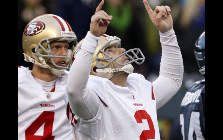 Deportes | 49ers vence a Halcones Marinos 19-17 Akers convierte cuatro goles de campo David Akers logró un récord de la NFL al convertir su 42do gol de campo de la temporada Por: AP 24 de diciembre de 2011 - 18:20 hs Akers festeja después de patear un gol de campo contra los Halcones Marinos. Tras él, Andy Lee. AP / SEATTLE (24/DIC/2011).- David Akers convirtió el sábado cuatro goles de campo, incluido el de la ventaja desde 39 yardas con 2:57 minutos en el reloj, para que los 49ers de San Francisco aguantaran la arremetida de los Seahawks de Seattle y los vencieran 19-17. Larry Grant aseguró la victoria al forzar una pérdida de balón de Tarvaris Jackson cuando quedaban 1:07 minutos. San Francisco, que ya ganó la División Oeste, sigue con posibilidades de terminar segundo en la Conferencia Nacional y lograr un pase libre en la primera ronda de playoffs. Akers logró un récord de la NFL al convertir su 42do gol de campo de la temporada. Frank Gore anotó en una carrera de 4 yardas en la primera marcha de los 49ers en la segunda mitad. Marshawn Lynch anotó en un acarreo de 4 yardas cuando restaban 6:41 minutos para que Seattle se pusiera arriba 17-16. Fue el primer touchdown por tierra que San Francisco permite esta temporada. Temas NFL Futbol Americano 49ers de San Francisco Halcones Marinos de Seattle Lee También ¿Dónde ver EN VIVO el partido amistoso México vs Ecuador? Reforma judicial, una historia que se enreda La NFL suspende a Brian Branch por golpear a jugador de Chiefs Cartucho Recibe las últimas noticias en tu e-mail Todo lo que necesitas saber para comenzar tu día Registrarse implica aceptar los Términos y Condiciones