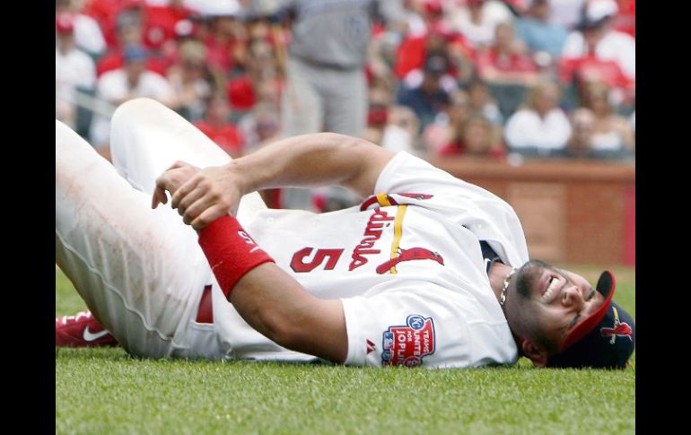 Deportes | Dolorosa baja para los Cardenales de San Luis Albert Pujols, fuera hasta por seis semanas Tras la fractura del antebrazo izquierdo sufrida el domingo, el cañonero dominicano estará ausente en un momento determinante para su equipo Por: AP 21 de junio de 2011 - 02:37 hs Albert Pujols sufrió la fractura del antebrazo izquierdo en una jugada apretada en primera base. AP / SAN LUIS, MISSOURI (21/JUN/2011).- El toletero dominicano de los Cardenales de San Luis, Albert Pujols, estará fuera de acción de cuatro a seis semanas a causa de una fractura en el antebrazo izquierdo. El equipo informó el lunes los resultados de un examen de resonancia magnética, un día después de que el inicialista se lesionó durante un partido en casa ante los Reales de Kansas City. Los Cardenales detallaron que Pujols tiene una fractura del radio izquierdo. El estelar pelotero resultó lesionado luego de que Wilson Betemit bateó un machucón por el medio ante el abridor mexicano Jamie García. El camarero Pete Kozma atrapó la pelota con el guante de revés y lanzó en el aire hacia primera, sacando a Pujols en dirección al plato. Cuando el dominicano trató de tocar a Betemit, éste chocó con su guante y Pujols cayó al suelo, retorciéndose de dolor."Me golpeó en la muñeca y el hombro", dijo Pujols más tarde. "Me trabó el brazo hacia atrás. Es la jugada más difícil en primera base... Yo vi la repetición un par de veces, pero realmente no quería mirarla". Pujols, de 31 años, puede convertirse en agente libre una vez se acabe la temporada. Será colocado en la lista de lesionados de 15 días inicialmente. El estelar toletero está promediando .279, tras un inicio lento de temporada. Betemit dijo que no pudo hacer nada para evitar la colisión. "Yo estaba corriendo duro y la pelota llegó al mismo tiempo que yo a la base", manifestó Betemit. "No pudo hacer nada. Me golpeó en el brazo izquierdo, por eso dejó caer la pelota. Lo choqué con él y entonces le vi en el suelo. Es parte del juego". San Luis está empatado en primer lugar en la División Central de la Liga Nacional, pese a sufrir una serie de lesiones recientes. Pujols se lesionó tres días después de que el cuarto bate, Matt Holliday, regresó luego de una lesión en el muslo que le dejó en la lista de lesionados de 15 días. El antesalista David Freese, el segunda base Skip Schumaker y el lanzador Kyle McClellan también se han perdido juegos para una franquicia que a inicios de la campaña perdió a su principal abridor, Adam Wainwright, por el resto del año. Lance Berkman se hizo cargo de la inicial tras la lesión de Pujols y pudiera quedarse allí hasta el regreso del dominicano. Berkman comenzó la temporada como jardinero, por primera vez desde 2004, cuando lo hizo con los Astros de Houston. Temas Beisbol Cardenales de San Luis Playoffs de Grandes Ligas Lee También MLB: Resultados de las Series de Campeonato Charros de Jalisco buscará frenar su racha negativa en juegos inaugurales de la LMP Revelan el número de personas no localizadas tras lluvias "atípicas" Dónde ver EN VIVO los juegos de MLB, HOY 13 de octubre Recibe las últimas noticias en tu e-mail Todo lo que necesitas saber para comenzar tu día Registrarse implica aceptar los Términos y Condiciones