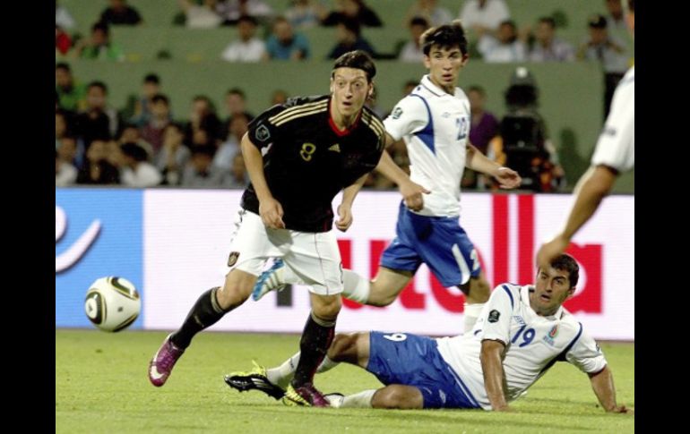 Deportes | Liderada por Özil ganó a Azebaiyán; mientras que Bielorrusia y Suecia amenazan Alemania da otro paso al frente Liderada por Özil ganó a Azebaiyán; mientras que Bielorrusia y Suecia amenazan Por: EFE 7 de junio de 2011 - 15:31 hs Mesut Özil de Alemania pelea por la bola con el jugador de Azerbaiyán. EFE / BAKU, AZERBAIYÁN (07/JUN/2011).-Alemania, liderada por el centrocampista del Real Madrid Mesut Özil, dio un paso más al frente en su carrera por el Europeo 2012 tras cumplir ante Azerbaiyán (1-3), mientras Bielorrusia y Suecia, de la mano de Zlatan Ibrahimovic, aceleraron el ritmo y amenazan el liderato de Francia y Holanda en sus respectivos grupos. El conjunto germano logró su séptimo triunfo en los siete encuentros que ha jugado. Contempla desde la distancia al segundo, Bélgica, al que aventaja en diez puntos. Ozil encarriló el triunfo germano. Marcó a la media hora el tanto que abrió el marcador y facilitó el anotado antes del descanso por Mario Gómez. Murad Huseynov, a centro de Rashad Abulfaz Sadiqov, acortó distancias a un minuto del final pero Andre Schürrle, en el tiempo añadido, redondeó la victoria alemana. Bielorrusia superó a Luxemburgo (2-0) y amenaza el dominio de Francia, de la que le separa un punto. Sergei Kornilenko, de penalti y Anton Putsila proporcionaron el triunfo. En el otro partido del Grupo D, Bosnia Herzegovina ganó a Albania y se asentó en el tercer lugar, con dos puntos de desventaja respecto al equipo bielorruso. Zlatan Ibrahimovic lideró la victoria de Suecia ante Finlandia (5-0). El delantero del Milan, otrora del Barcelona, firmó un triplete en el choque. Kim Källström abrió el marcador y Emir Bajrami lo cerró. Los tres puntos animan al bloque escandinavo, que advierte a Holanda. Segundo en la clasificación, Suecia se sitúa a tres puntos del subcampeón del mundo. Mientras, Hungría consolidó la tercera posición, con tres de desventaja respecto a los suecos y seis en relación a Holanda, después de superar a domicilio a San Marino (0-3). Zoltan Liptak, Imre Szabics y Vladimir Koman marcaron los goles. Finalmente, las Islas Feroe lograron su primera victoria en la fase de clasificación. Ganó a Estonia (2-0) aunque sigue anclado en la profundidad del Grupo C. Arnbjorn Hansen y Frodi Benjaminsen, que también falló un penalti, hicieron los tantos locales. Temas Futbol Internacional Selección de Alemania Eurocopa 2012 Recibe las últimas noticias en tu e-mail Todo lo que necesitas saber para comenzar tu día Registrarse implica aceptar los Términos y Condiciones