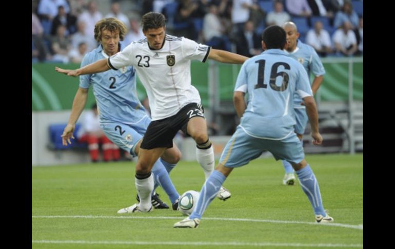 Deportes | La selección alemana rompió con la maldición de los amistosos, al ganar 2-1 Alemania derrota a Uruguay La selección alemana rompió con la maldición de los amistosos, al ganar 2-1 Por: EFE 29 de mayo de 2011 - 14:55 hs Diego Lugano y Pereira de Uruguay luchan por el balón con Mario Gómez, quien le daría el primer gol a Alemania. EFE / BERLÍN, ALEMANIA(29/MAY/2011).- Alemania derrotó hoy a Uruguay por 2-1, en el Rhein Neckar Arena de Sinsheim, rompiendo lo que se había convertido en una maldición en los amistosos de los que no había ganado ninguno desde que terminó el Mundial de Sudáfrica. El partido fue equilibrado, con fases de dominio de ambos equipos y al final lo que se impuso fue ante todo el oficio de los alemanes. Uruguay empezó un poco mejor que Alemania que, pese a tener más posesión de pelota, careció de profundidad en los primeros minutos mientras que los celestes cuando tenían la pelota se acercaban con cierta peligrosidad al área de Manuel Neuer. Sin embargo, Uruguay tampoco generó grandes ocasiones en esa fase inicial. Un disparo de Alvaro Pereira en el minuto 6 que obligó a una estirada de Neuer es prácticamente lo único que en cuanto a llegadas a puerta se puede salvar para la estadística en esa etapa inicial que terminaría de un momento a otro en una jugada ocurrida en el minuto 20 que culminó en el primer gol alemán. Mario Gómez le robó una pelota a Diego Lugano a pocos metros del área y luego, ya dentro de las 18 yardas, se deshizo de un regate de Diego Godín -que había regresado apresuradamente procurando salvar lo que se pudiera- para luego derrotar a Fernando Muslera con un remate de pierna derecha. Con el gol alemán, el partido dio un giro y Alemania empezó a tener más llegada. En el 23, Muslera salvó con una buena salida ante Mesut Özil. En el 35, nada pudo hacer ante un derechazo desde fuera del área de André Schürrle que se convirtió en el segundo gol alemán. Uruguay, pese a la desventaja y la recuperación alemana, por momentos se sacudió y tuvo un par de llegadas buenas. Dos remates de Diego Forlán -uno en el 37 desde unos 25 metros y una falta lanzada desde el borde del área en el 45- se encontraron con Neuer. Luis Suárez también había tenido una buena ocasión y al comienzo del segundo tiempo el descuento llegaría por intermedio de Walter Gargano, que marcó dentro del área después de un centro desde la derecha de Edison Cavani que produjo un enredo en la defensa alemana. En el segundo tiempo, hubo ocasiones de parte y parte -Godin, por ejemplo, tuvo el empate en sus pies en el 73 pero se encontró con un paradón de Neuer- y el partido, pese a los cambios típicos de un partido amistoso, no bajó de ritmo. Uruguay hubiera podido empatar pero Alemania también, por ocasiones, hubiera podido haber hecho el tercero. Ficha técnica 2 - Alemania: Manuel Neuer; Philipp Lahm (Höwedes, 66); Arne Friedrich (Badstuber, 66), Mats Hummels, Marcel Schmelzer; Simon Rolfes, Toni Kroos (Christian Träsch, 79); Thomas Müller (Mario Götze, 79), Mesut Özil (Miroslav Klose, 45), André Schürrle (Lukas Podolski, 58); y Mario Gómez. 1 - Uruguay: Fernando Muslera; Maximiliano Pereira, Diego Lugano, Diego Godín, Martín Cáceres; Egidio Arévalo Ríos (Sebastián Eguren, 76), Walter Gargano (Sebastian Abreu, 87), Alvaro Pereira (Gastón Ramírez, 56); Edinson Cavani, Diego Forlán y Luis Suárez. Goles: 1-0 (min 20, Gómez), 2-0 (min 35, Schürrle), 2-1 (min 48, Gargano) Arbitro: Manuel Faustino Benquerença. (Portugal) amonestó a Luis Suárez. Incidencias: partido amistoso disputado en la Rhein Neckar Arena de Sinsheim ante cerca de 25.000 espectadores. Temas Futbol Internacional Partidos amistosos Selección de Uruguay Selección de Alemania Lee También México vs Argentina: ¿Quién ganará el partido según la IA? "Chucky" Lozano reconoce que jugaría en Chivas o en América Dónde ver EN VIVO el México vs Argentina por el Mundial Sub-20 ¿Dónde ver EN VIVO el partido amistoso México vs Colombia? Recibe las últimas noticias en tu e-mail Todo lo que necesitas saber para comenzar tu día Registrarse implica aceptar los Términos y Condiciones
