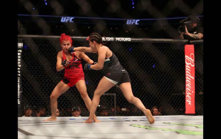 CIUDAD DE MÉXICO (06/AGO/2017).- La peleadora jalisciense Alexa Grasso venció esta noche por decisión dividida a la iraquí Randa Markos, en lo que fue la batalla semifinal de la función de regreso de las artes marciales mixtas de la UFC a esta capital.La joven peleadora tapatía salió determinada a vencer a su retadora, toda vez que la víspera no pudo dar el peso reglamentario de la división de peso paja, por lo que tuvo que ceder el 20 por ciento de la bolsa de su salario, a su rival de esta noche.Grasso tuvo algunos problemas para dominar a Markos en el primero de los tres round de duración de esta pelea en la modalidad de las artes marciales mixtas, por lo que la asiática se llevó a su esquina ese primer asalto.Sin embargo, la tapatía reaccionó en los dos restantes rounds, al colocar mejores patadas y golpes a la cara y cuerpo de Markos, quien comenzó a resentir tales impactos, y también la altura de esta capital, al aspirar aire por la boca, notablemente agotada.Al final de la emotiva pelea femenil, única de las 12 que tuvo esta velada de la Ultimate Fighting Championship (UFC), empresa estadunidense de artes marciales mixtas, la mexicana alzó el brazo con puntuaciones de 29-28, 29-28 y 28-29 en contra.Con este triunfo logrado en el octágono colocado en la Arena Ciudad de México, la jalisciense Grasso mejoró su marca a 10-1-0, mientras que Randa Markos se estancó en 7-6-0.En otros resultados, el estadunidense Dustin Ortiz ganó por nocaut al michoacano Héctor Sandoval, a tres rounds en mosca, y en la división gallo a tres rondas, el tijuanense Henry Briones cayó por una sumisión ante el brasileño Rani Yahya.En ligero a tres rounds, el jalisciense Álvaro Herrera también tuvo una noche amarga, al caer por sumisión con el estadunidense Jordan Rinaldi, y en peso medio a tres giros, el británico Bradley Scott sufrió un nocaut ante el sueco Jack Hermansson.