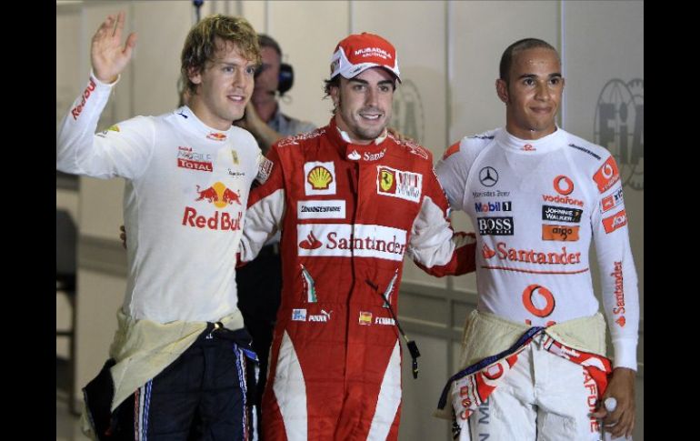 Deportes | Felipe Massa arrancará último por fallas en su Ferrari Alonso gana la pole en Singapur Sebastian Vettel, Lewis Hamilton y Jenson Button, le siguen en la clasificación de la salida del Gran Premio Por: AP 25 de septiembre de 2010 - 09:49 hs Fernando Alonso posa al término de la clasificación con Sebastian Vettel y Lewis Hamilton quienes le secundarán en la salida. AP / SINGAPUR (25/SEP/2010).- El español Fernando Alonso ganó el sábado la pole del Gran Premio de Singapur de Fórmula 1. El piloto de Ferrari logró su segunda pole consecutiva al superar a Sebastian Vettel de Red Bull, que lo acompañará en la primera fila de la parrilla. Los bólidos McLaren de Lewis Hamilton y Jenson Button ocuparán la segunda fila, delante del líder del campeonato mundial Mark Webber de Red Bull, que se clasificó quinto. Los cinco primeros pilotos de la clasificación ocuparán también los cinco primeros puestos de largada. Felipe Massa arrancará último después que su Ferrari sufrió un problema de transmisión. La carrera nocturna del domingo comenzará a las 12:00 GMT. Temas Automovilismo Fernando Alonso Gran Premio de Singapur Recibe las últimas noticias en tu e-mail Todo lo que necesitas saber para comenzar tu día Registrarse implica aceptar los Términos y Condiciones